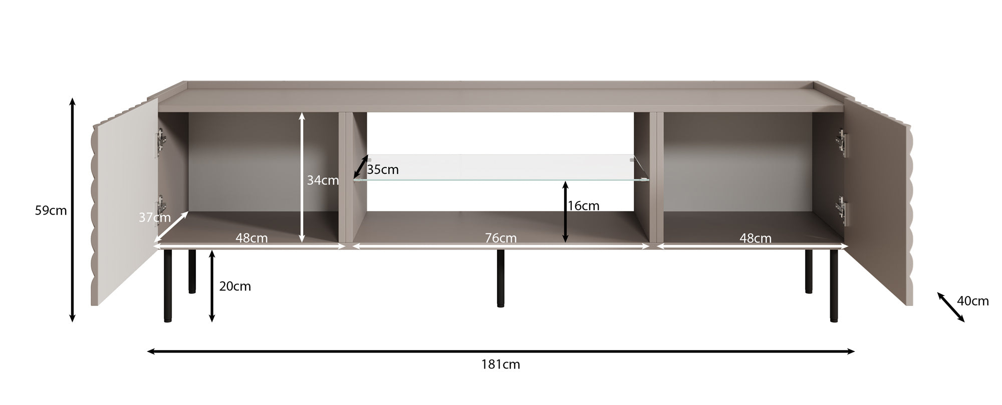 | Maat | H 59 x B 180 x D 40 cm |