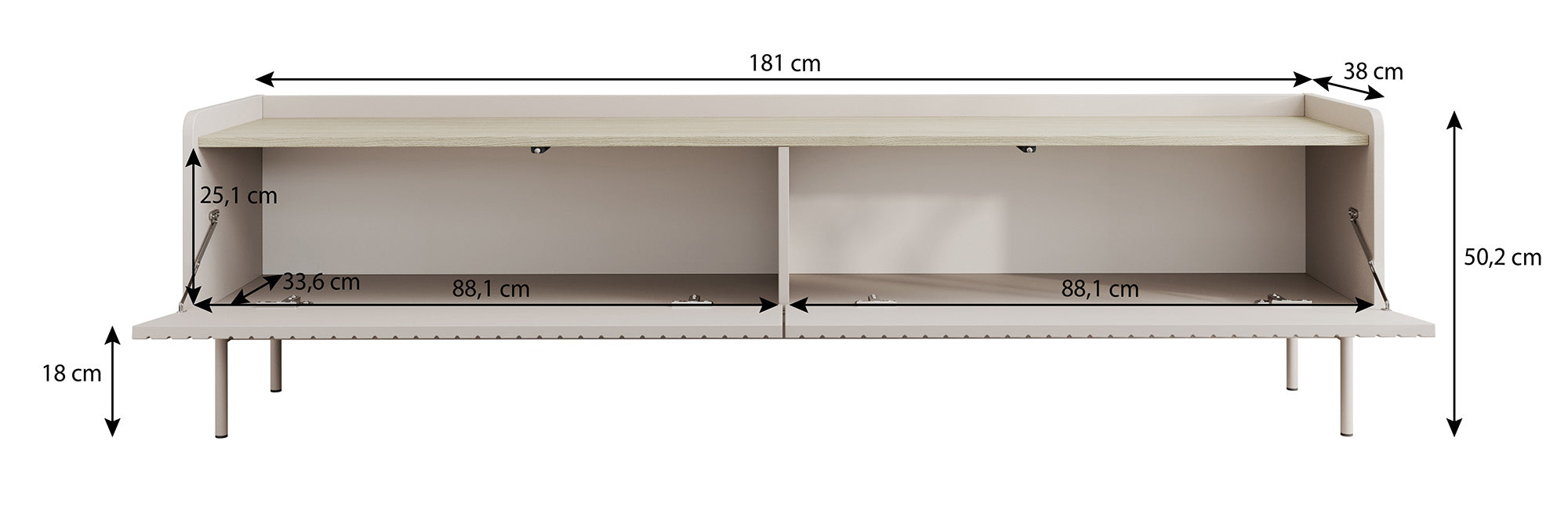 Maat | H 50 x B 181 x D 38 cm |