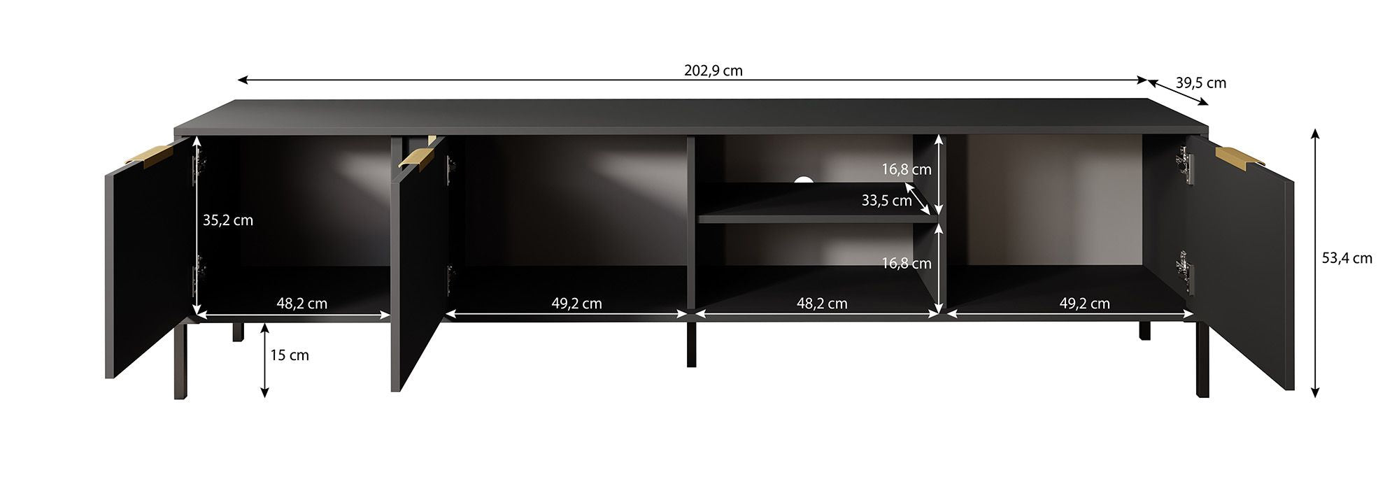 Meubella - TV-Meubel Loren - Antraciet - 203 cm