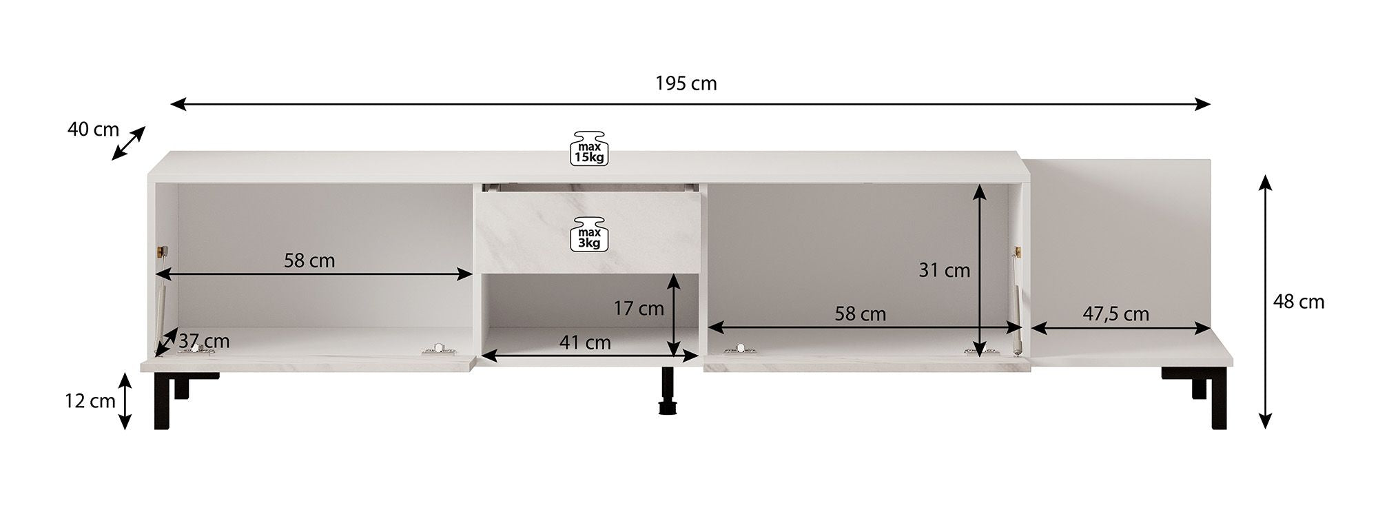 Meubella TV-Meubel Masimo - Zwart marmer - 195 cm