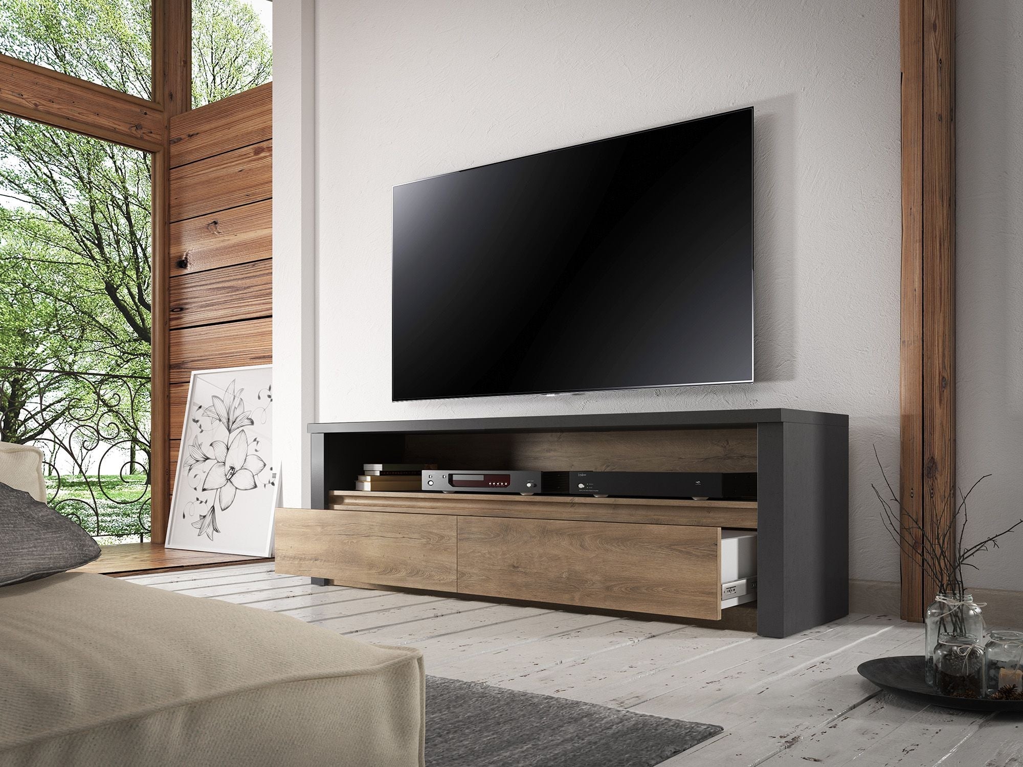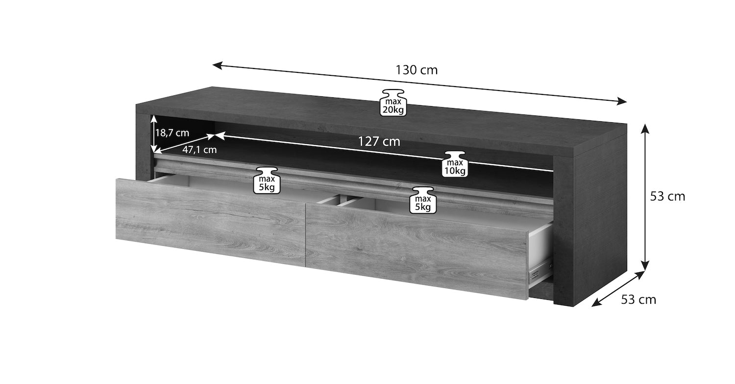 Meubella - TV-Meubel Monaco - Eiken - Grijs - 130 cm