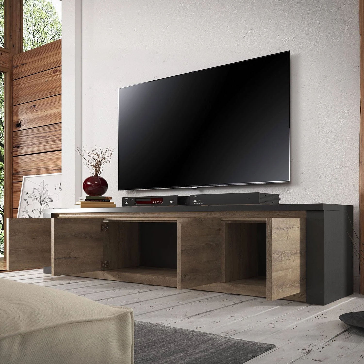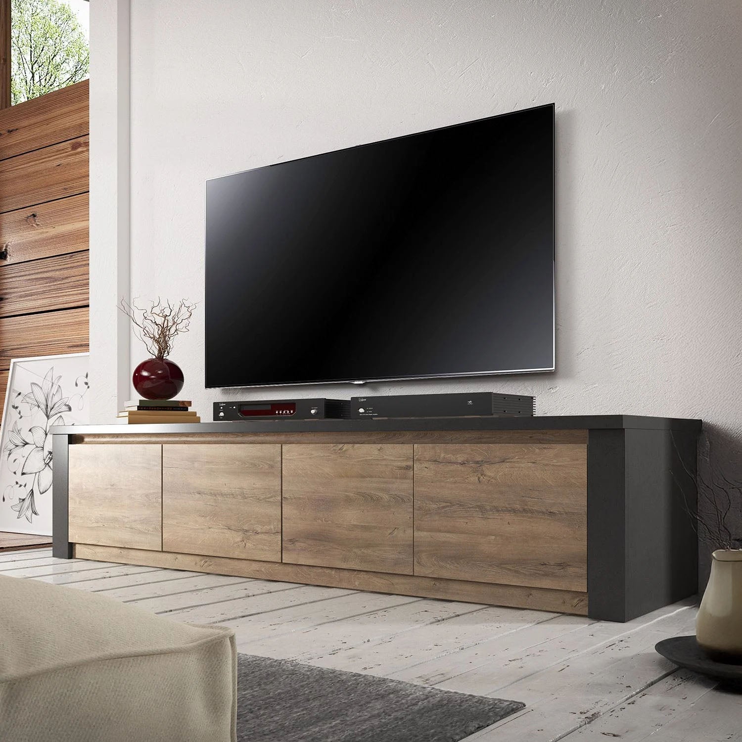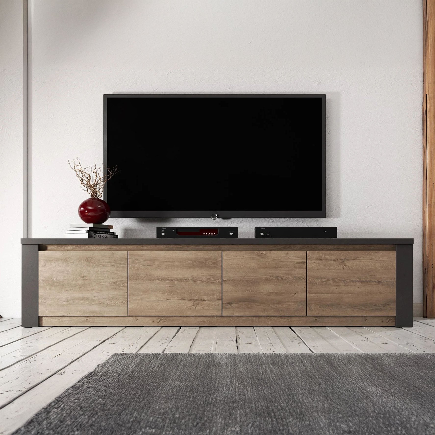 Meubella - TV-Meubel Monaco - Eiken - Grijs - 4 deuren - 170 cm