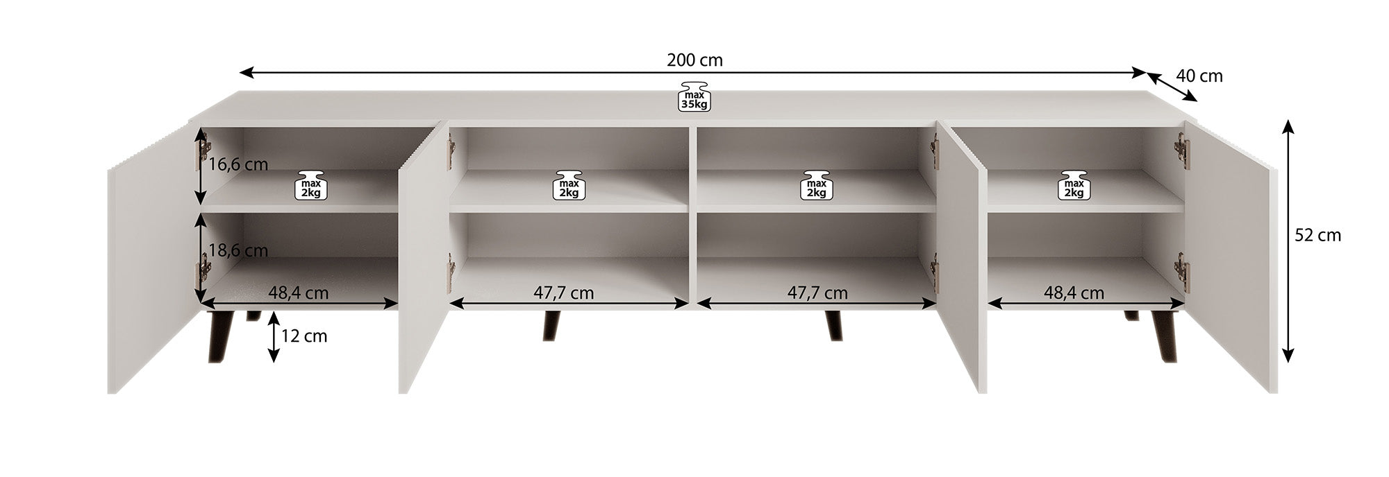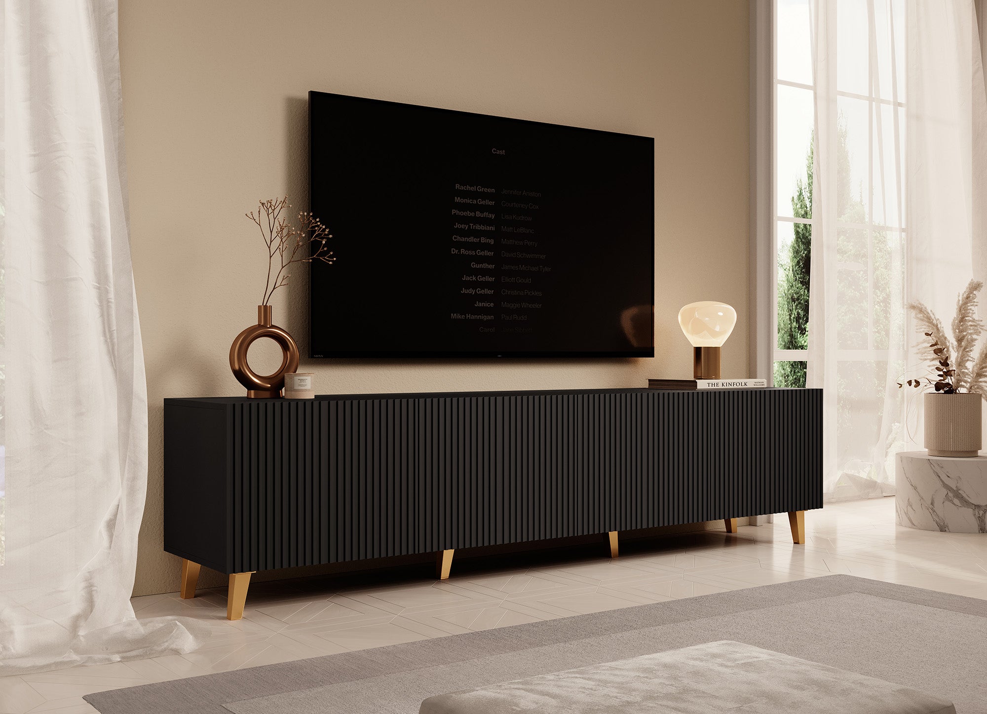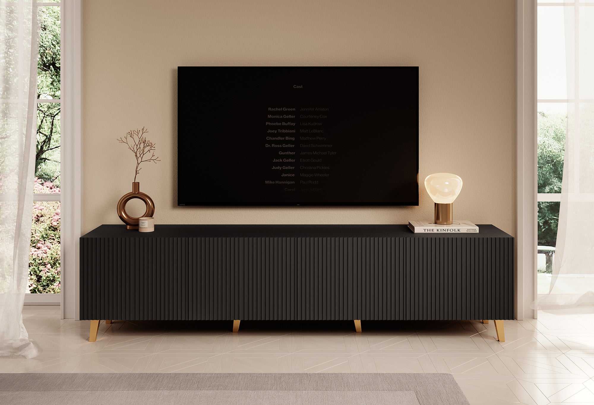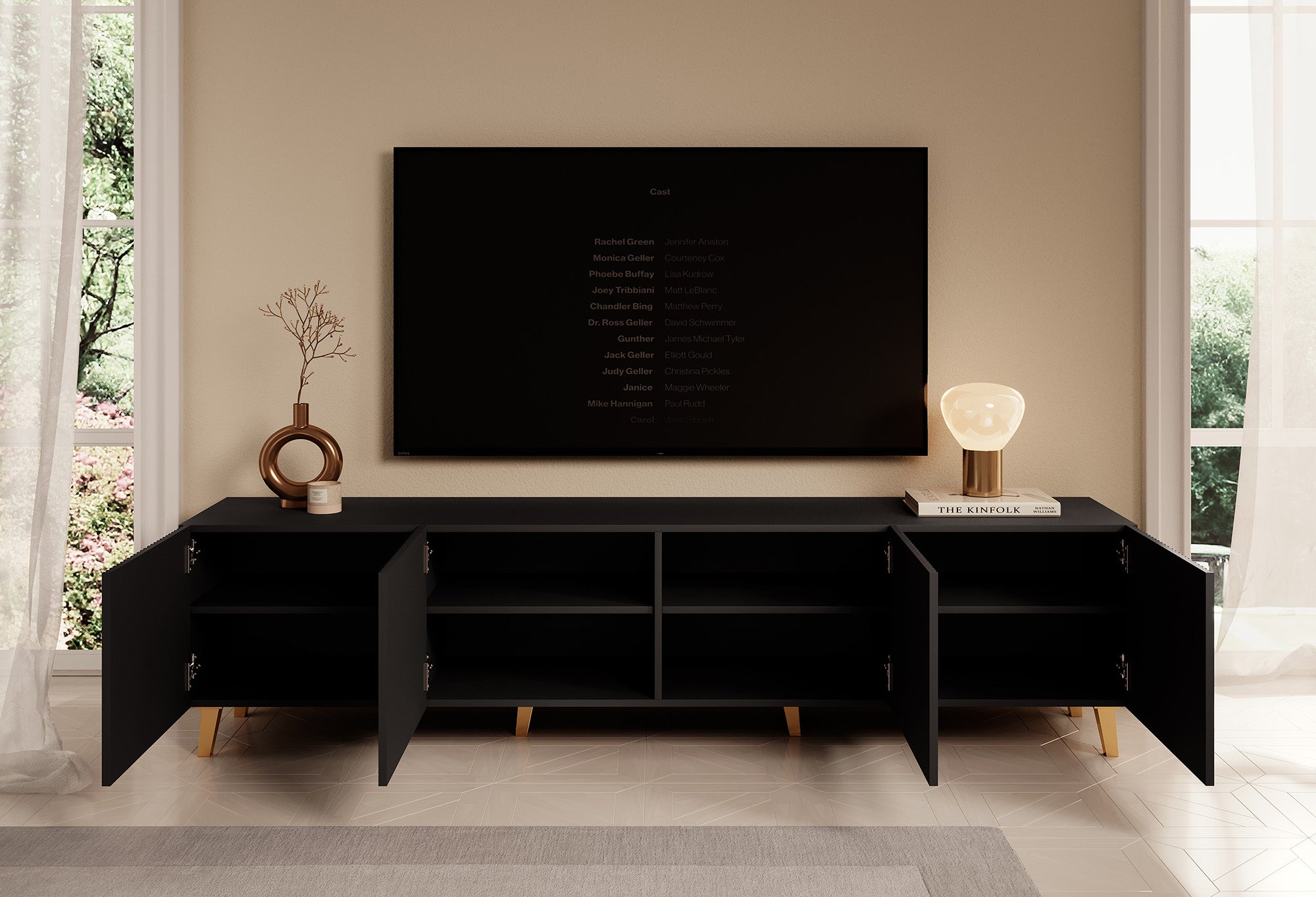 Meubella TV-Meubel Palamos - Mat zwart - 200 cm