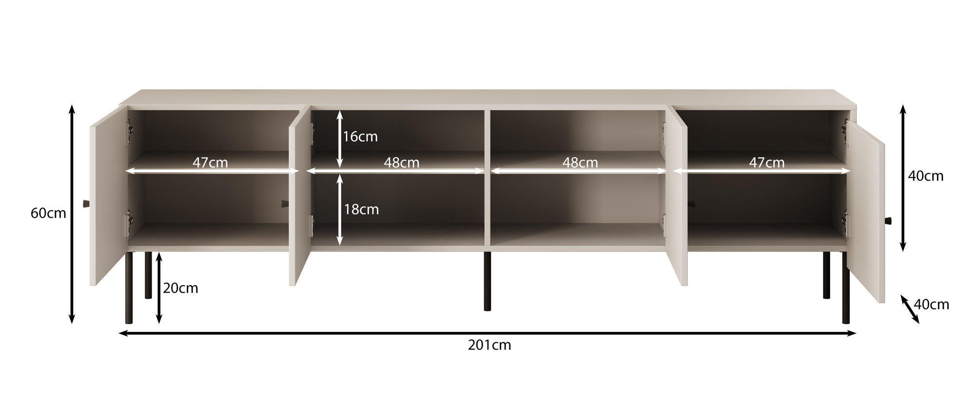 | Maat | H 60 x B 201 x D 40 cm |