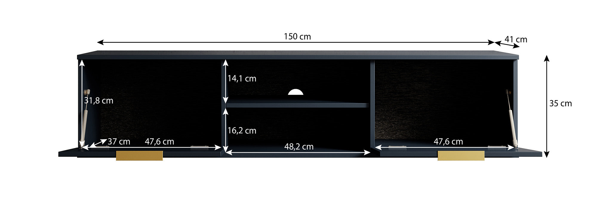 Meubella TV-Meubel Ponchi 2 - Zwart eiken - 150 cm