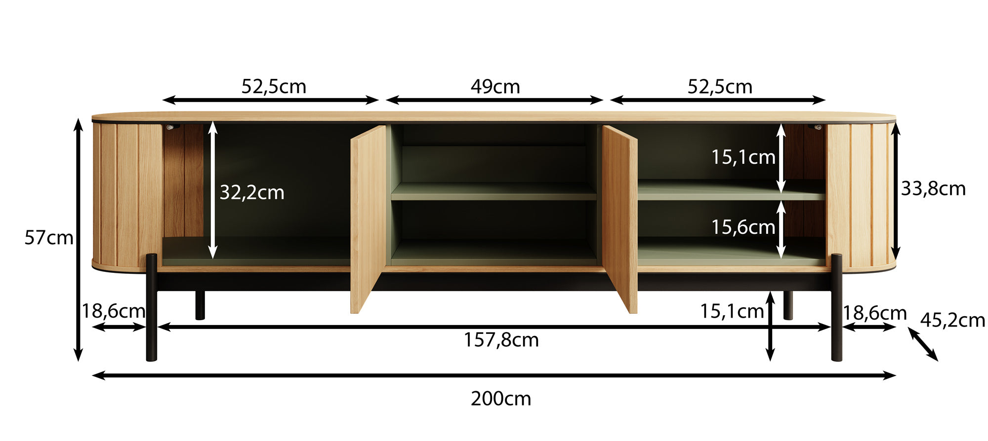 Meubella TV-Meubel Royale - Eiken - 200 cm