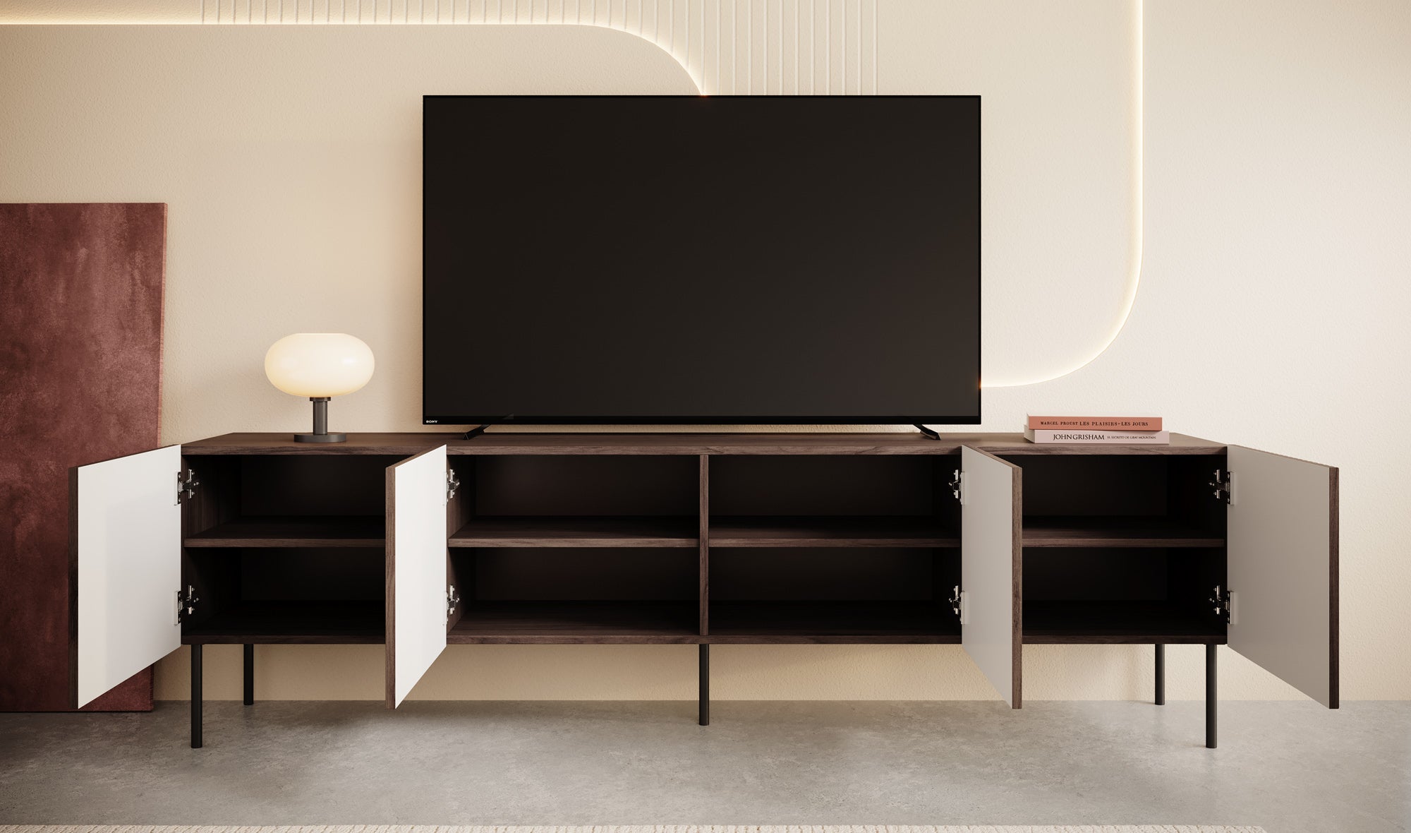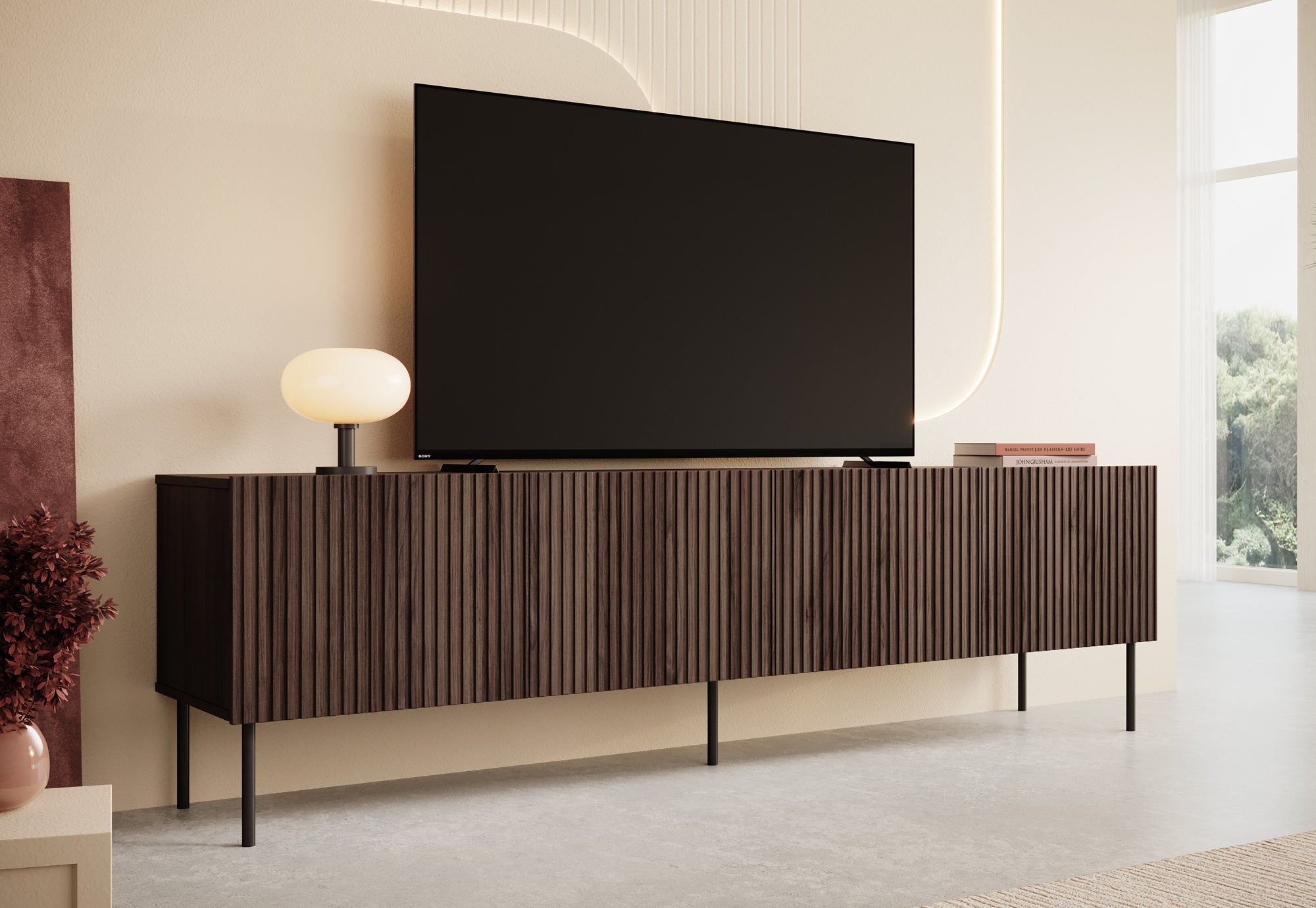 Meubella - TV-Meubel Tartagal - Donkerbruin eiken - 200 cm