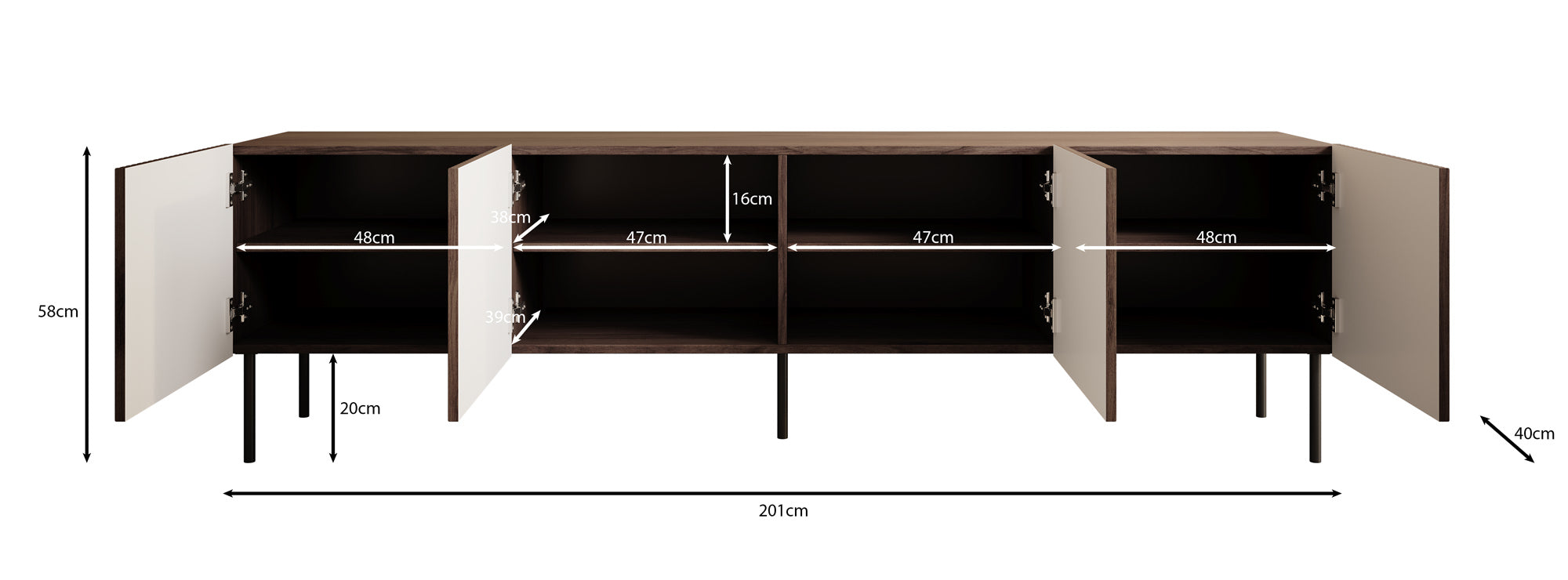 Maat | H 58 x B 200 x D 40 cm |