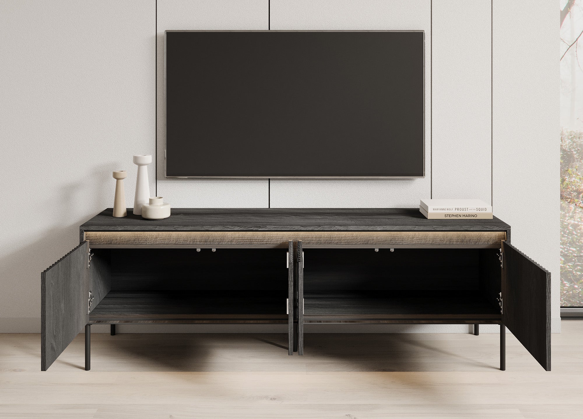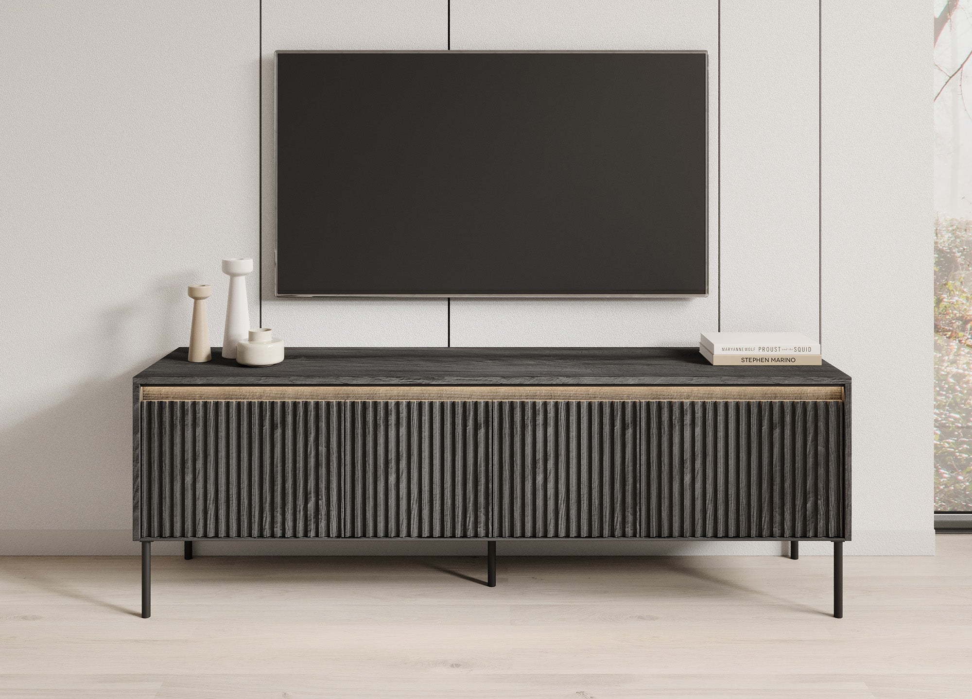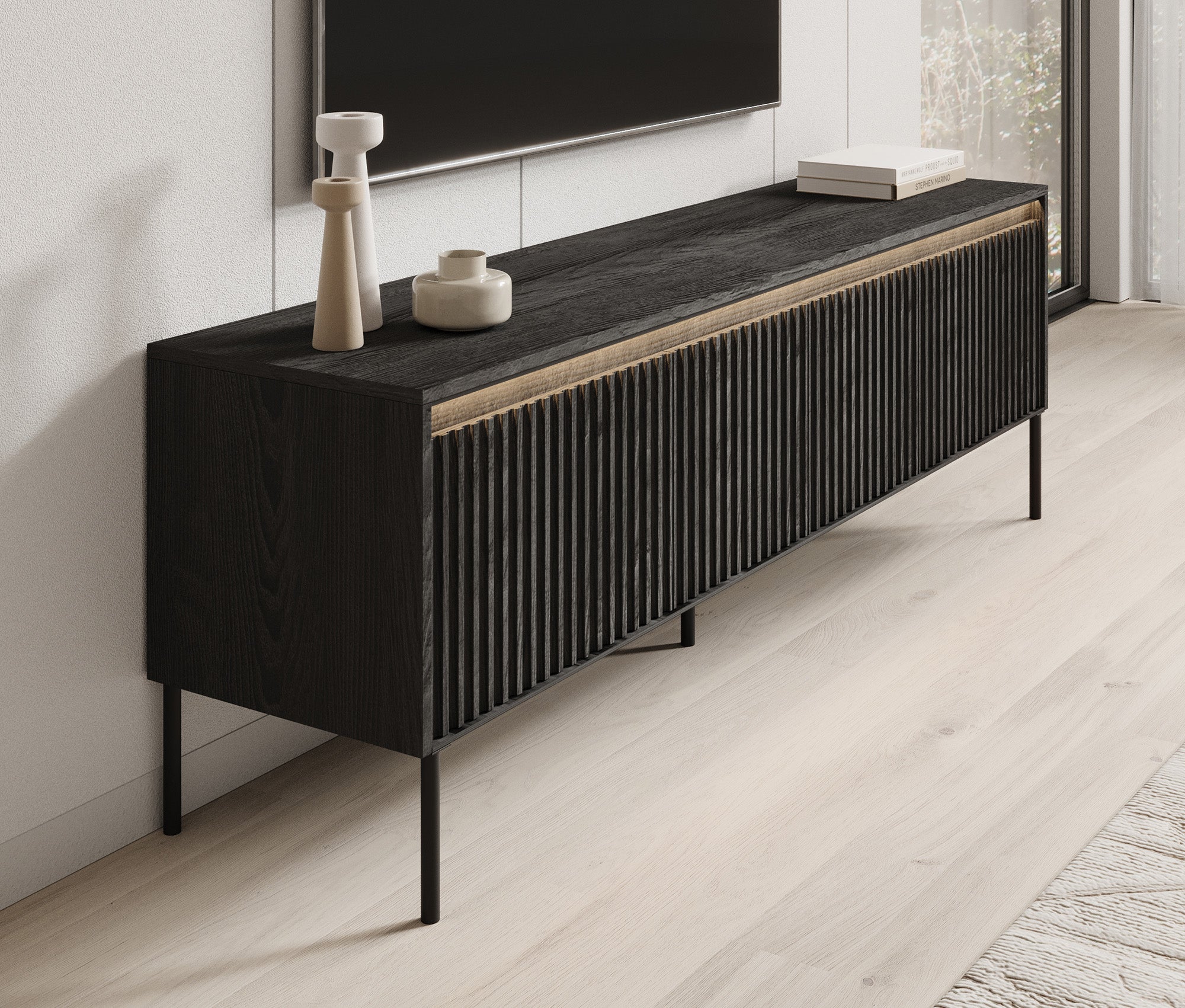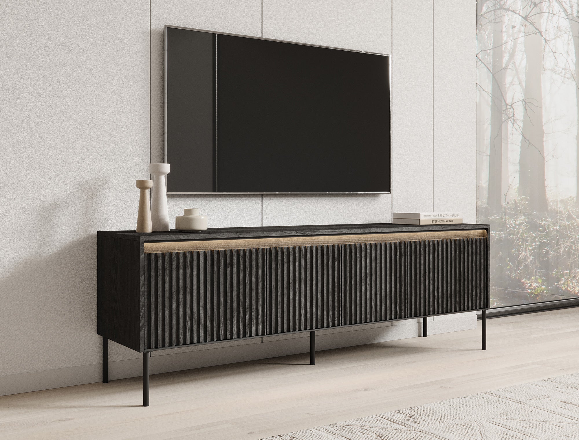 Meubella - TV-Meubel Timoteo - Mat zwart - 167 cm