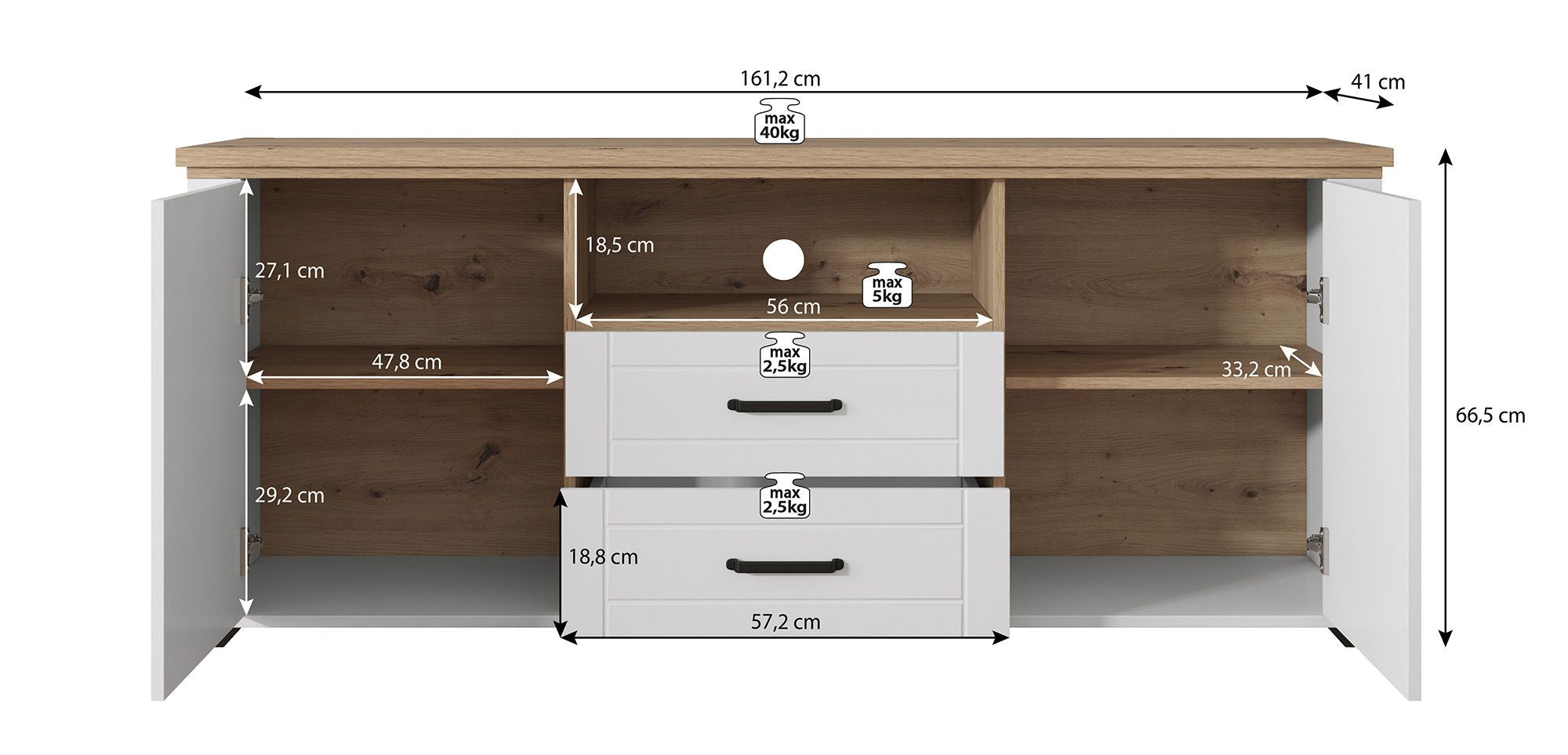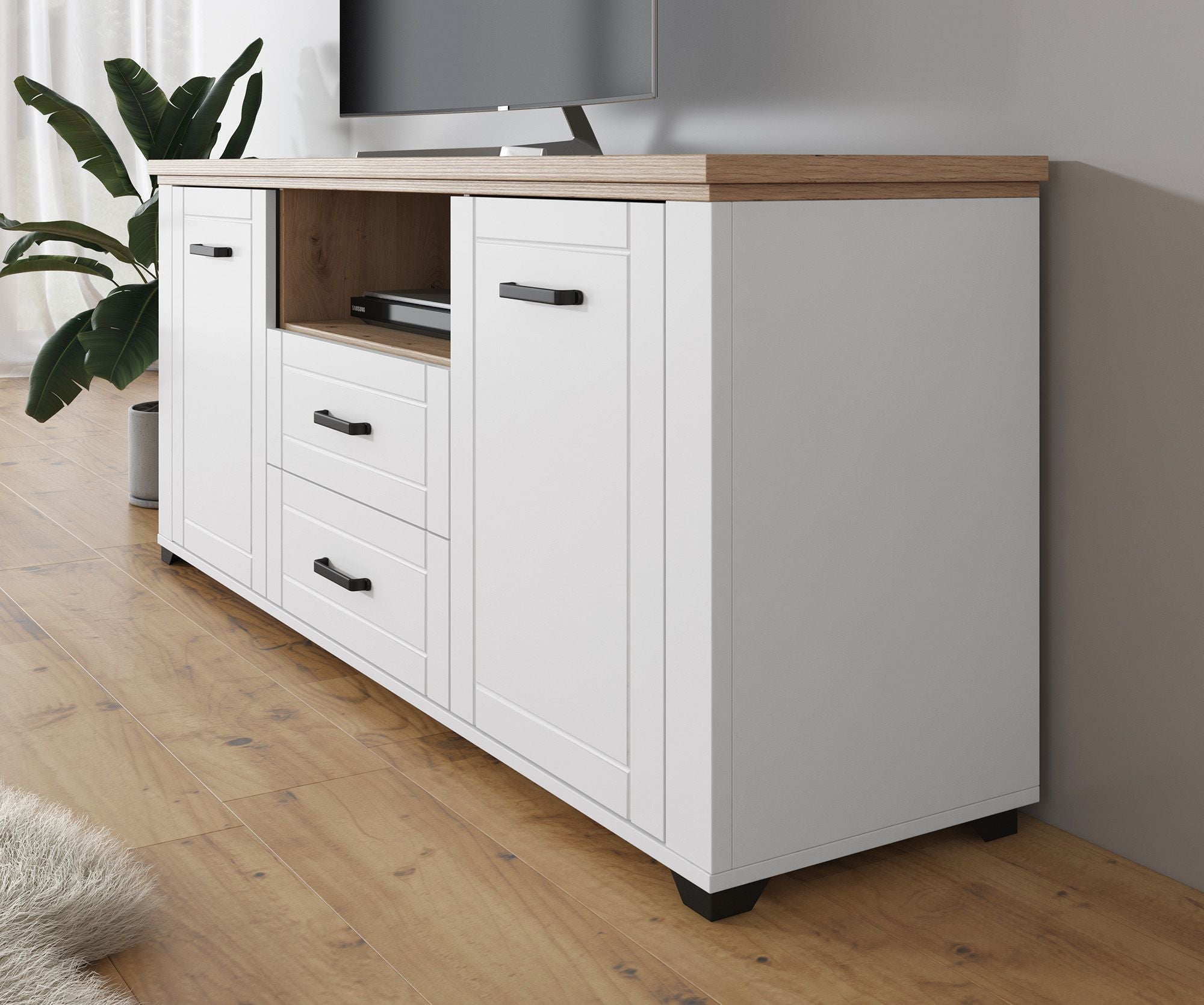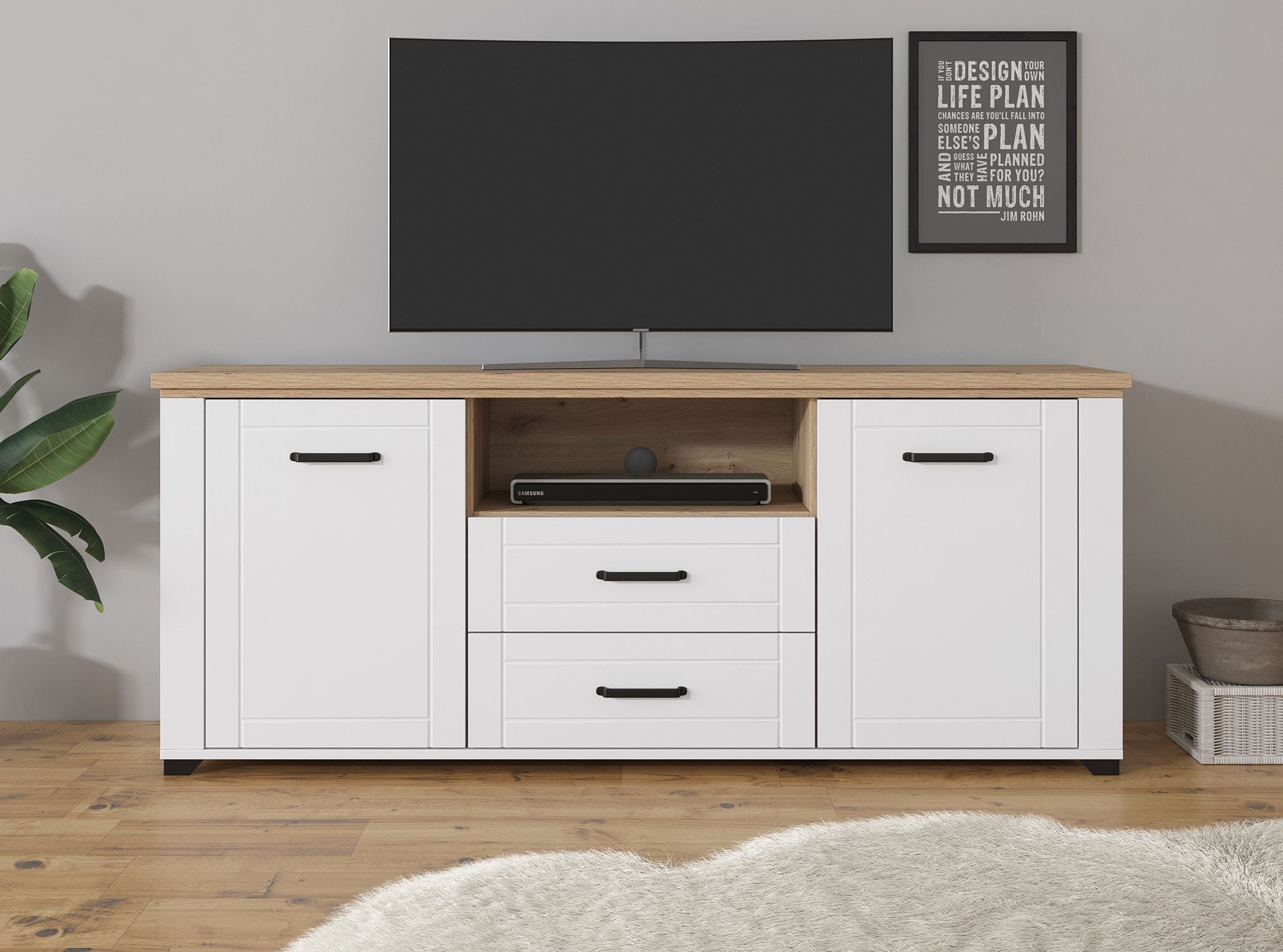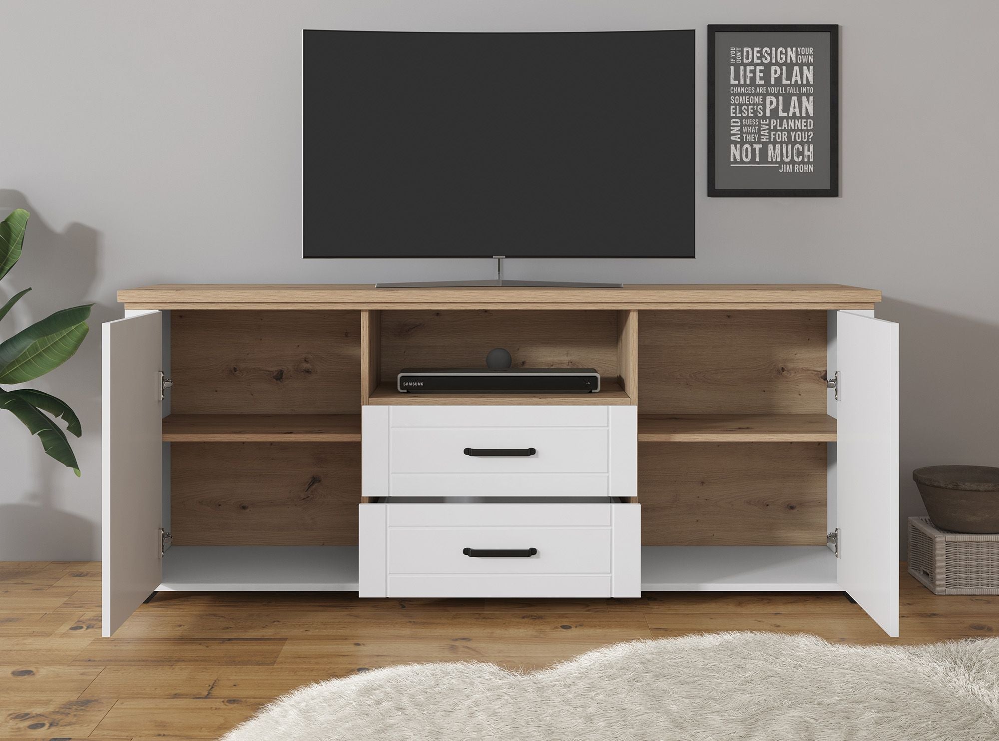 Meubella - TV-Meubel Vernon - Wit - Eiken - 161 cm