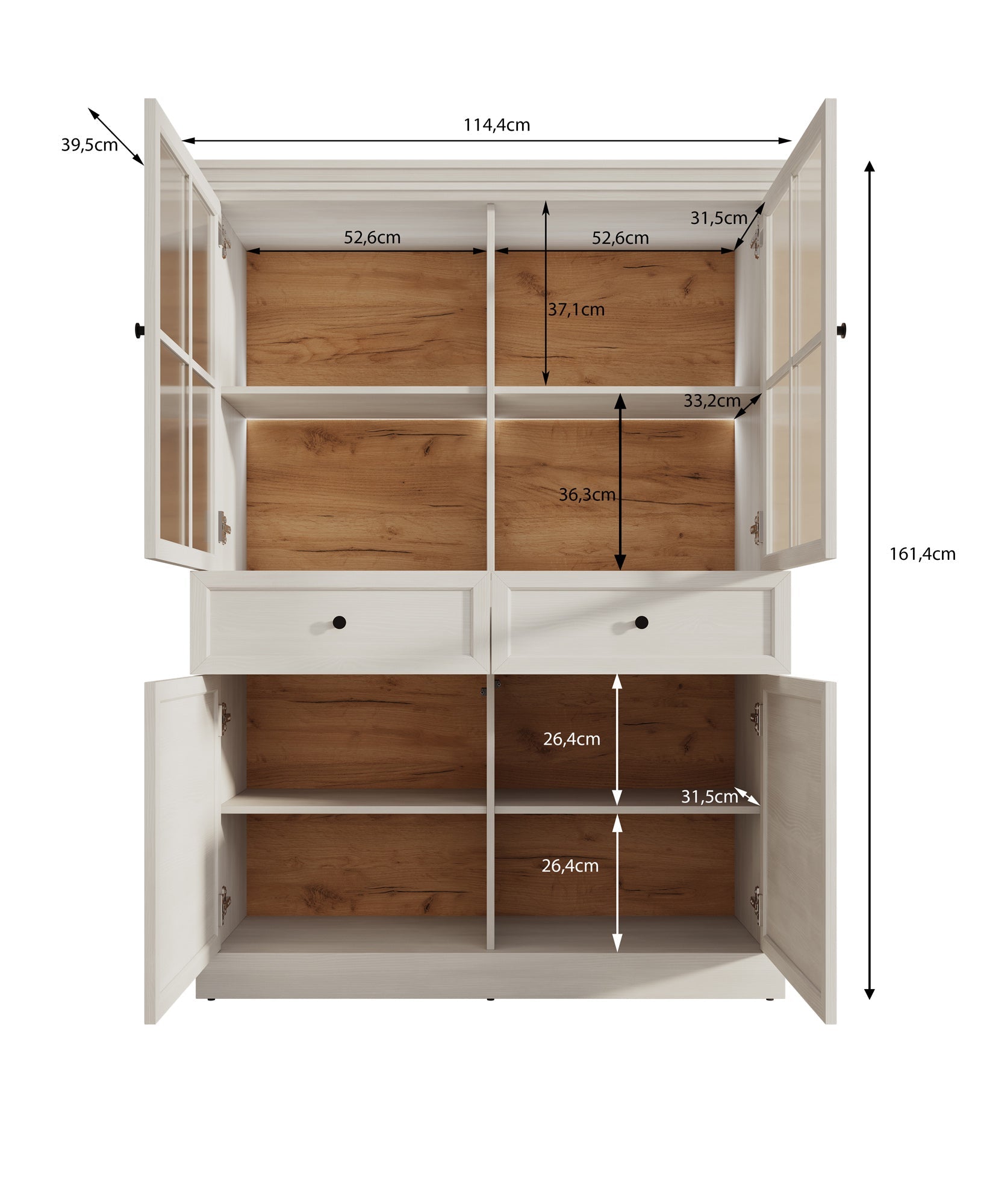 Meubella - Vitrinekast Leroy - Zwart eiken - 114 cm