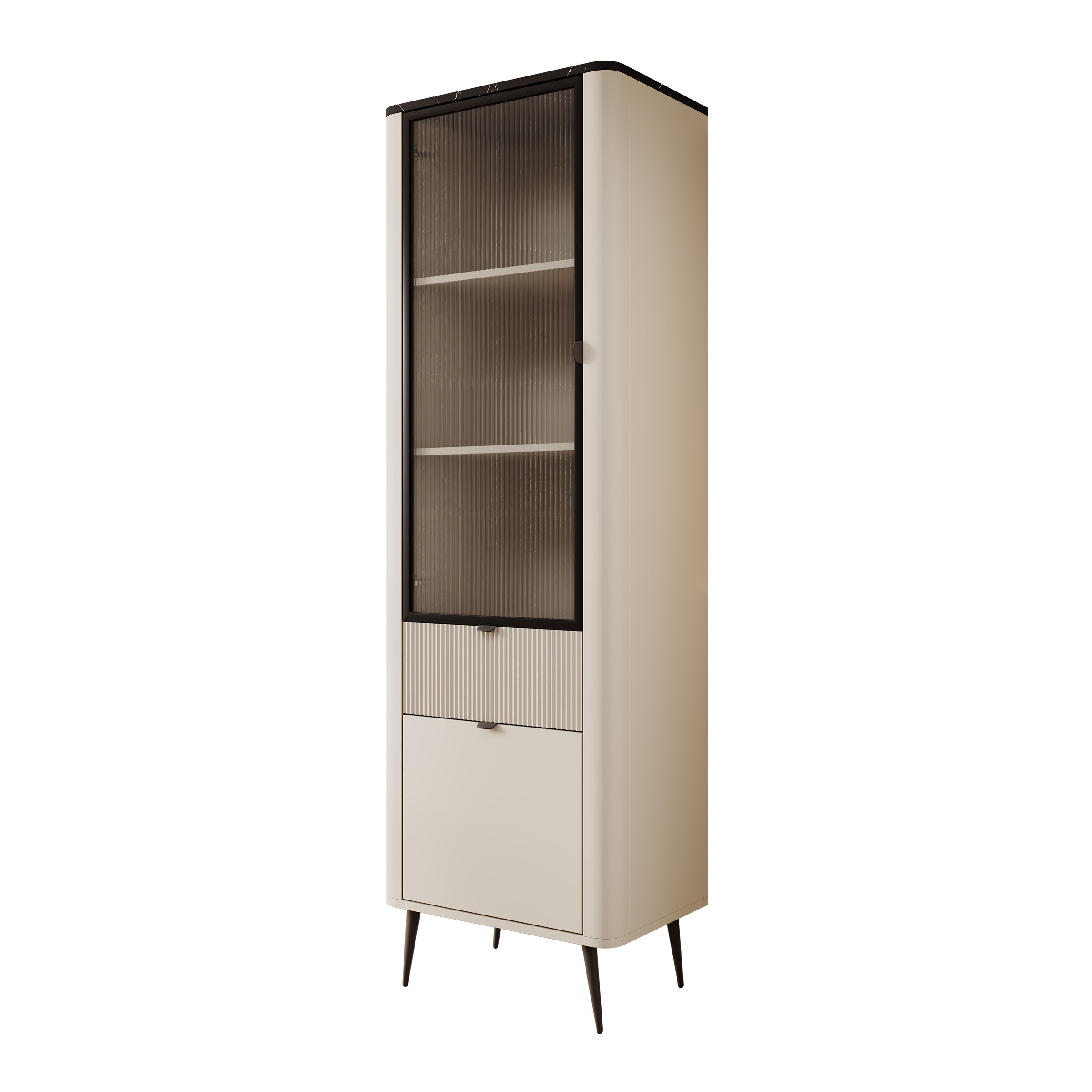 Meubella - Vitrinekast Mace - Beige - 60 cm - Met glas