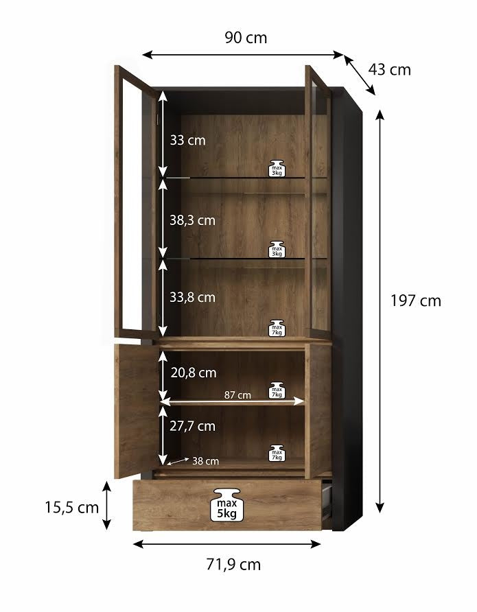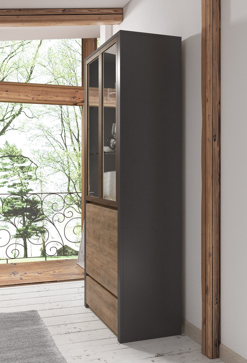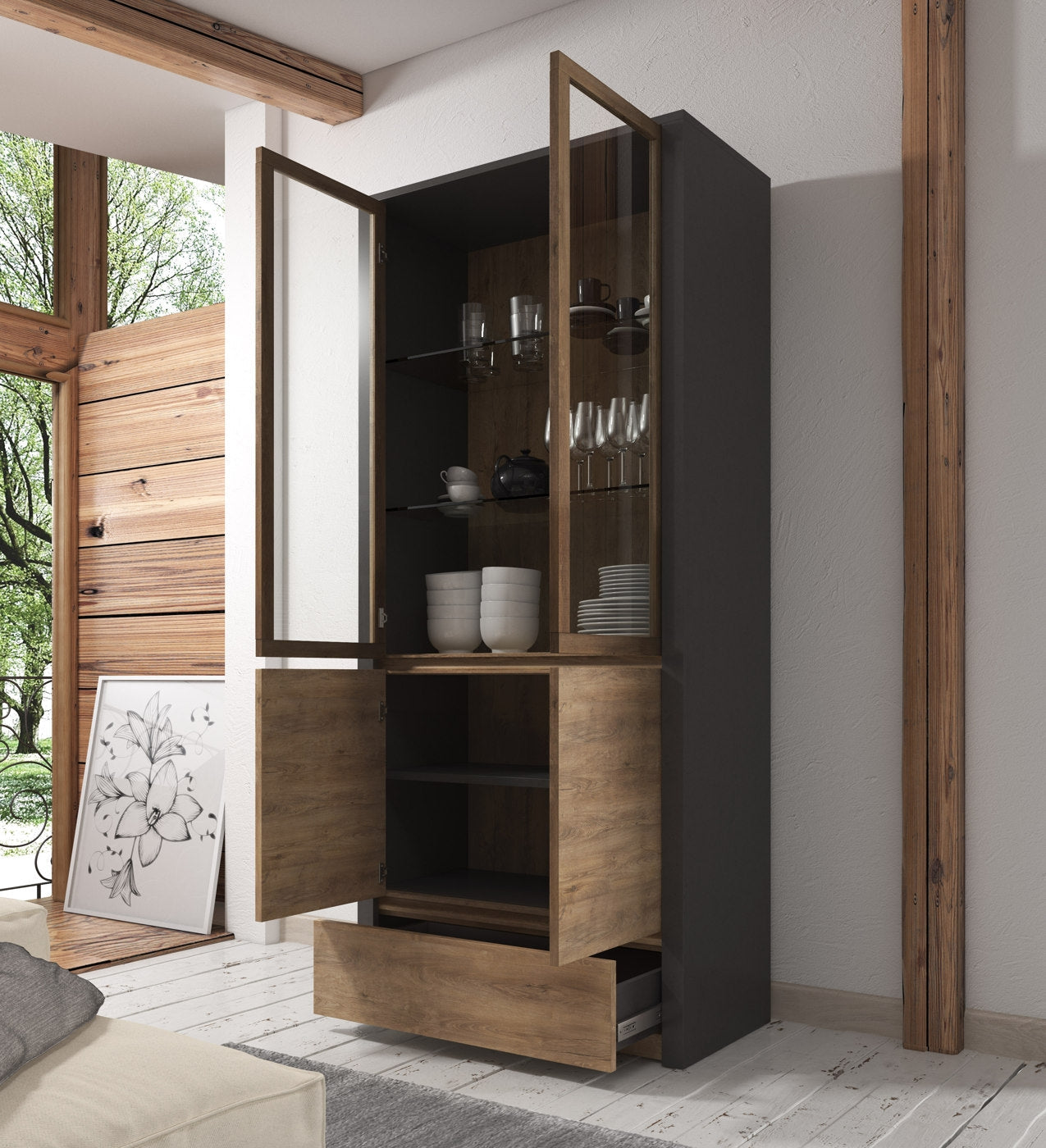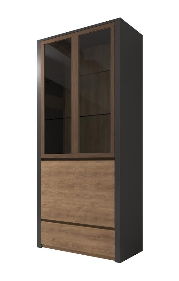 Meubella - Vitrinekast Monaco - Eiken - Grijs - 90 cm