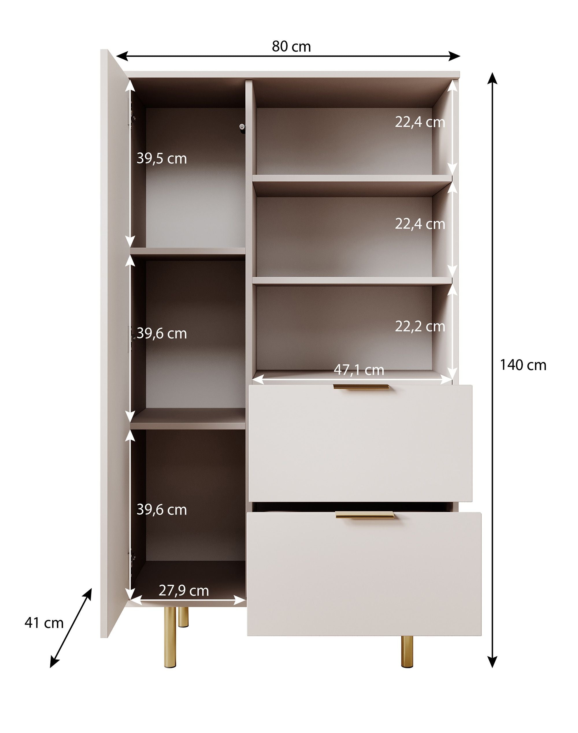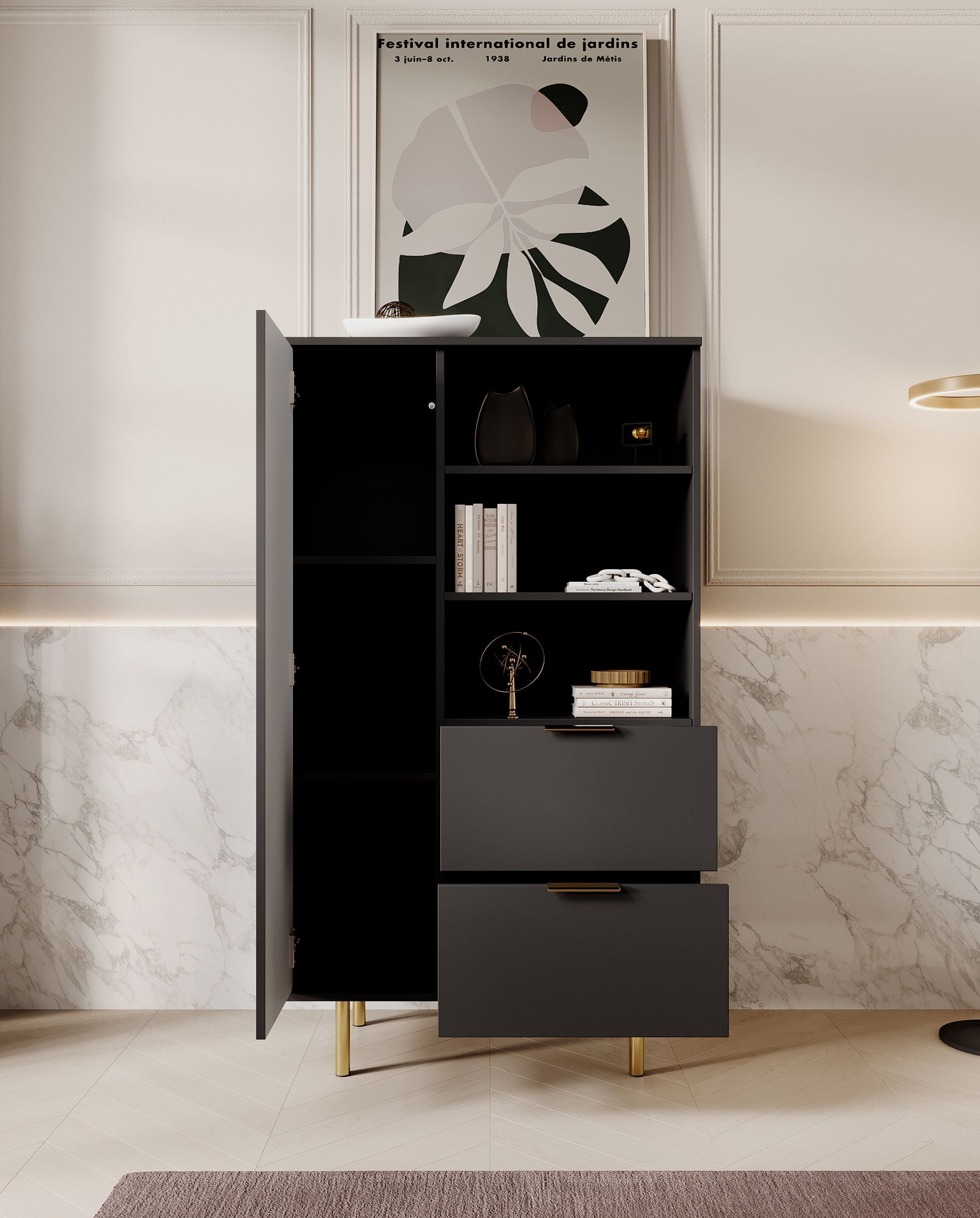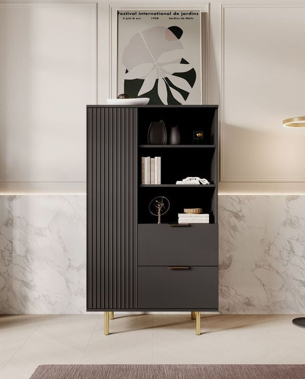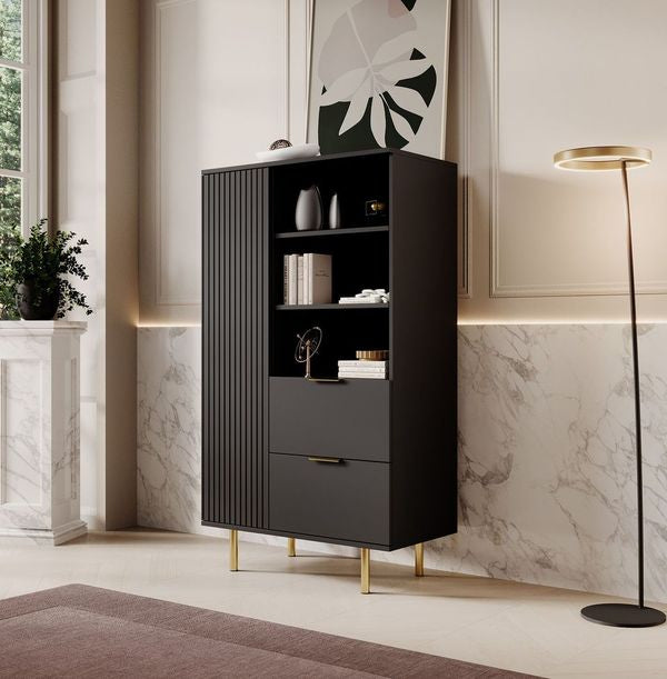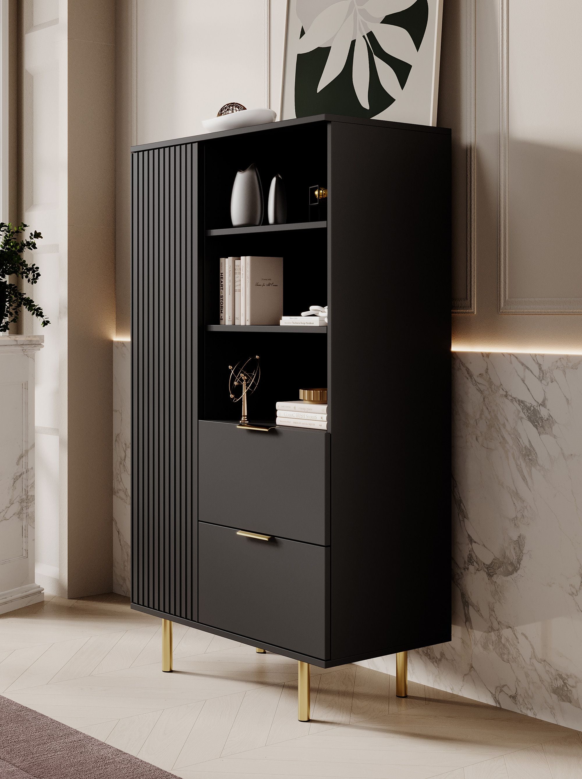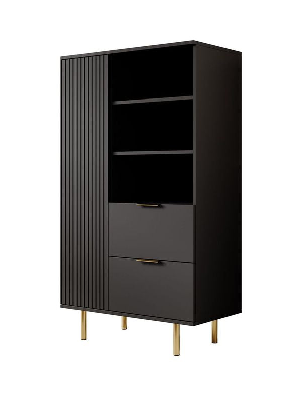 Meubella Vitrinekast Nicola - Mat zwart - 80 cm - Laag