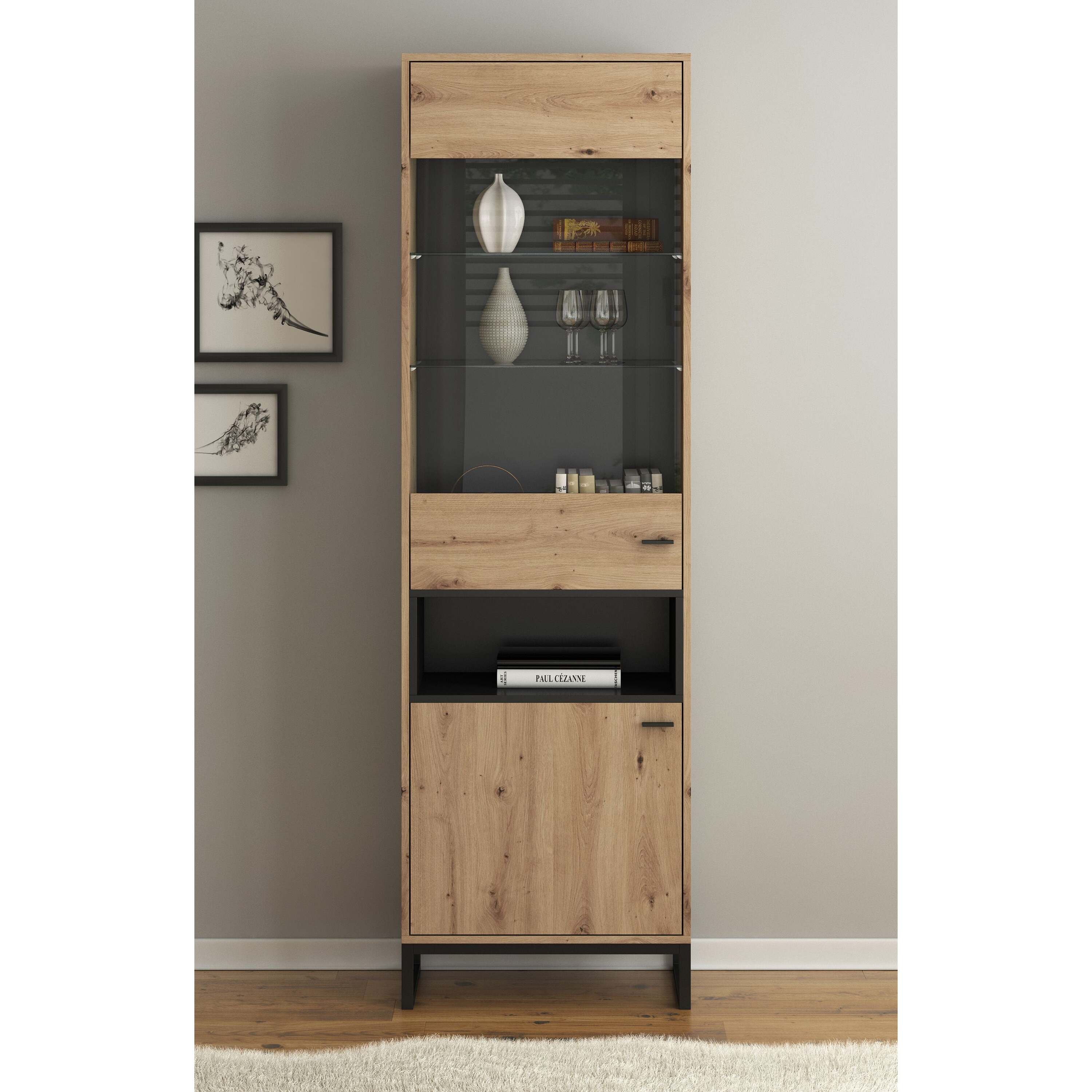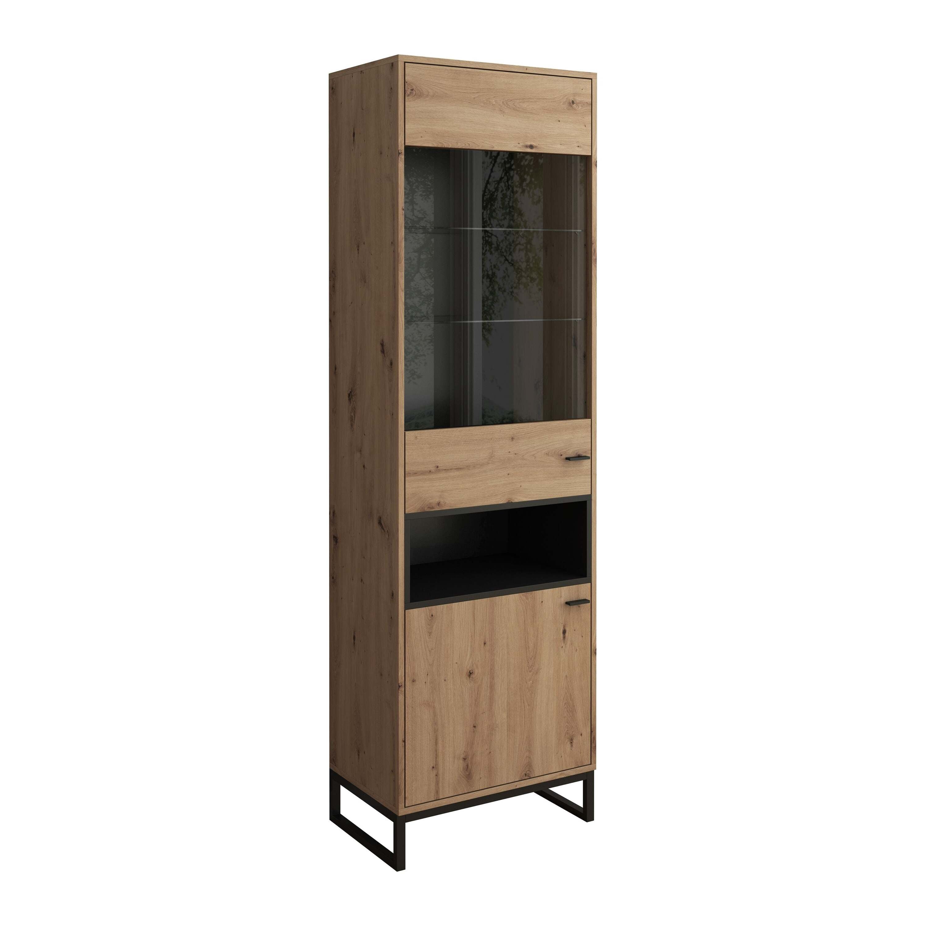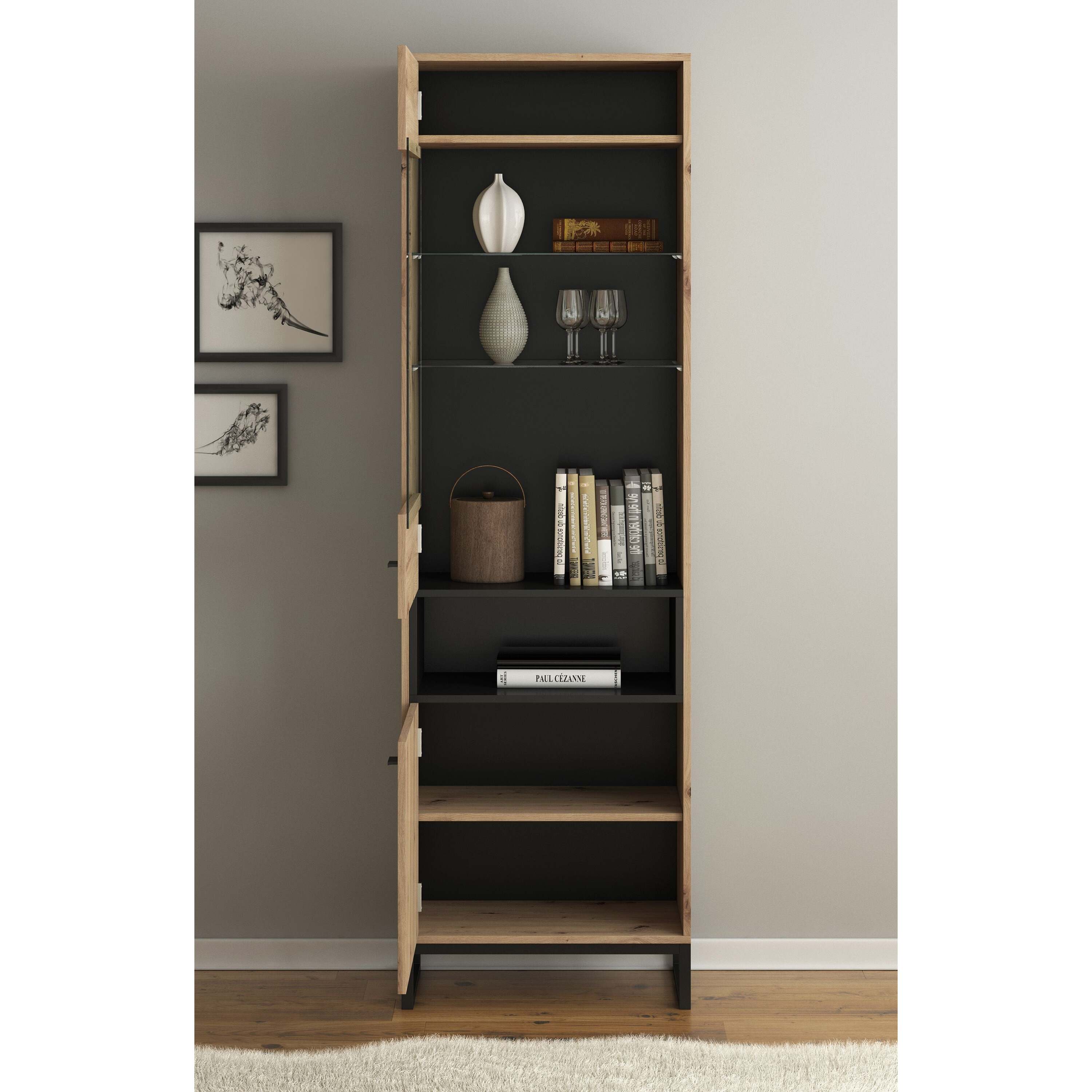 Meubella - Vitrinekast Ozzy - Eiken - Zwart - 60 cm