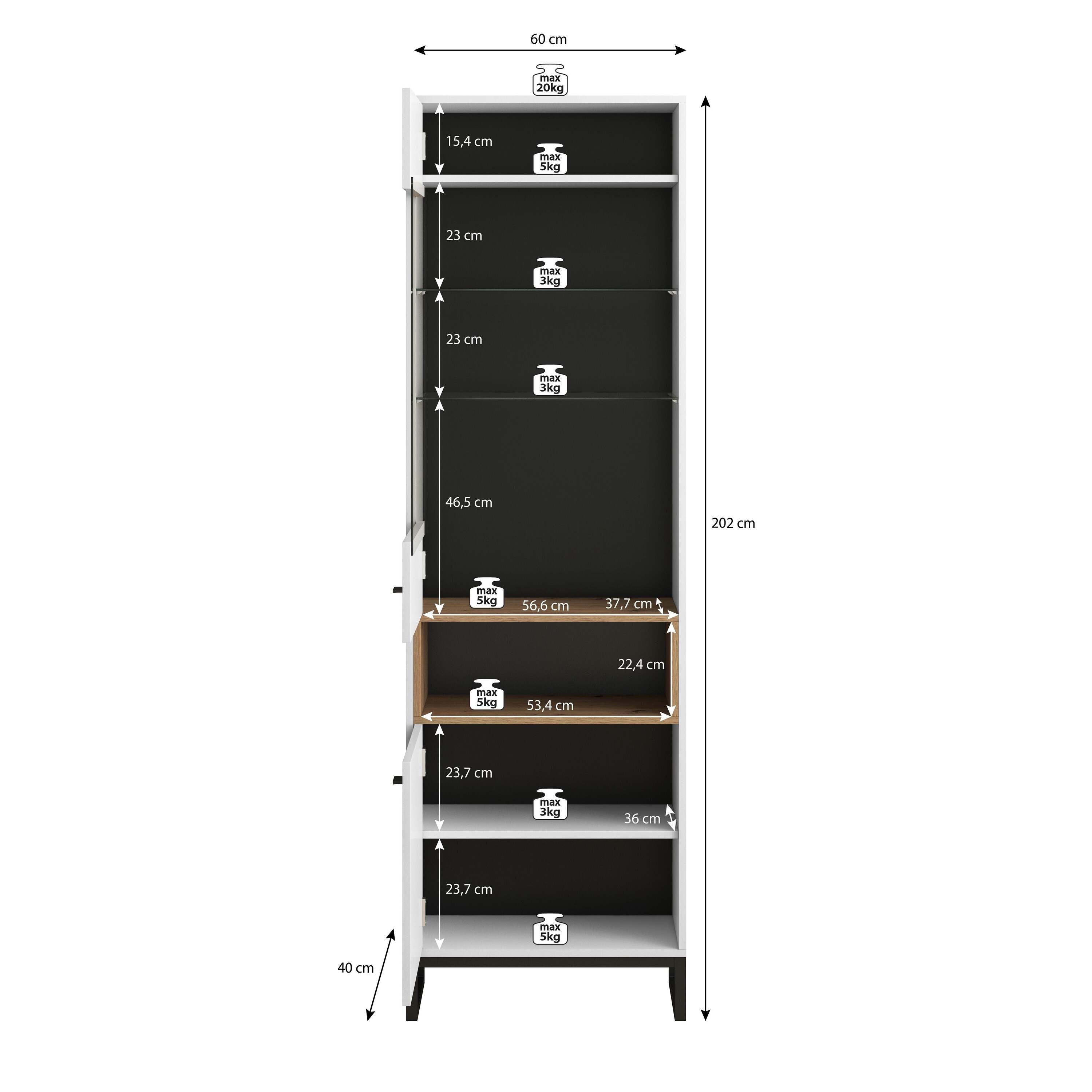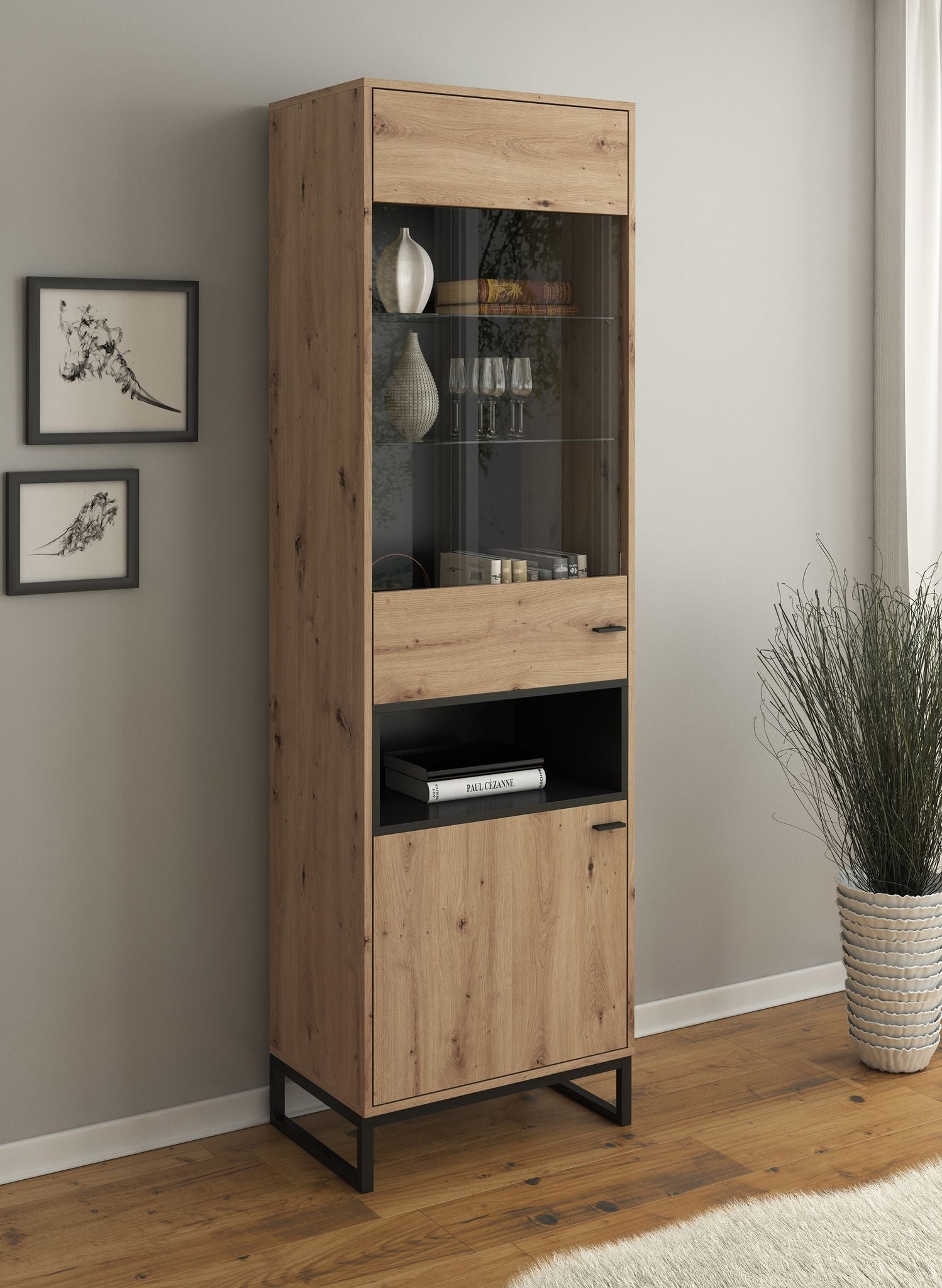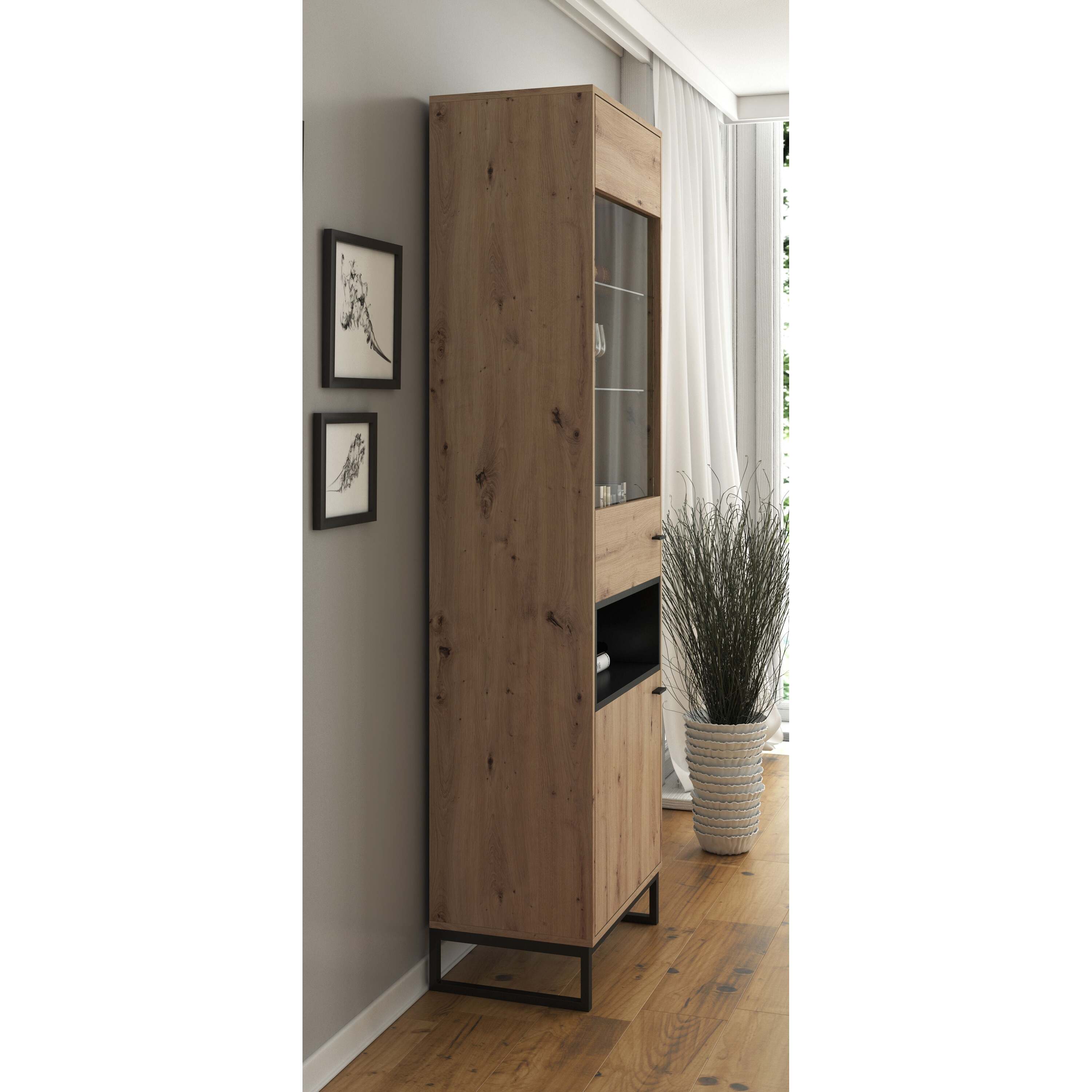 Meubella - Vitrinekast Ozzy - Eiken - Zwart - 60 cm