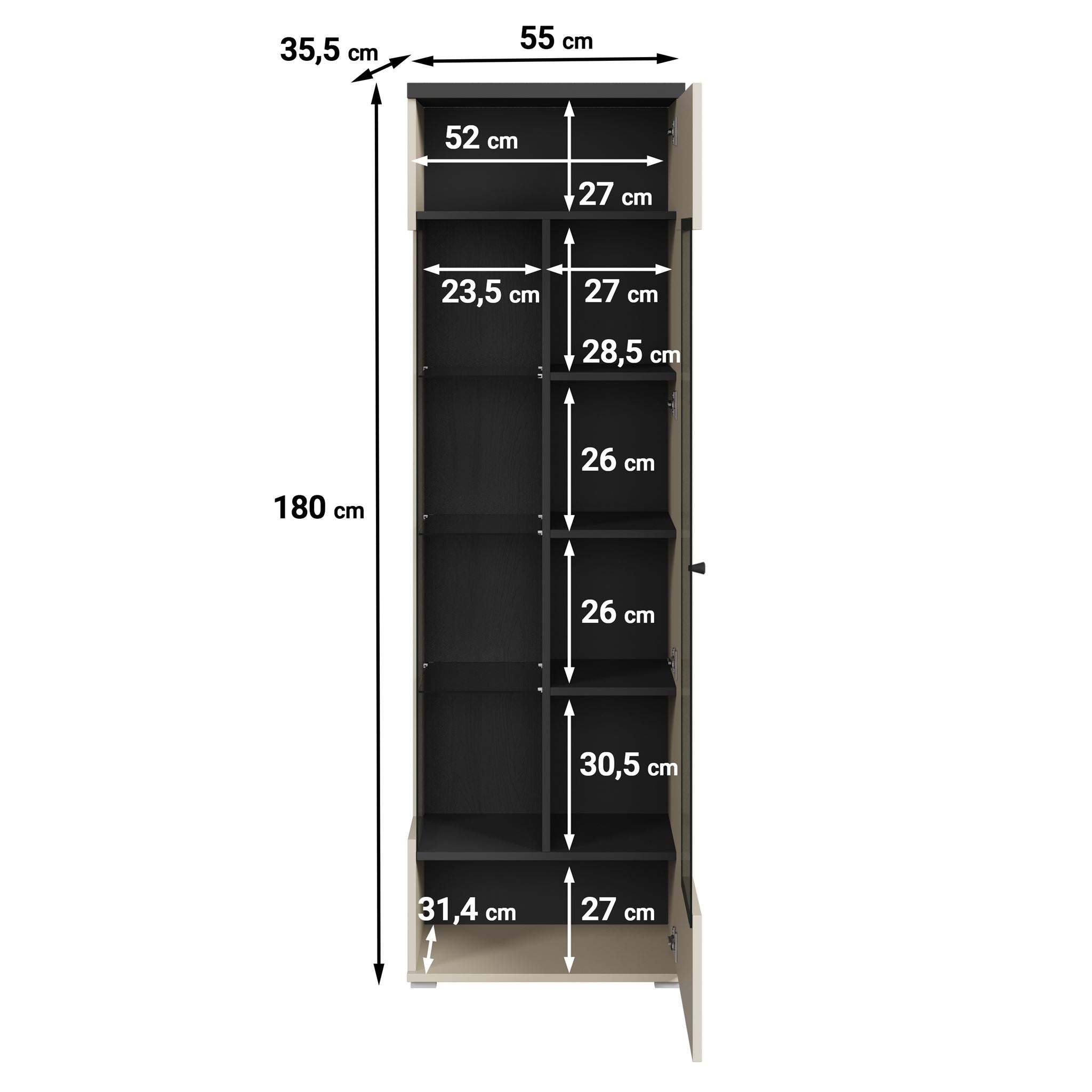 Meubella - Vitrinekast Sekai - Beige - 55 cm