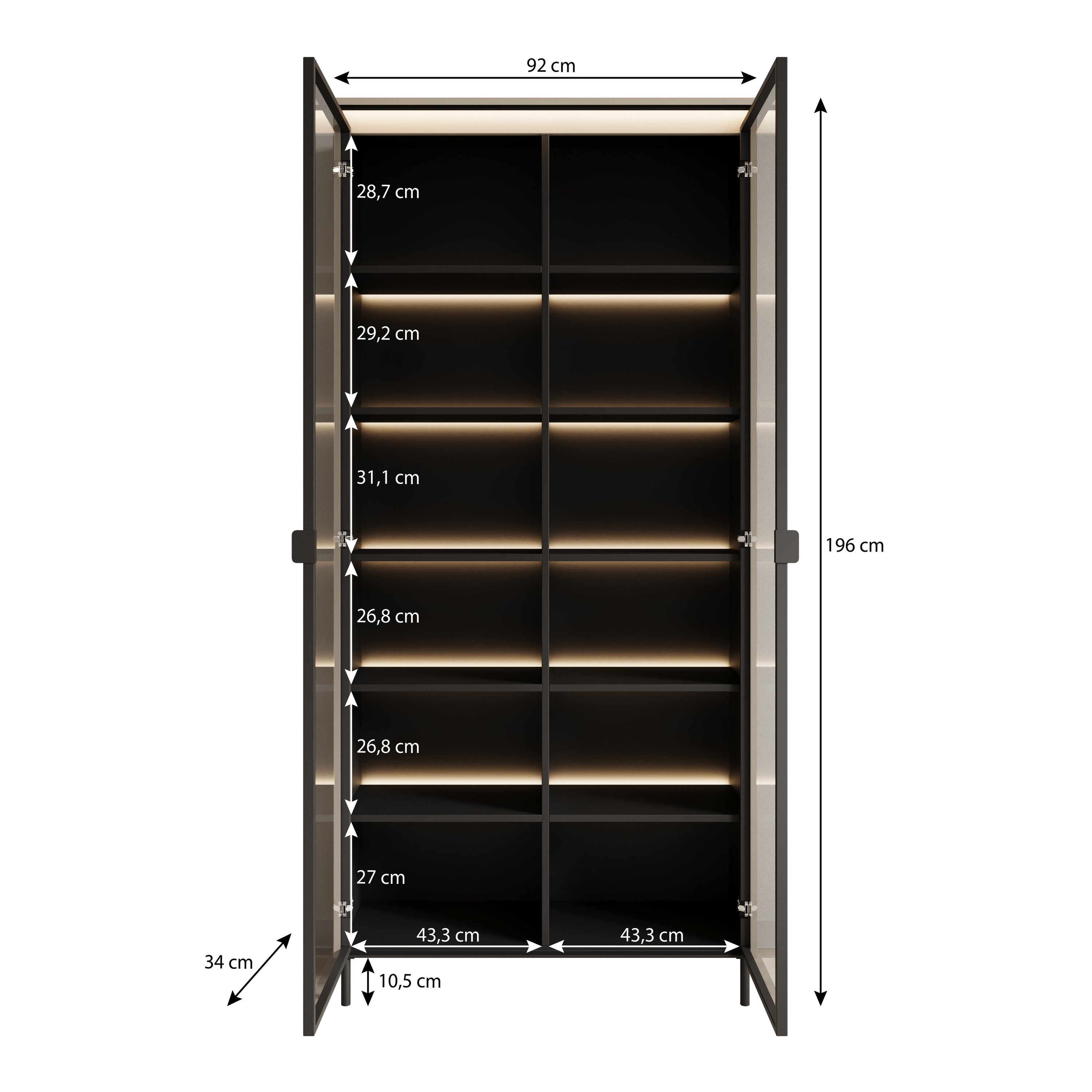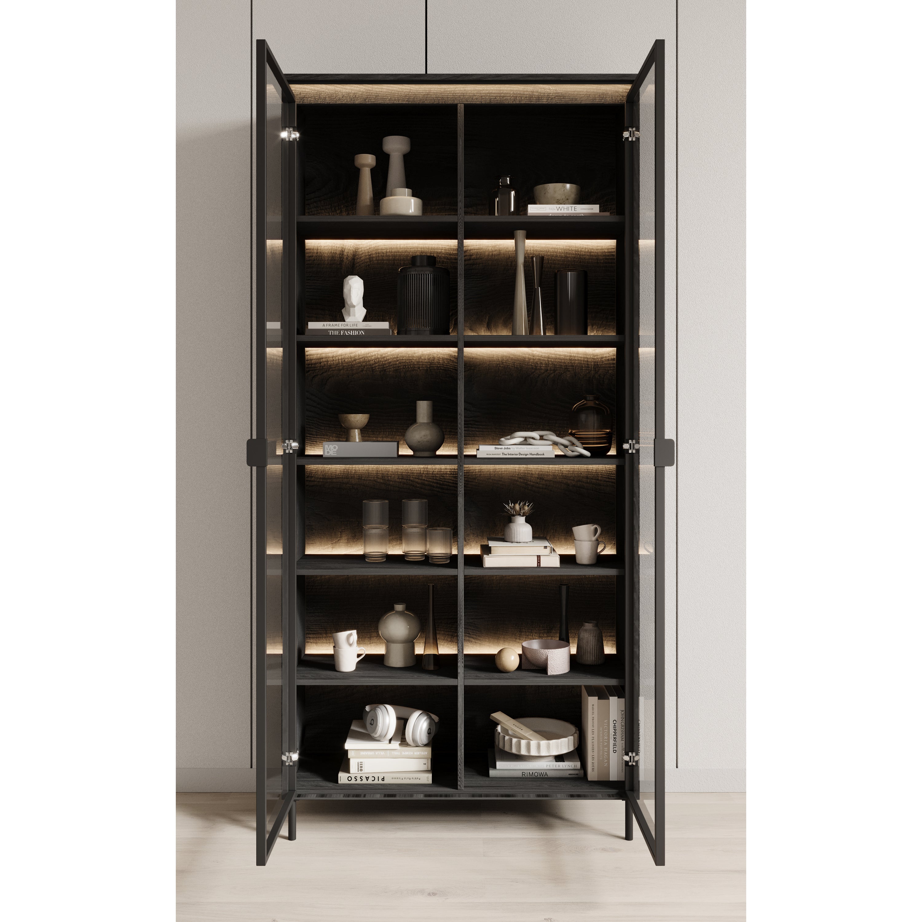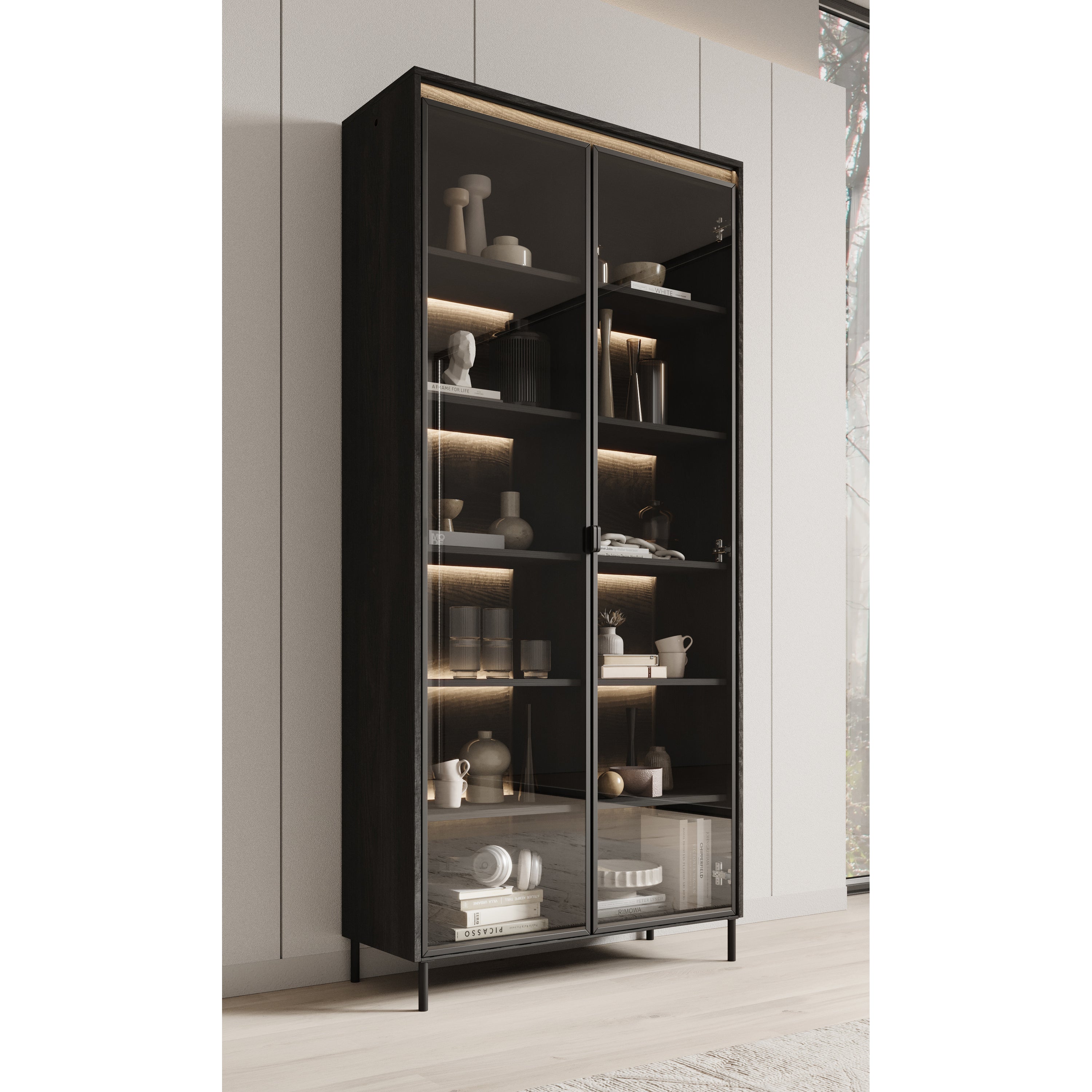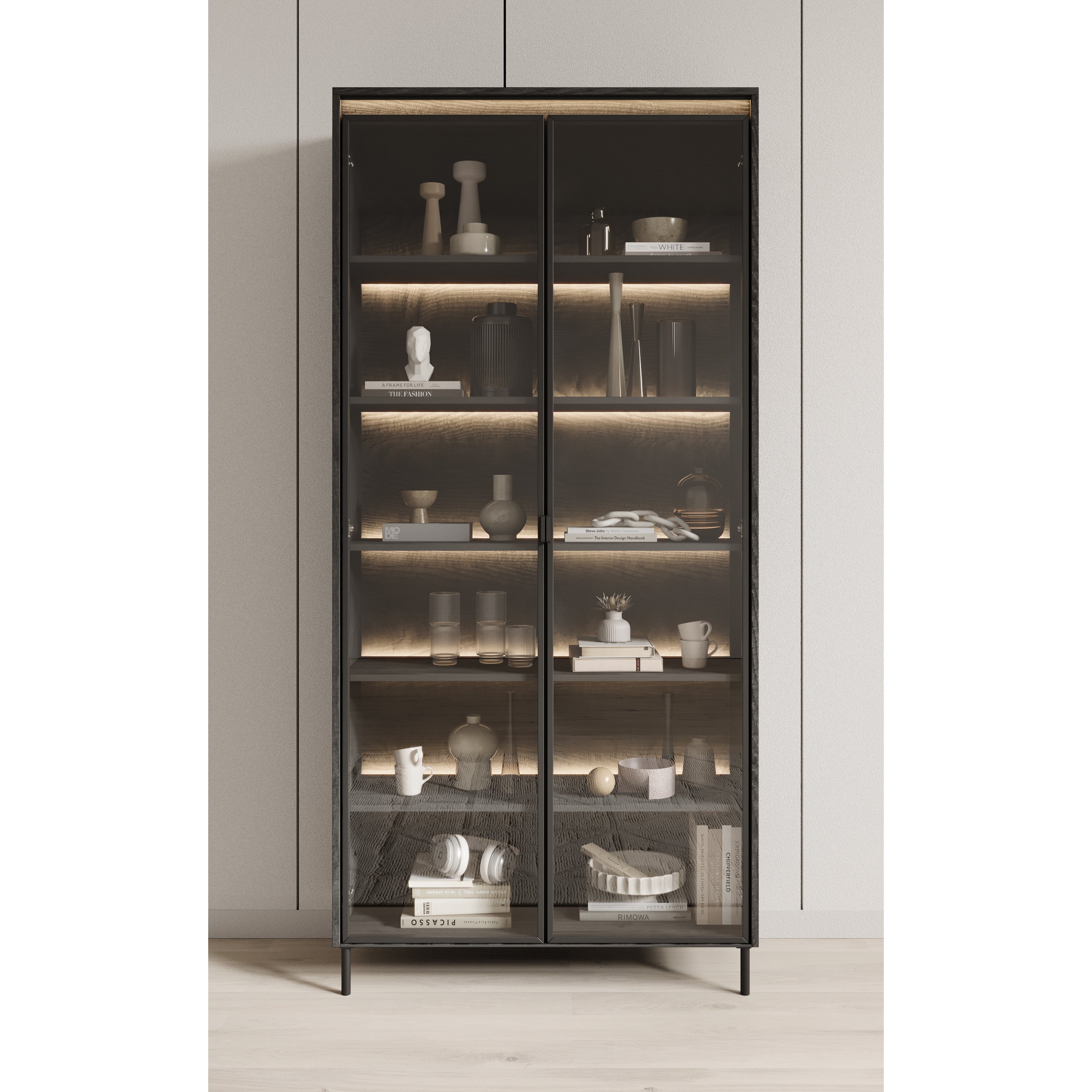 Meubella Vitrinekast Timoteo - Mat zwart - 92 cm