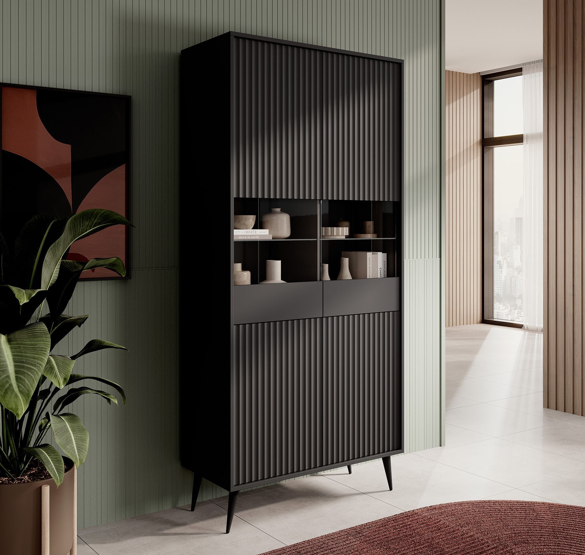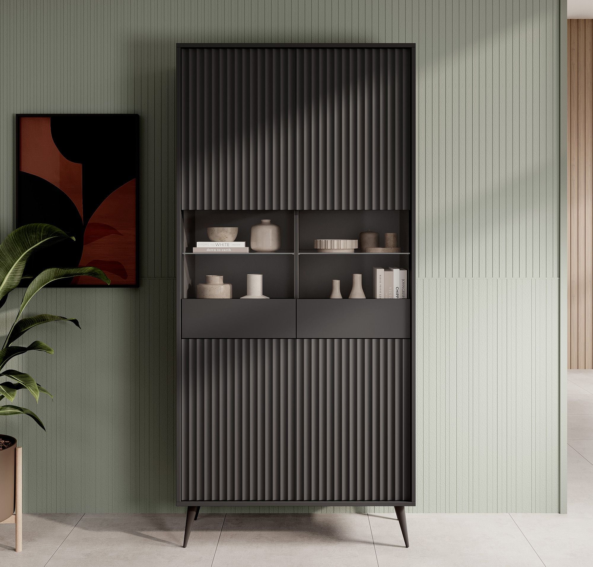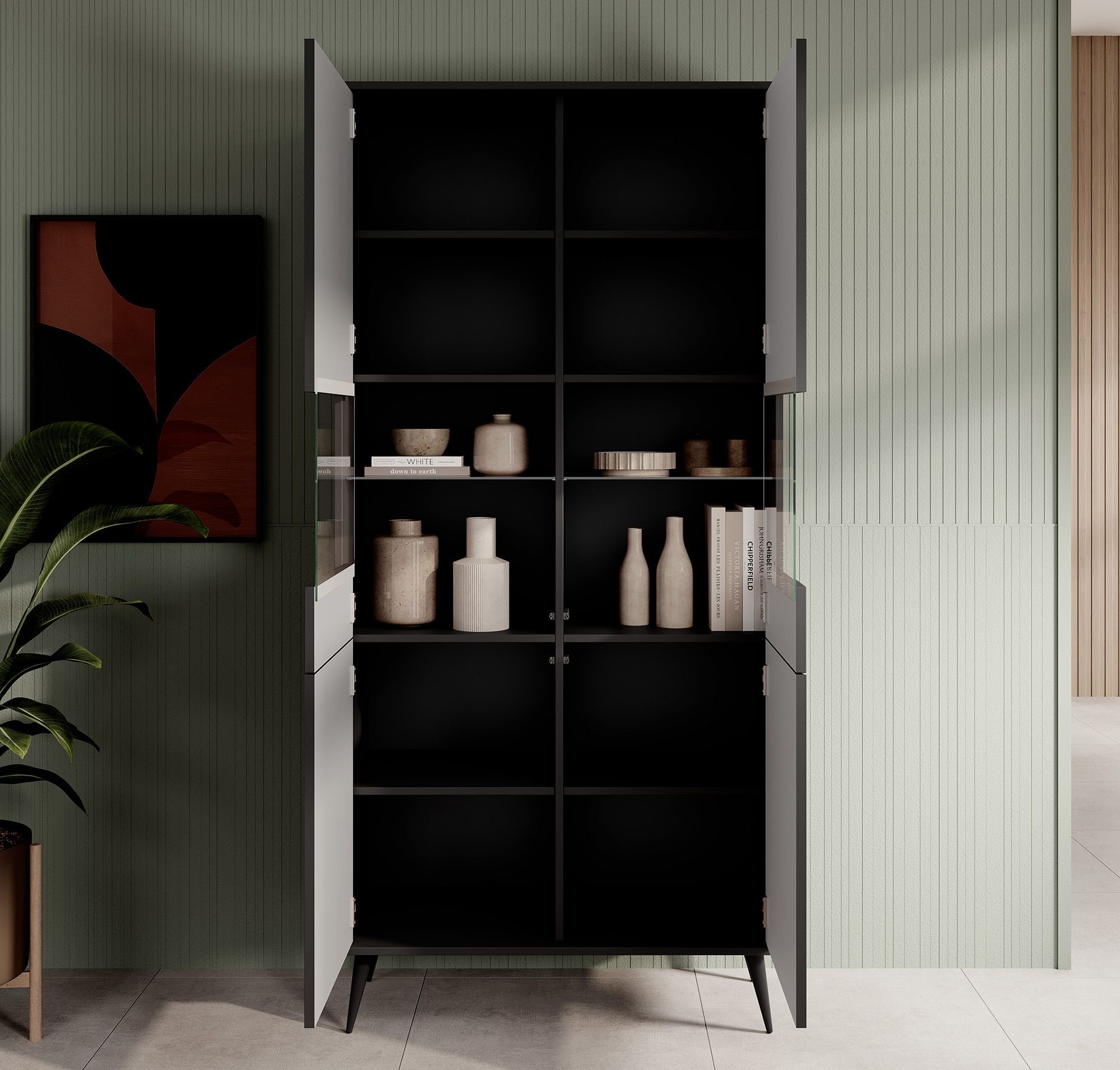 Meubella - Vitrinekast Winq - Antraciet - 90 cm