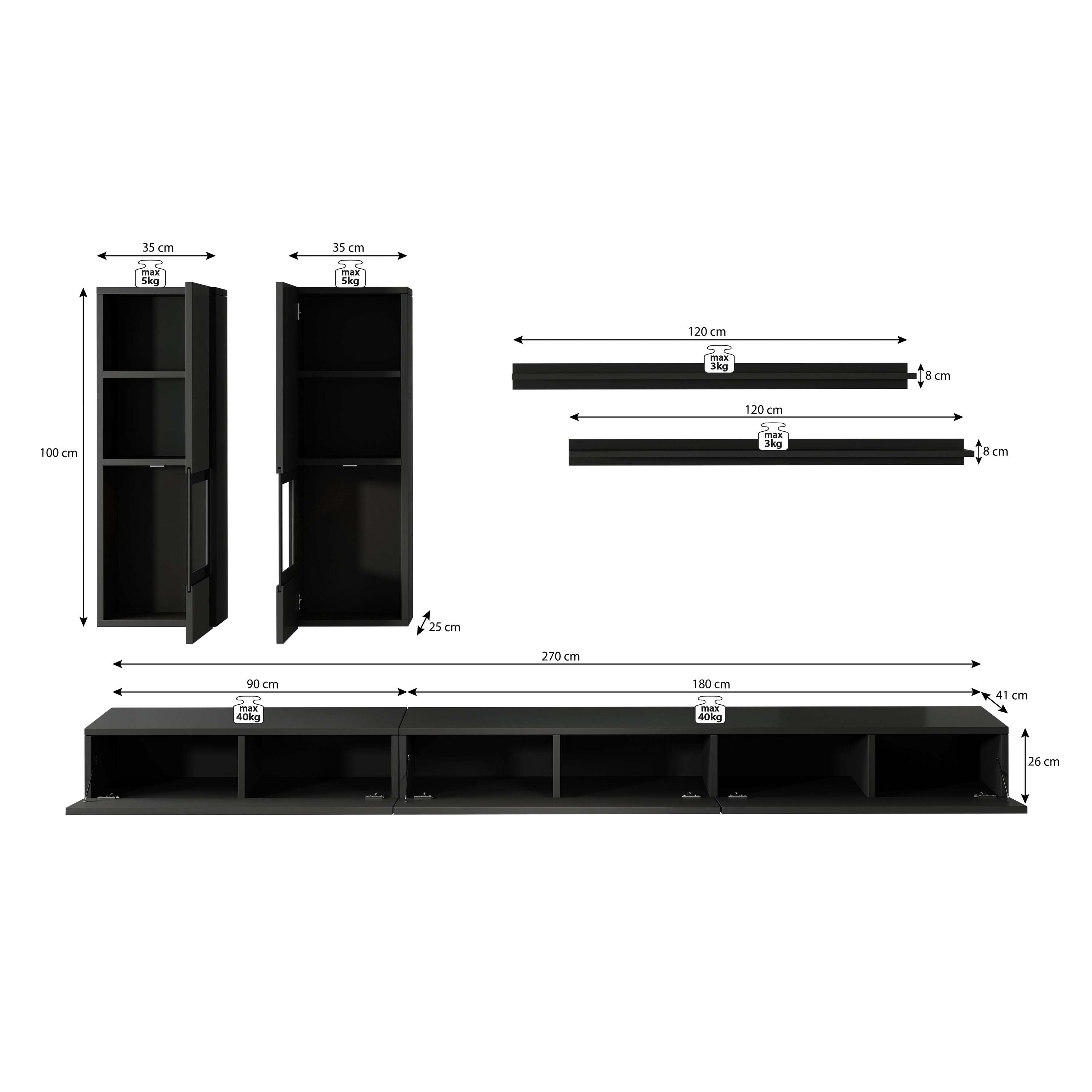 Meubella - Wandmeubel Antrix - Zwart