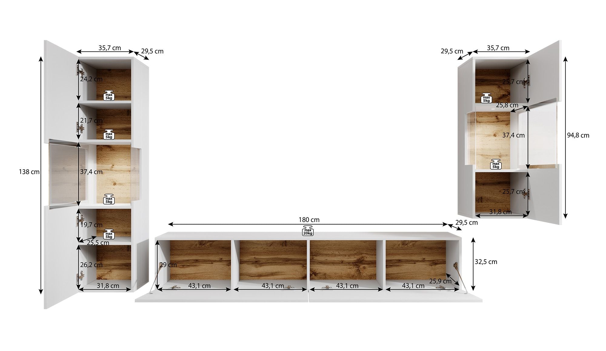 Meubella - Wandmeubel Asilento 2 - Mat wit