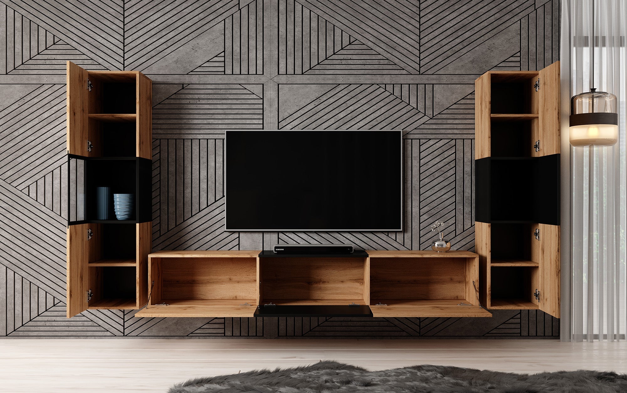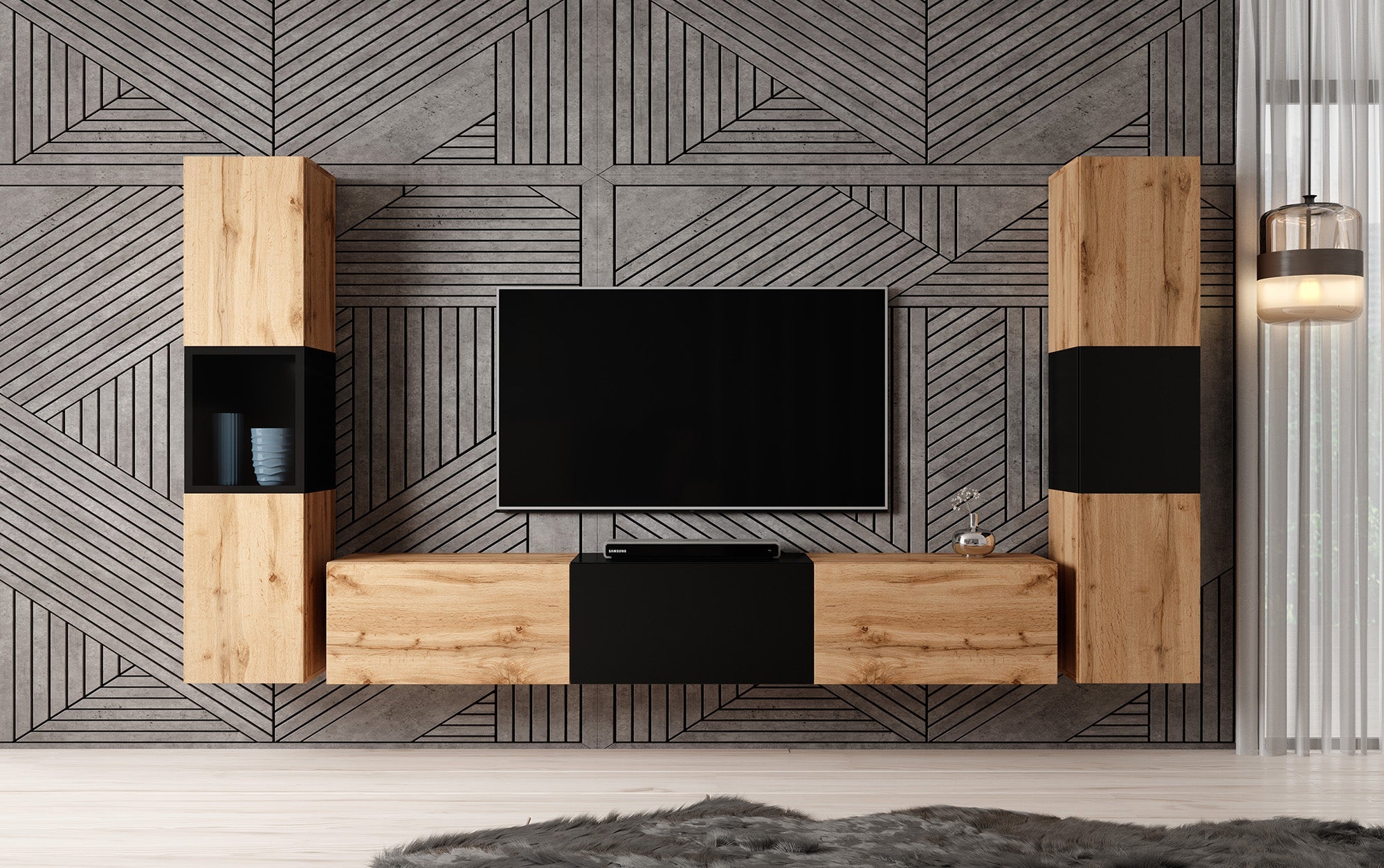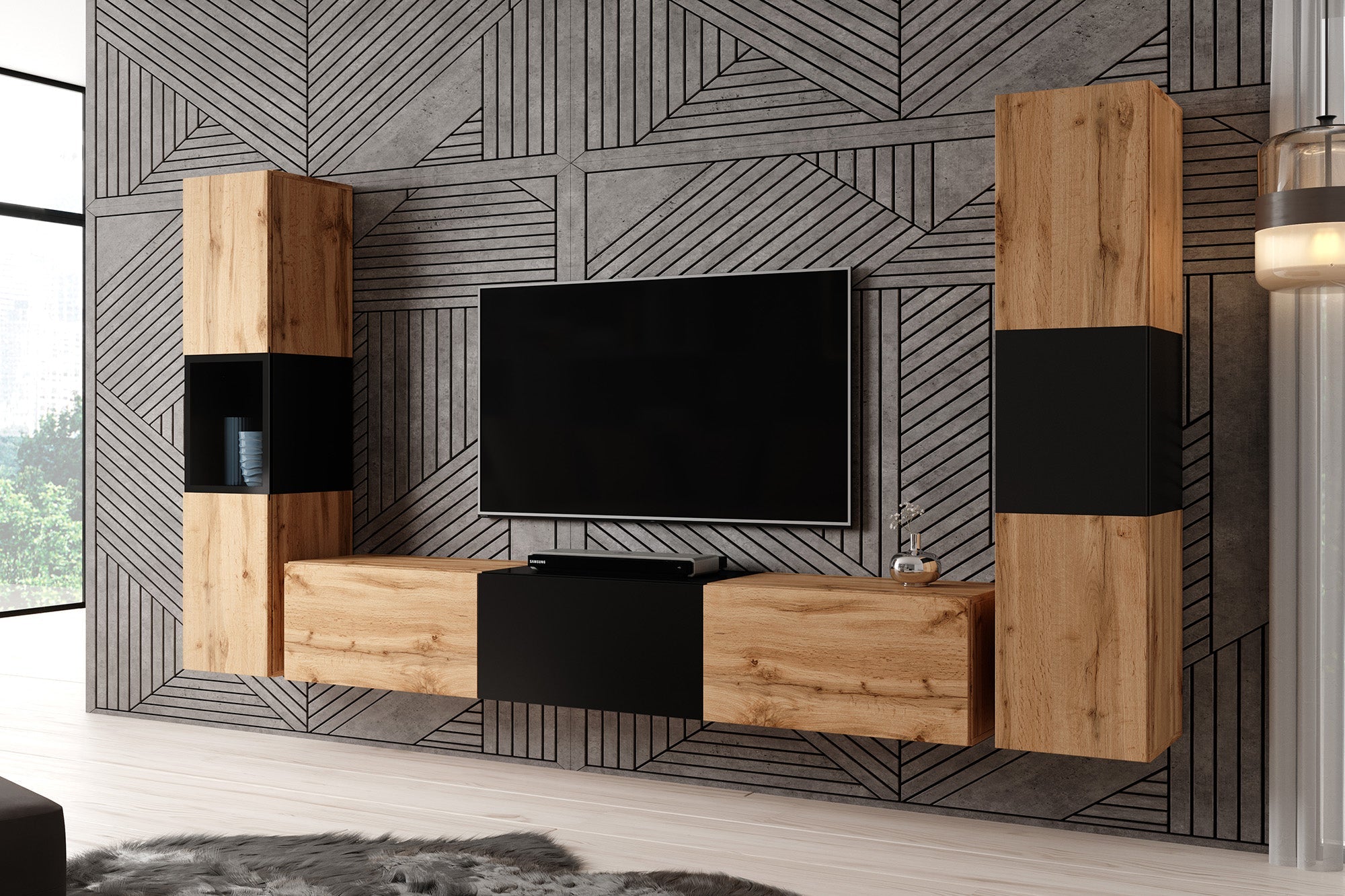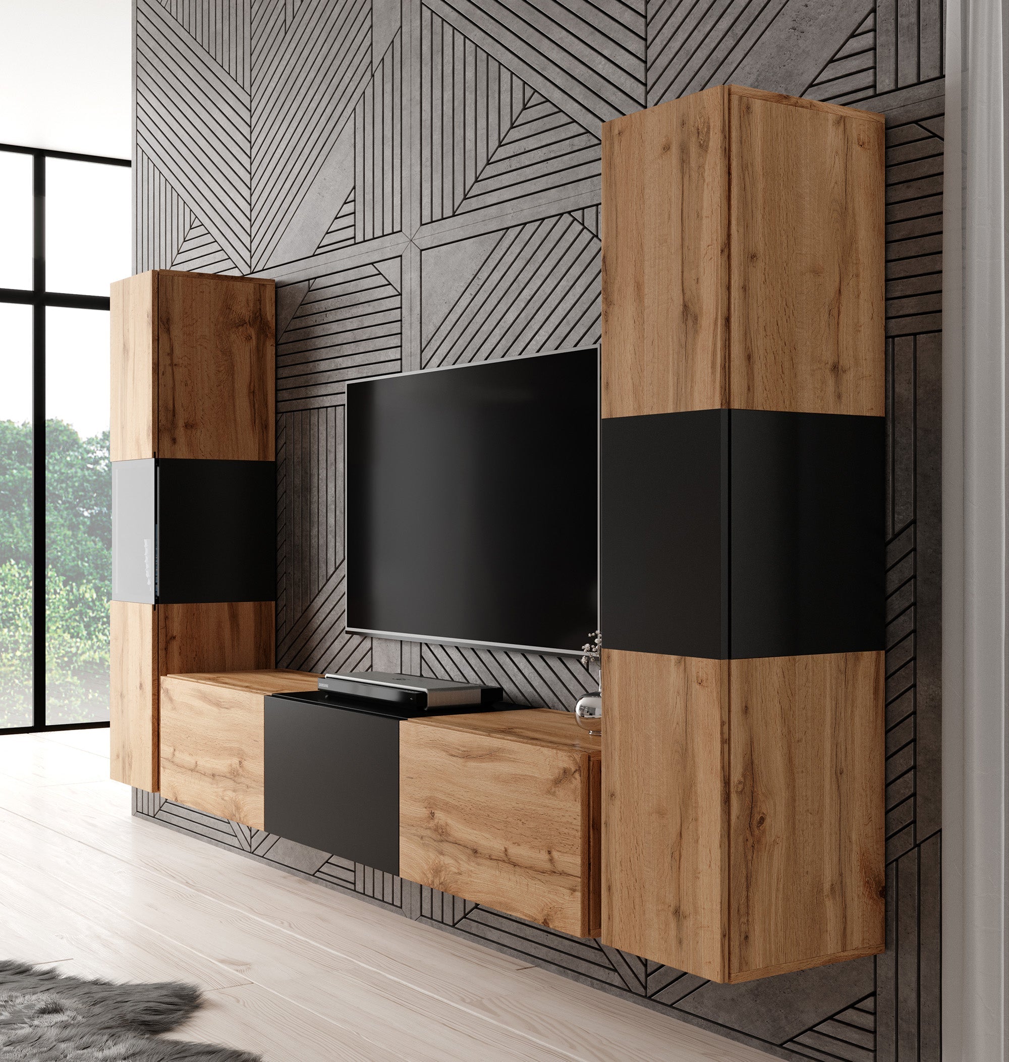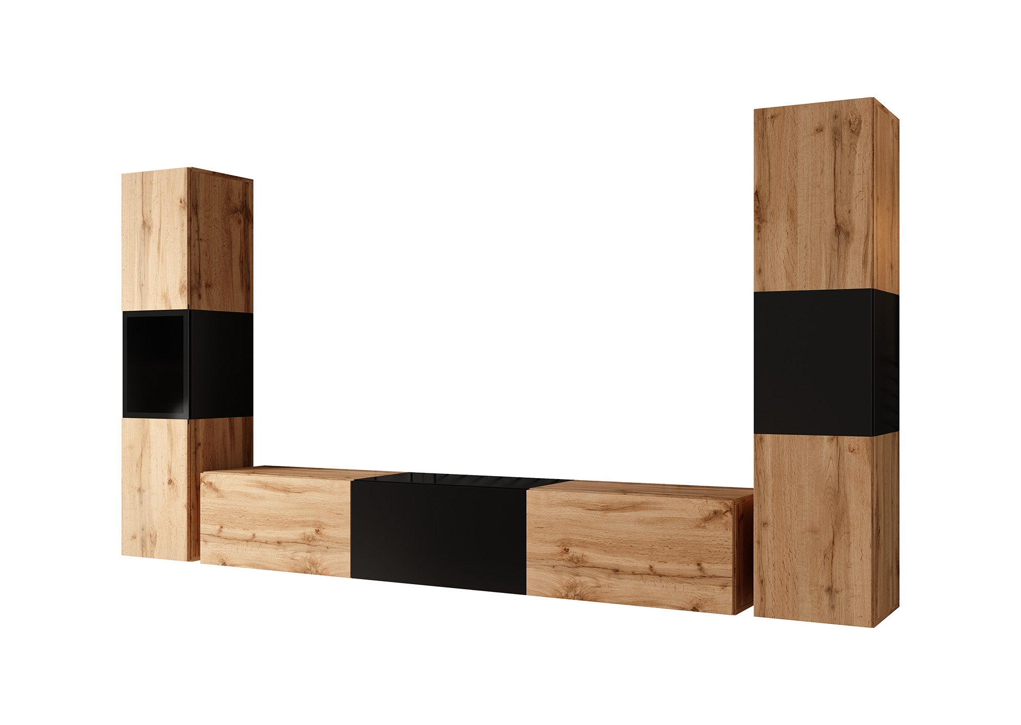 Meubella - Wandmeubel Bonzo 3 - Eiken - Zwart