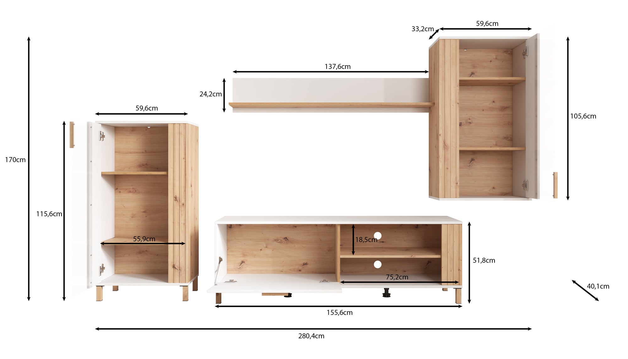 - TV-Meubel met 2 uitsparingen voor bedrading