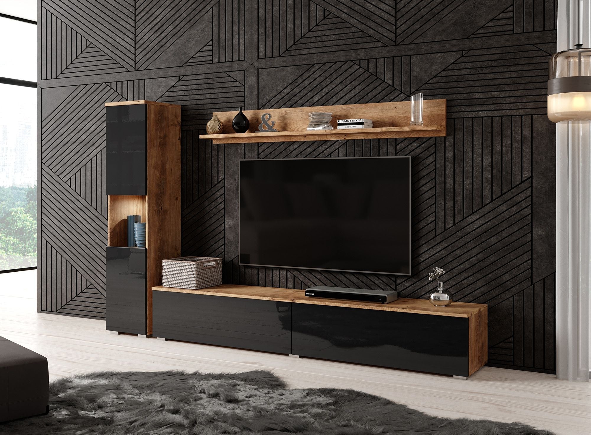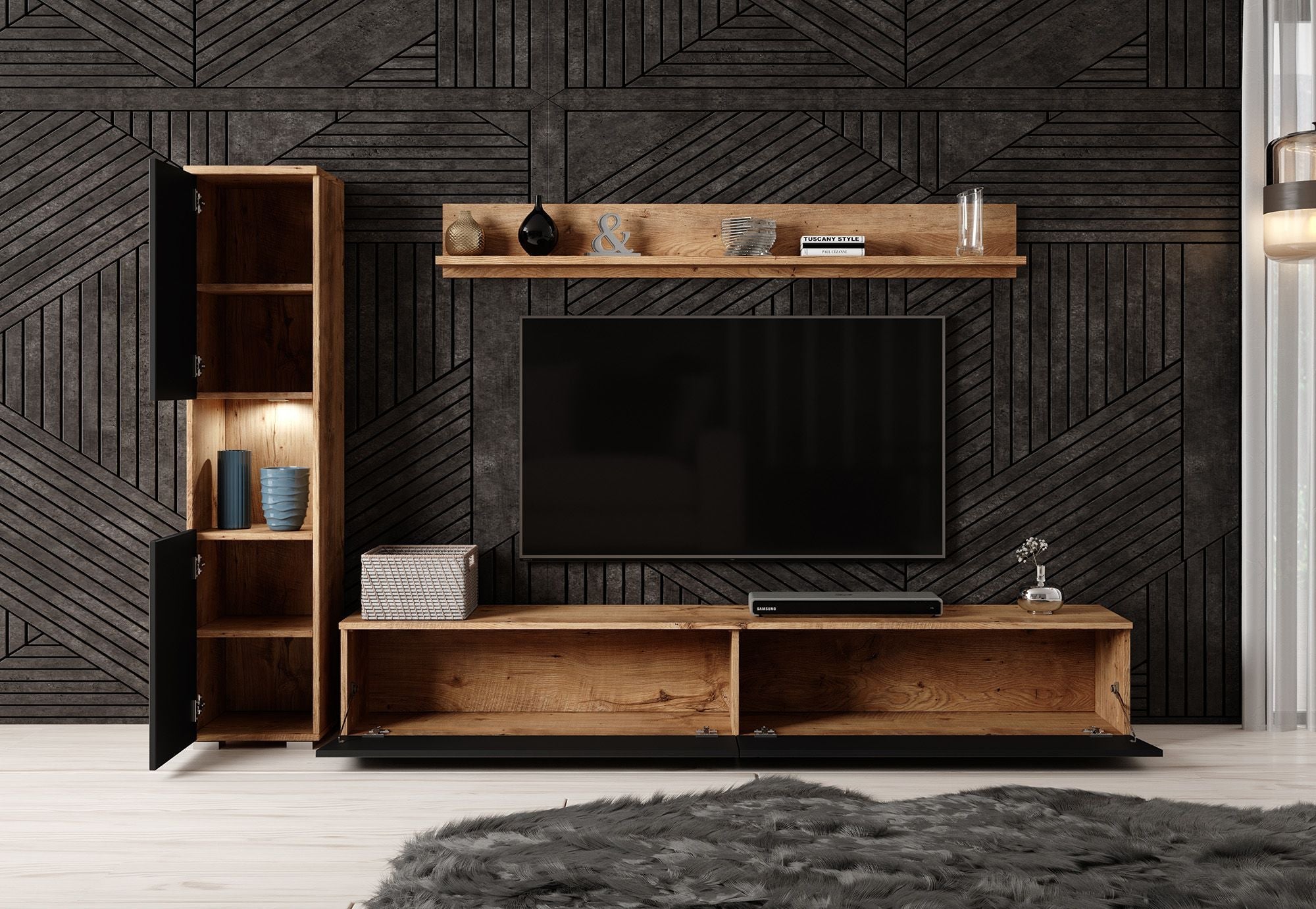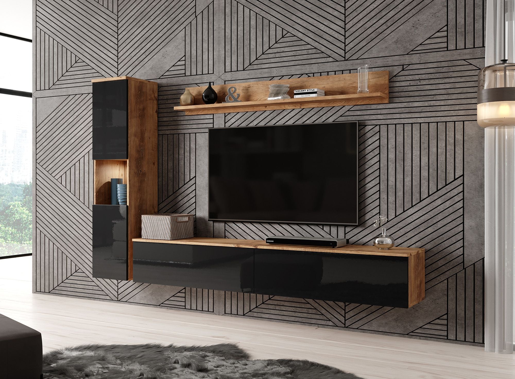Meubella - Wandmeubel Pure - Zwart - Donker eiken