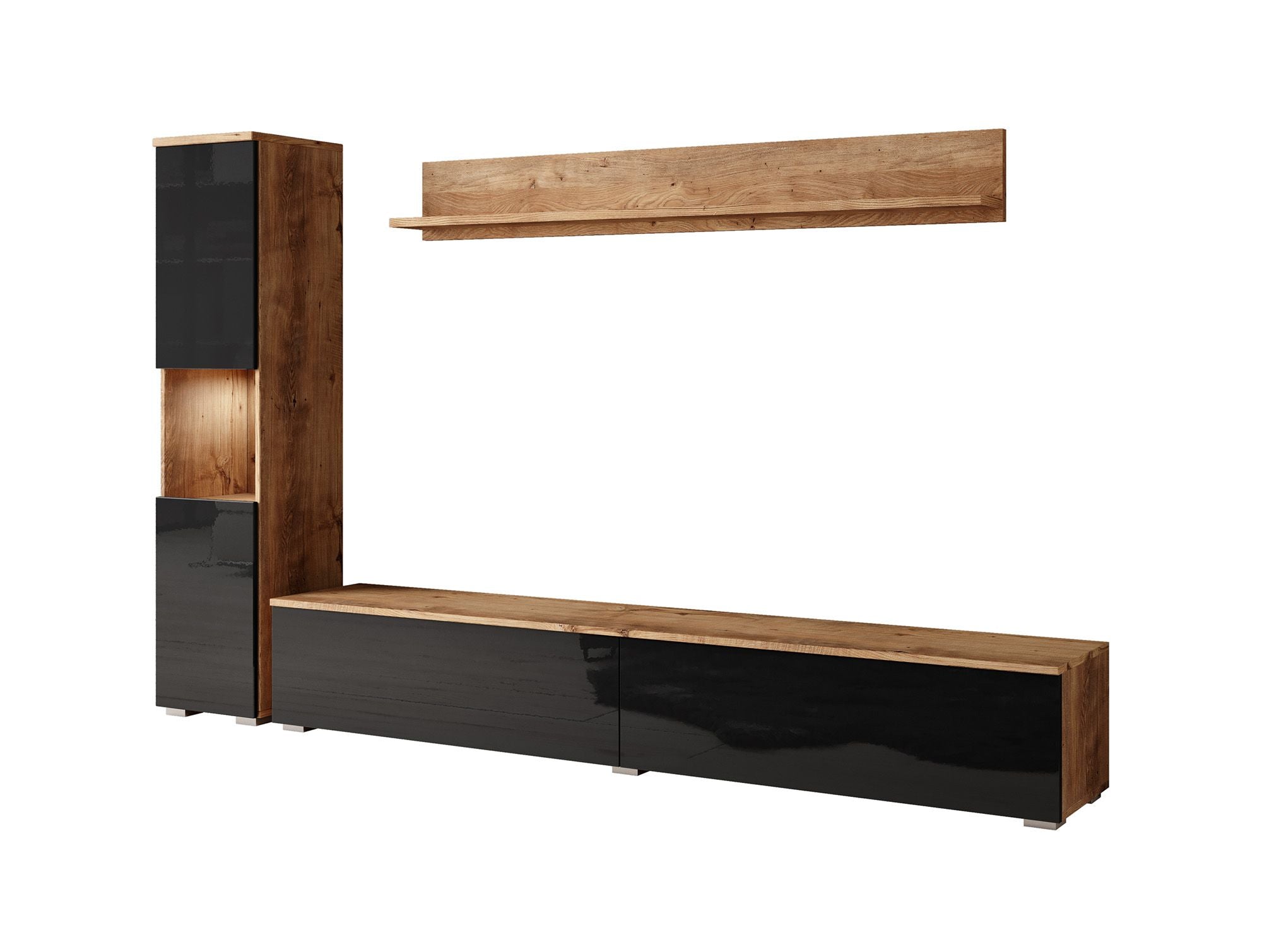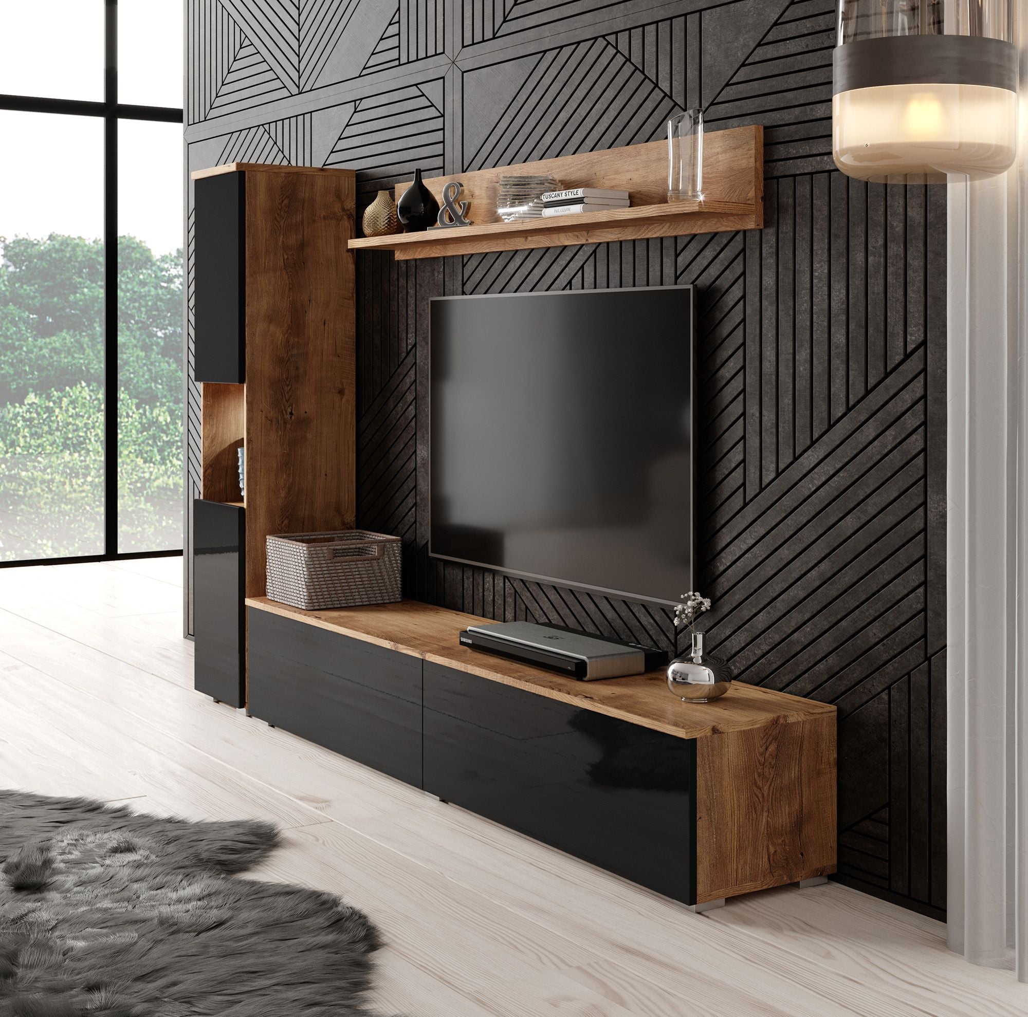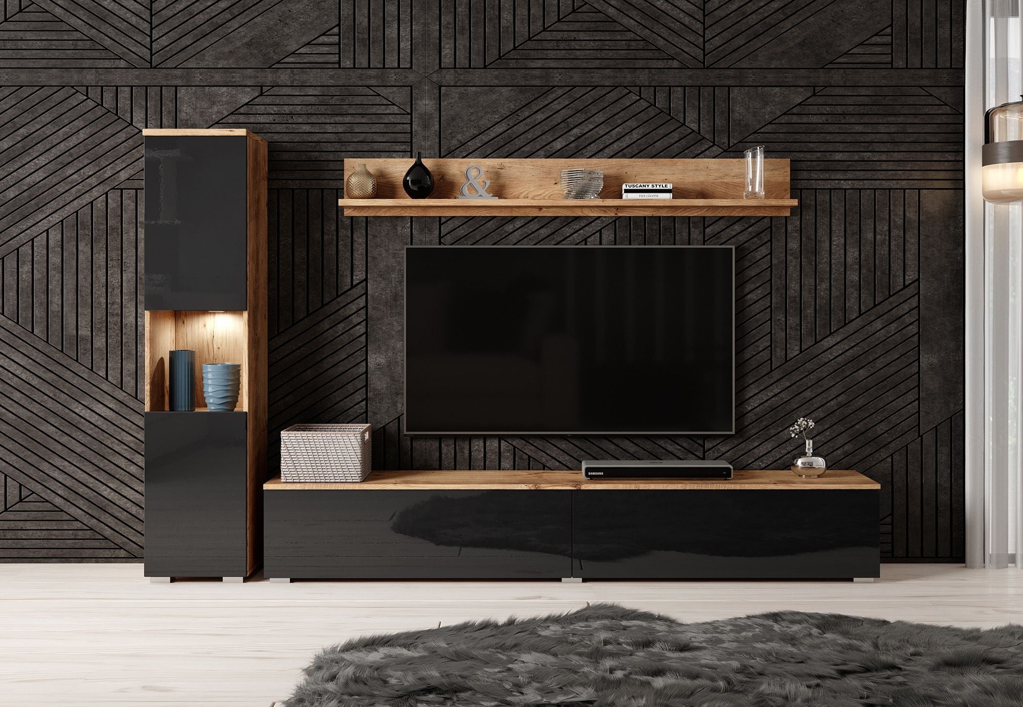 Meubella - Wandmeubel Pure - Zwart - Donker eiken