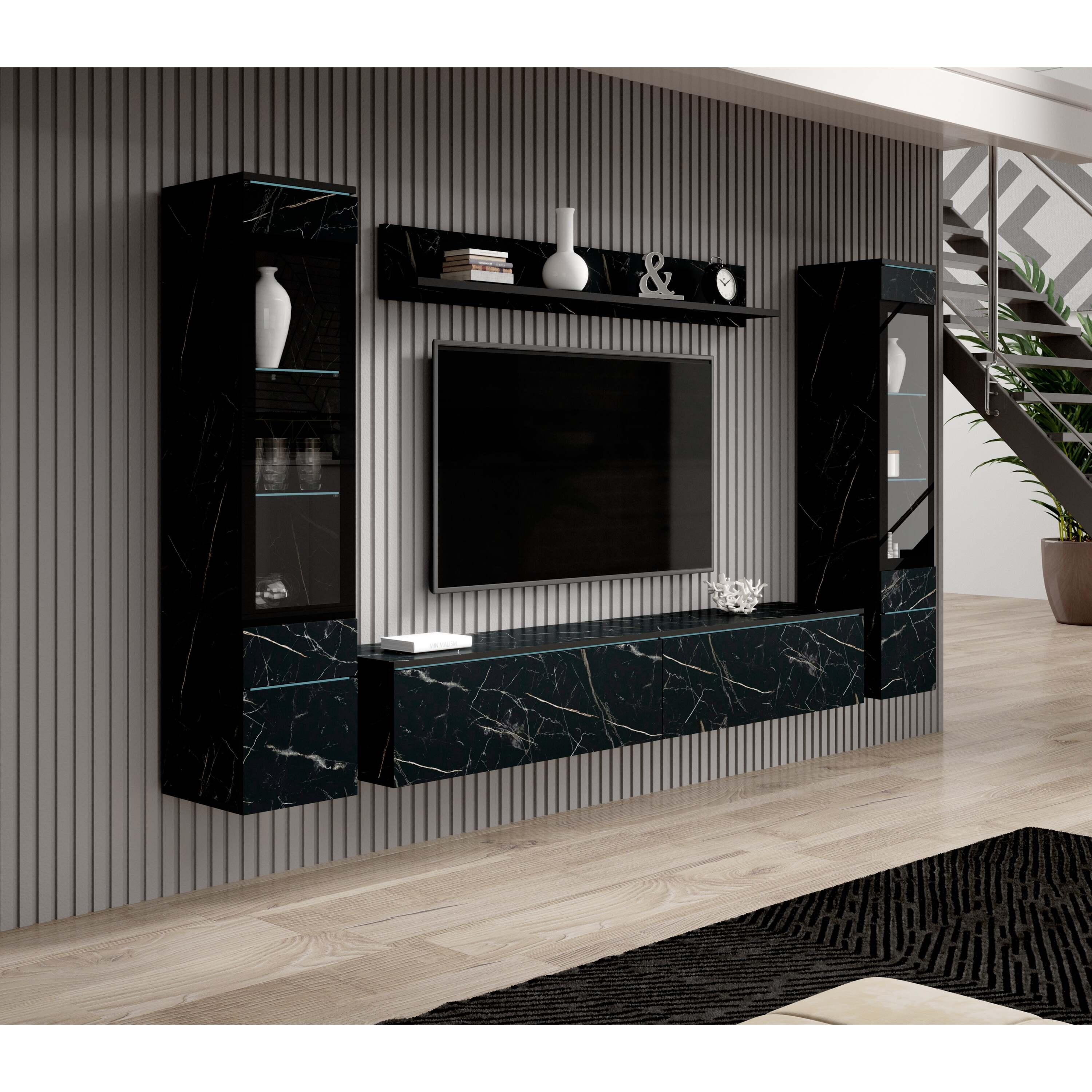Meubella - Wandmeubel Variety - Zwart - Marmerlook
