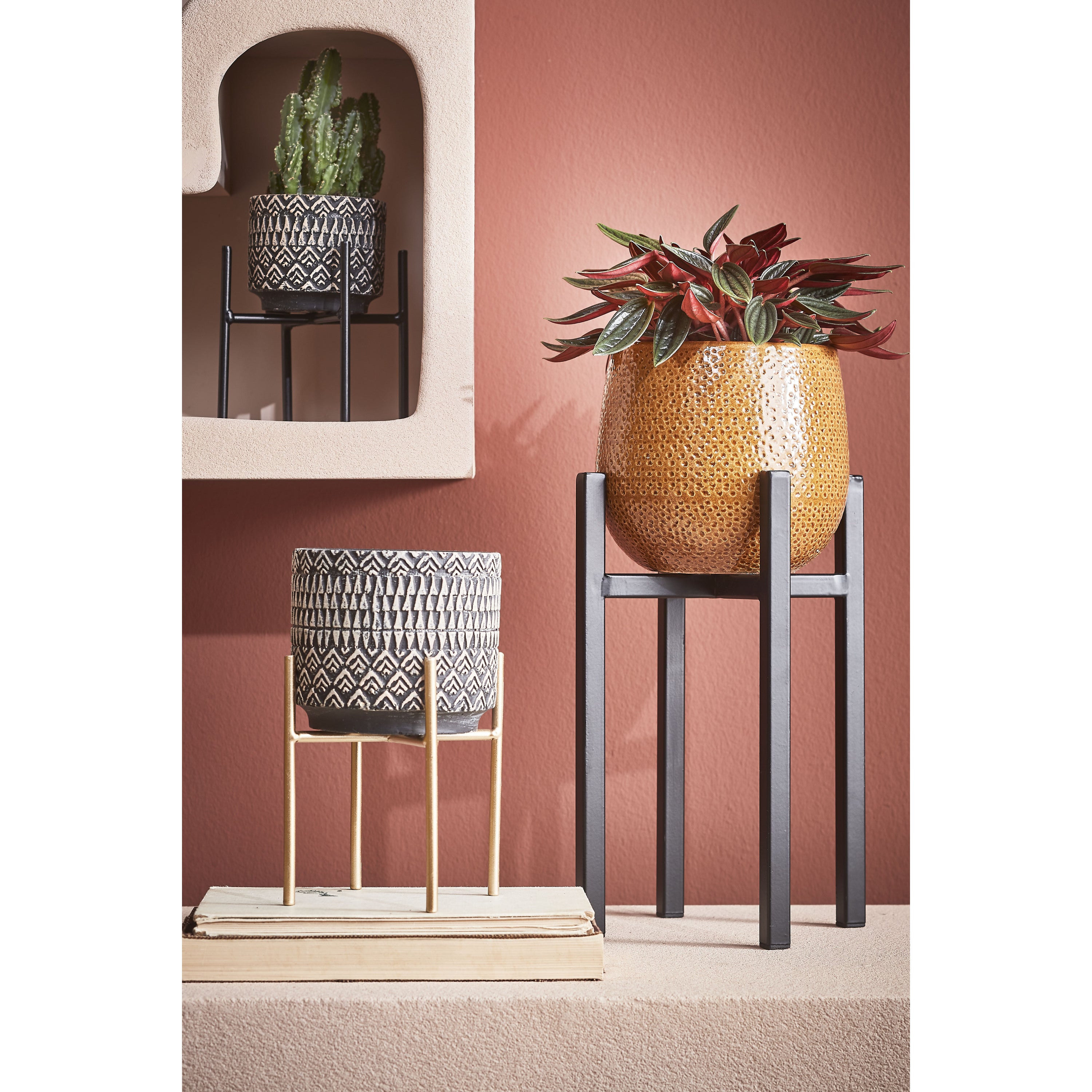 Zet jouw favoriete plant op een voetstuk met deze Ascot plantenstandaard van Mica Decorations. De standaard is gemaakt van metaal en uitgevoerd in een moderne, zwarte kleur. Dit in combinatie met het strakke design zorgt ervoor dat elke pot en plant goed tot zijn recht komen. Kies een bloempot, zet er een mooie plant in en maak het plaatje compleet! Leuk om los neer te zetten, of zet verschillende planten en standaards bij elkaar om een groene oase te creëren. De Ascot plantenstandaard is verkrijgbaar in verschillende kleuren en maten, zodat er voor iedere potmaat een passend model te vinden is. Deze zwarte standaard heeft een afmeting van L16,5 x B16,5 x H25 cm en is geschikt voor een bloempot met een diameter van maximaal 15 cm.