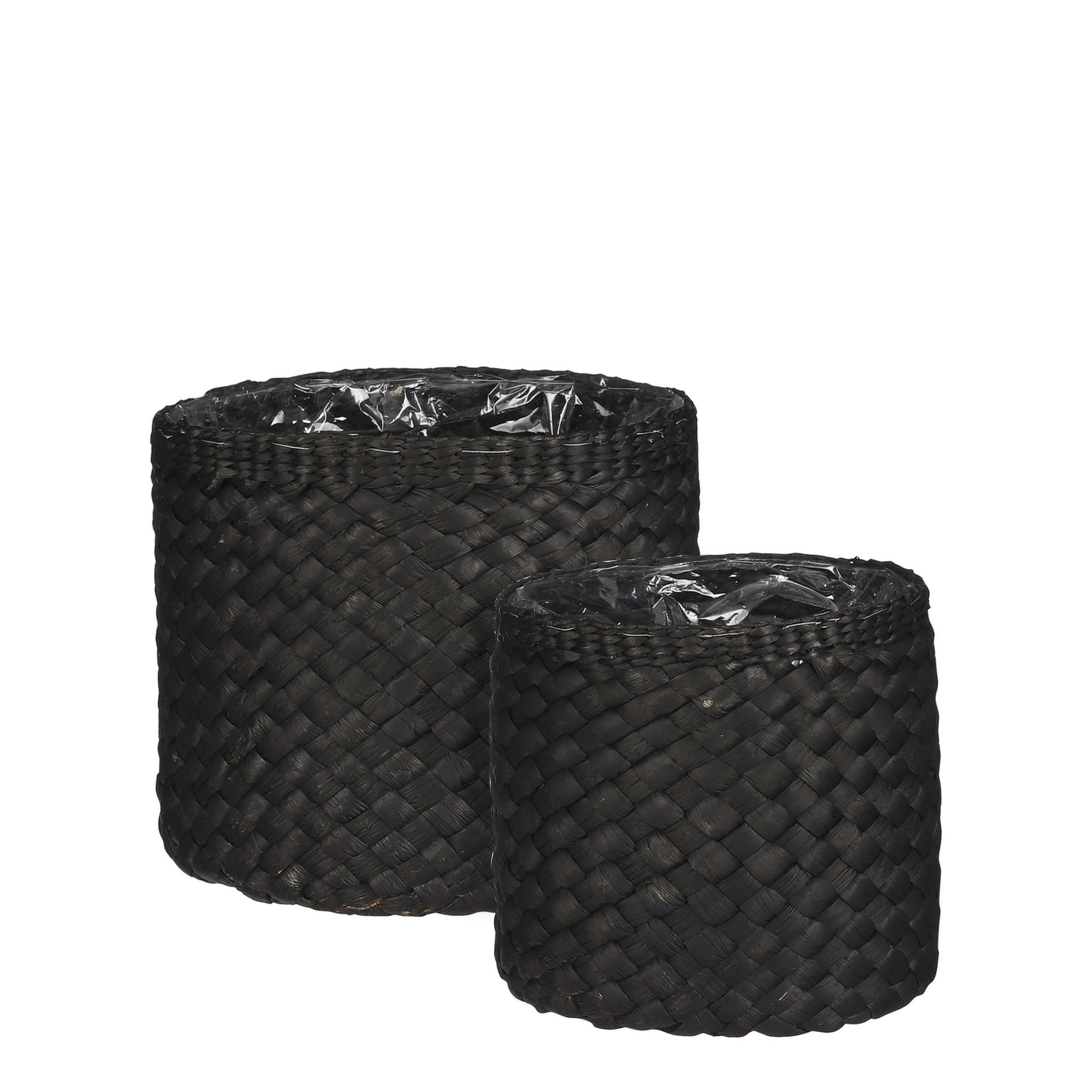 Mica Decorations Bloempot Albury - 30x30x26 cm - Water Hyacinth - Zwart- Set van 2