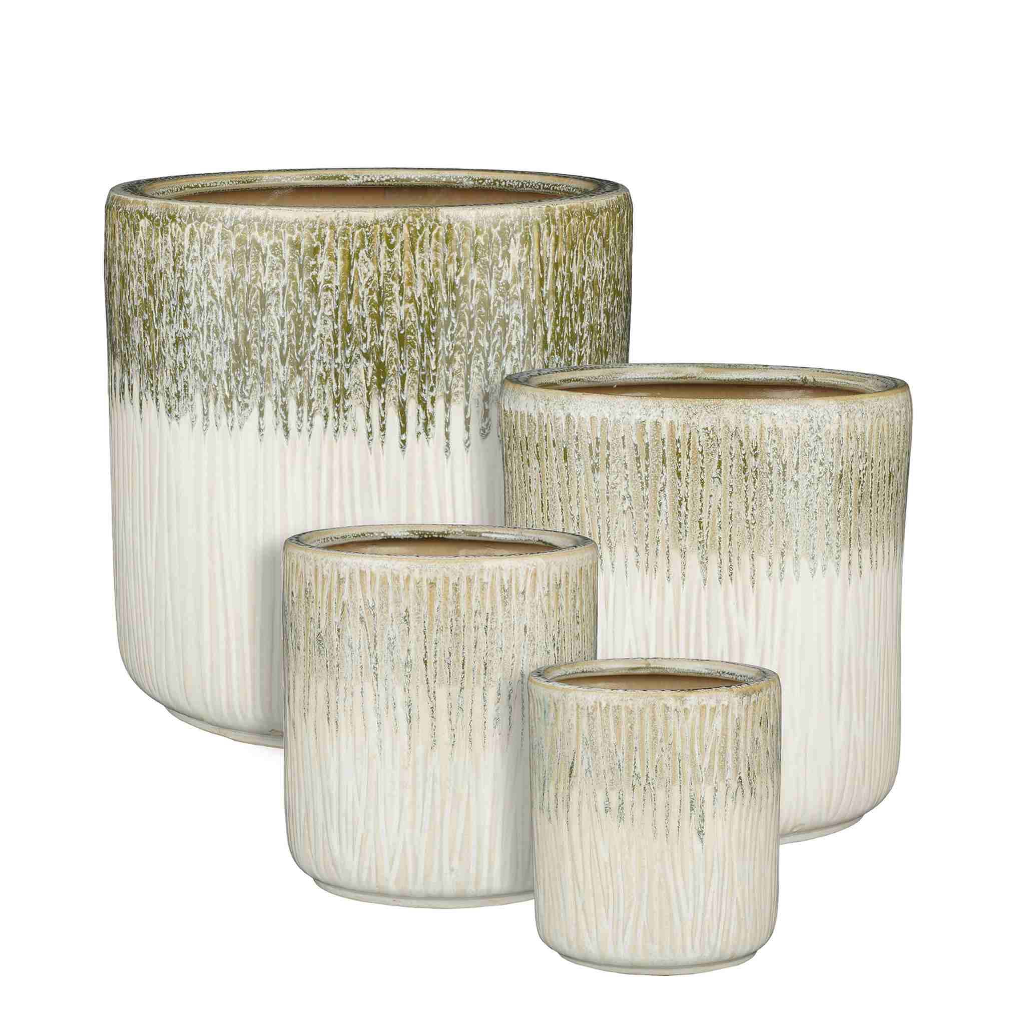 Mica Decorations Bloempot Lars - 29x29x29 cm - Keramiek - Groen- Set van 4