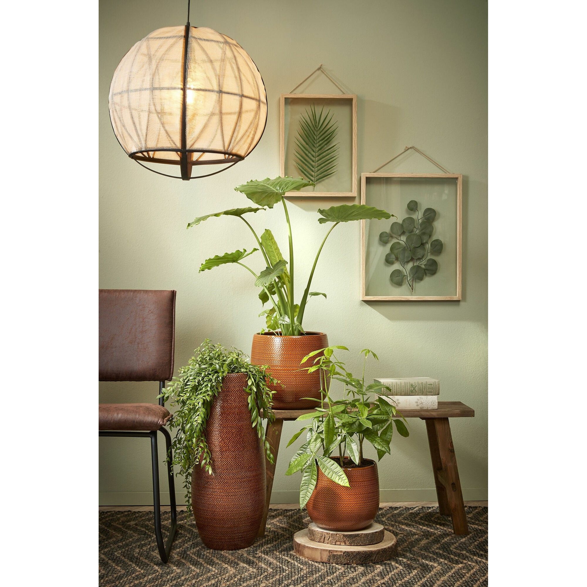 Bloempot in de kleur okergeel van een sjiek geribbeld motief keramiek voor een kamerplant H12 x D14 cm. Deze ronde bloempot uit de Gabriel serie met schitterende afwerking geeft een boost aan uw interieur. Gemaakt van terracotta/keramiek. Diameter: 14 cm. Hoogte: 12 cm.