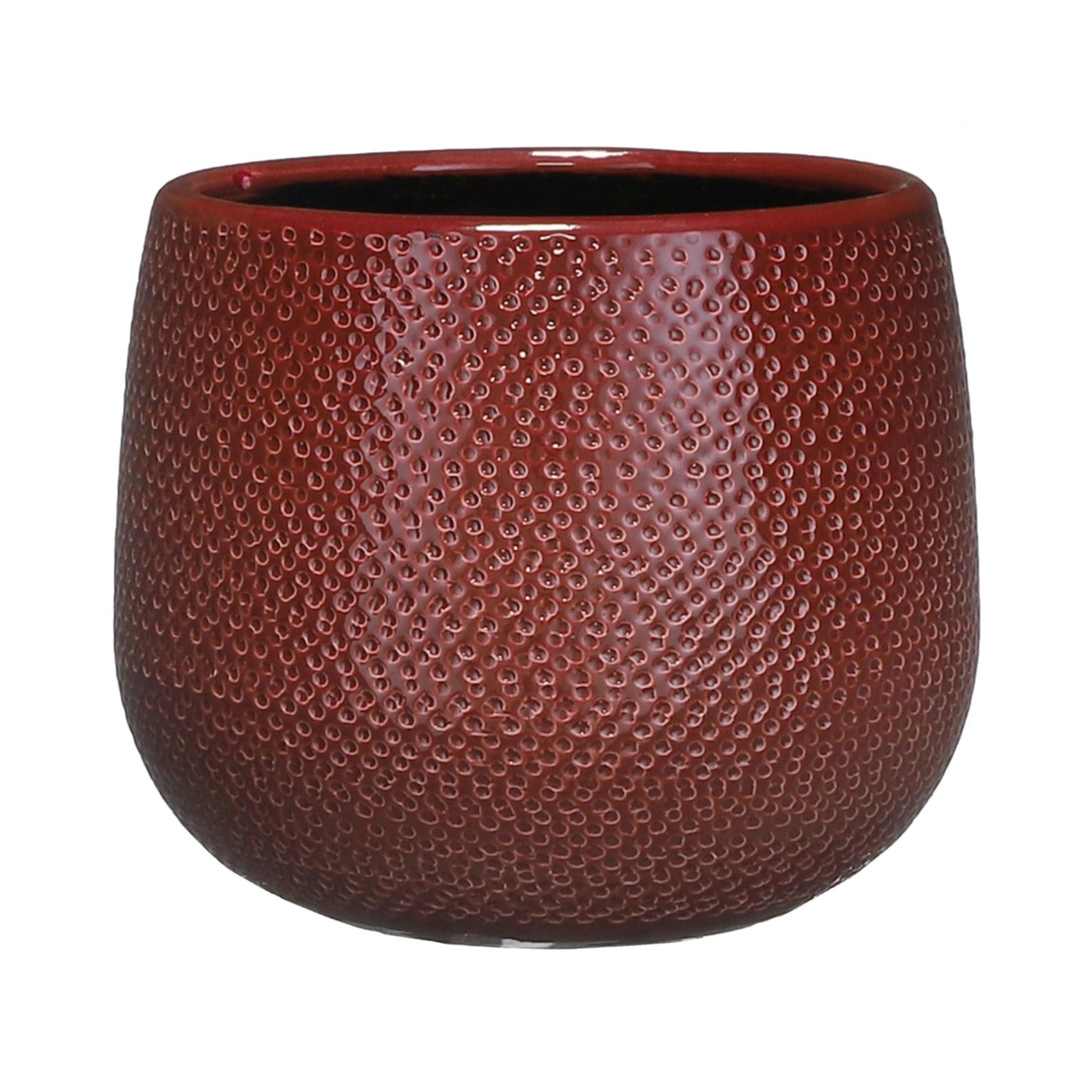 Bloempot in de kleur bordeaux rood van een sjiek geribbeld motief keramiek voor een kamerplant H16 x D18 cm. Deze ronde bloempot uit de Gabriel serie met schitterende afwerking geeft een boost aan uw interieur. Gemaakt van terracotta/keramiek. Diameter: 18 cm. Hoogte: 16 cm.