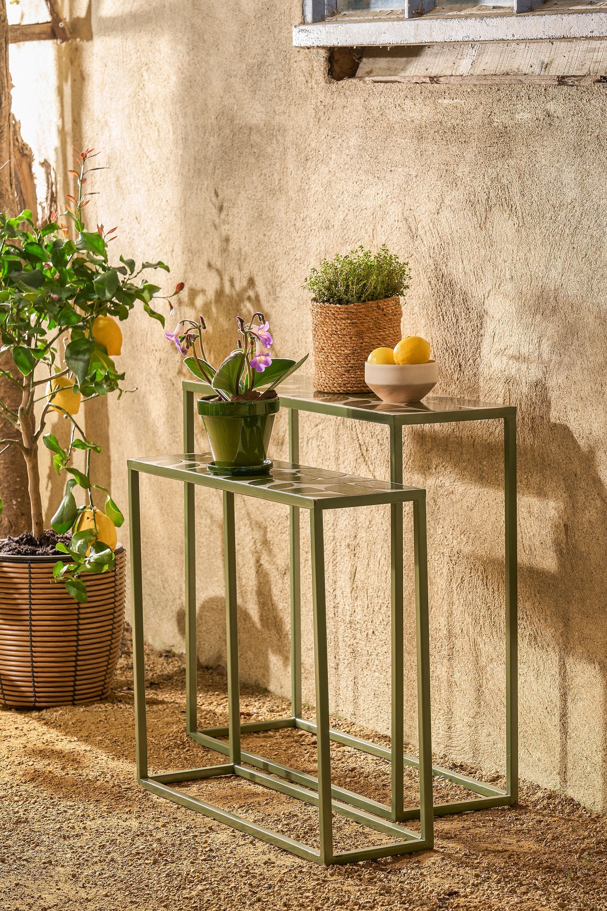 - Perfect te gebruiken als decoratieve tafels voor buiten of onder een overkapping
