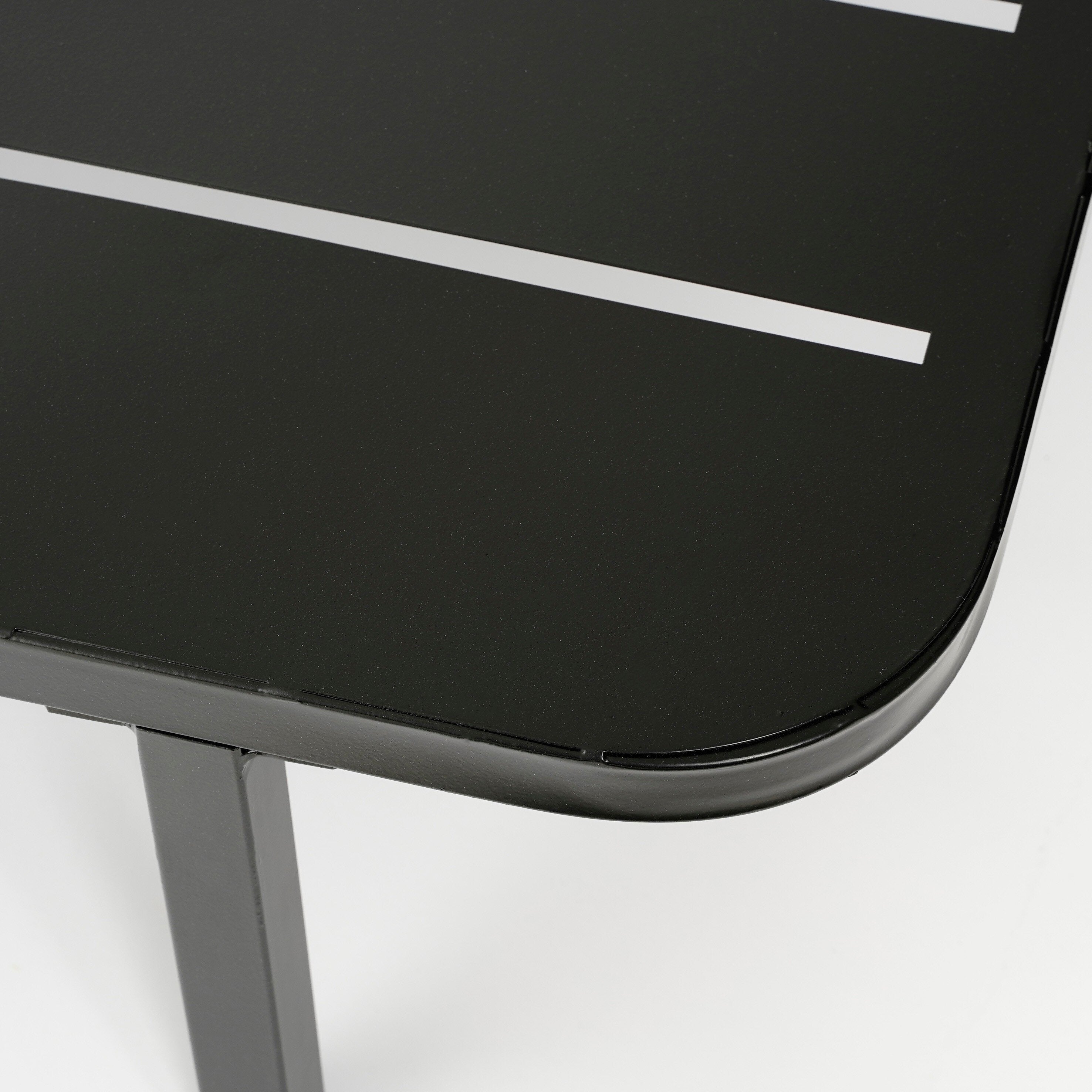 Stijlvolle hocker gemaakt van zwart metaal om je tuin een modern tintje te geven. De zwarte loungetafel voor buiten is 80 cm lang, 80 cm breed en 23 cm hoog.