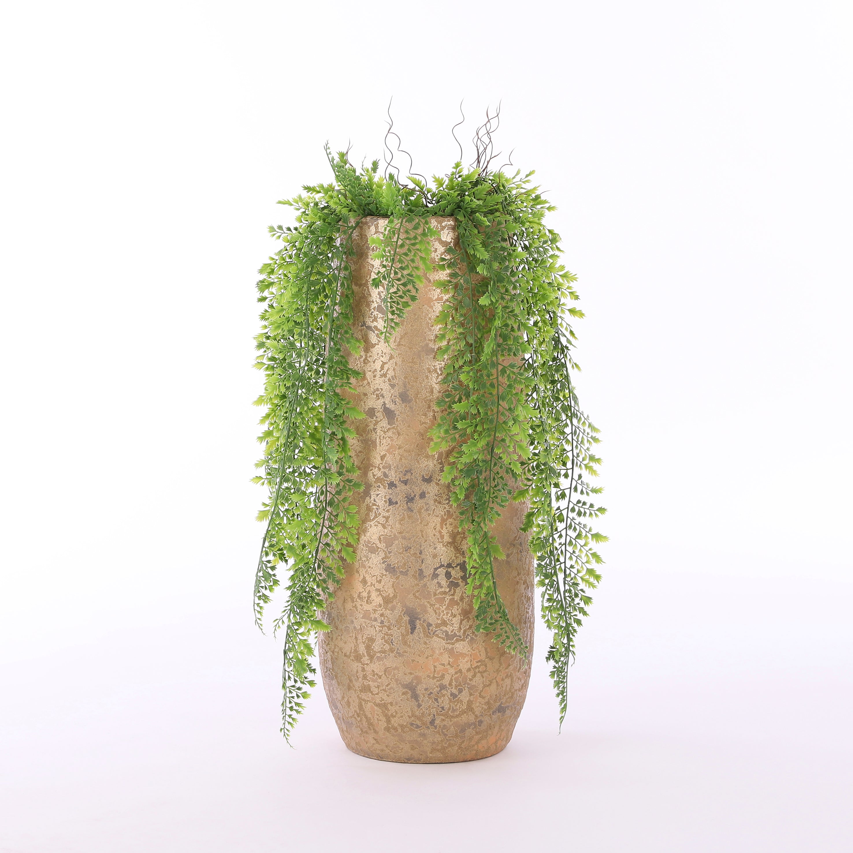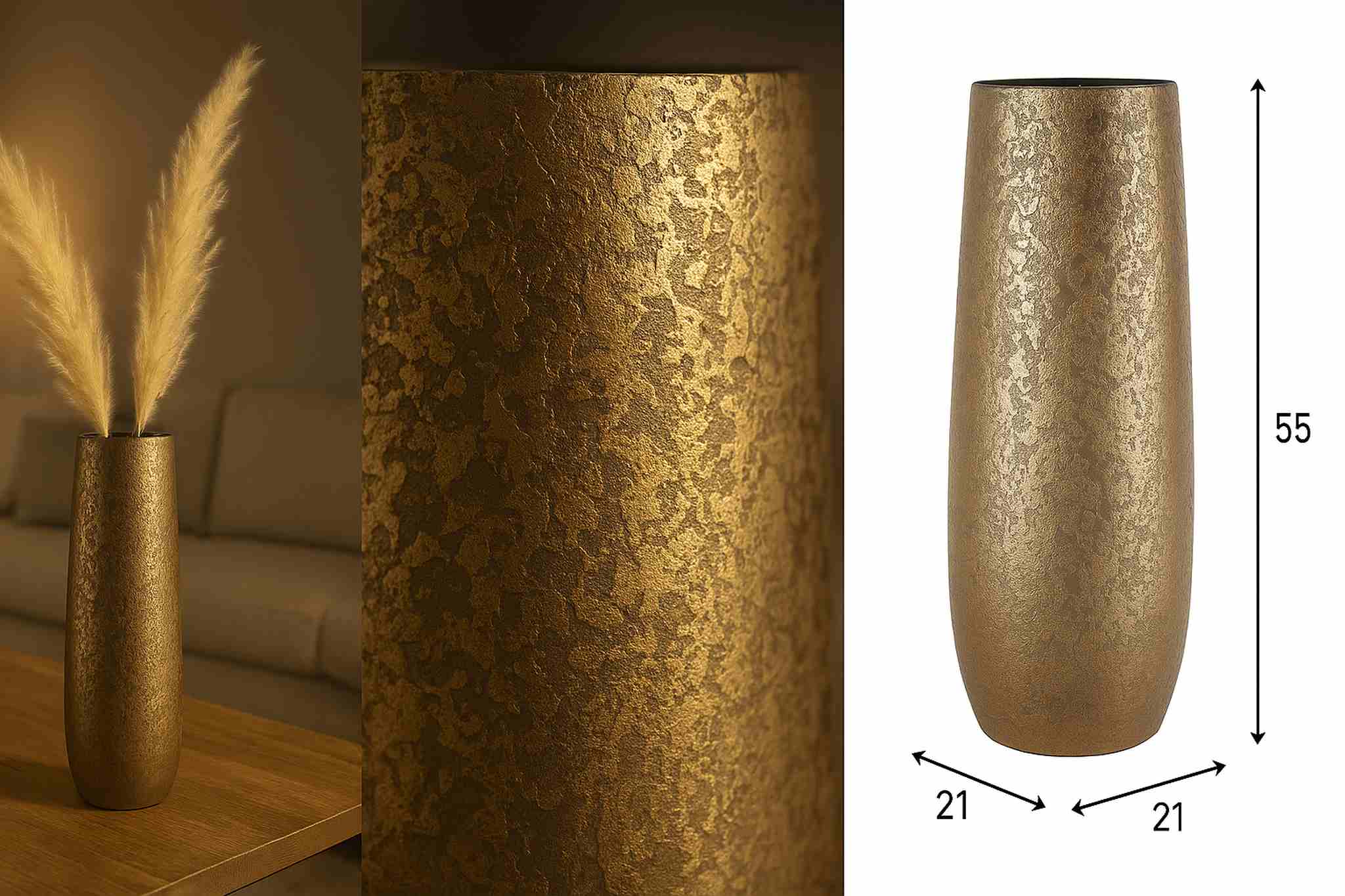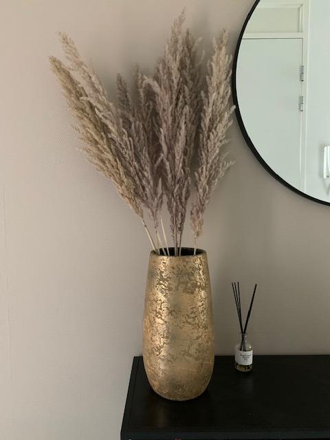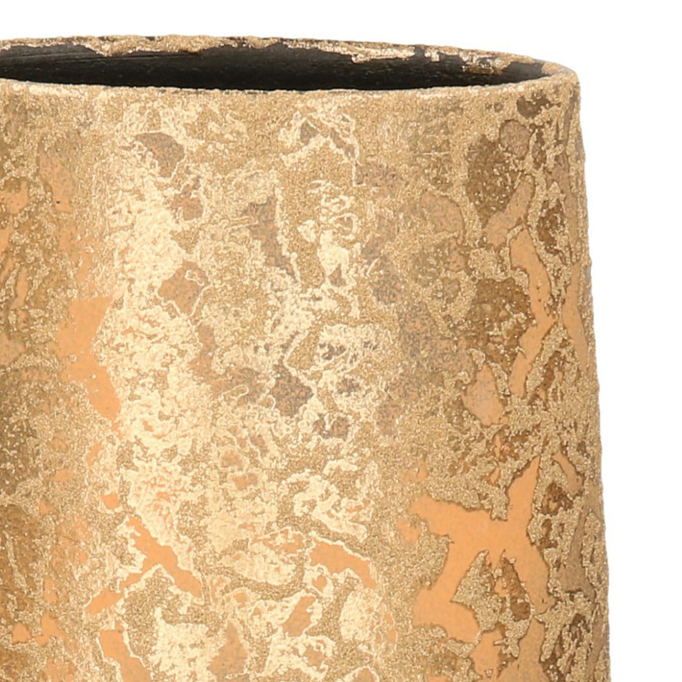 Breng wat luxe in huis met vaas Clemente van Mica Decorations. De vaas heeft een unieke gouden finish, vervaardigd door authentieke Portugese pottenbakkers. De vaas wordt namelijk geheel met de hand gevormd en afgewerkt. Hierdoor heeft iedere vaas een eigen uitstraling. Bijzonder genoeg om zo neer te zetten, maar ook erg leuk met wat bloemen erin. Serie Clemente omvat naast vazen ook schalen en potten in verschillende kleuren en maten. Deze goudkleurige vaas is 55 cm hoog en heeft een diameter van 21,5 cm. De opening heeft een diameter van 15 cm.