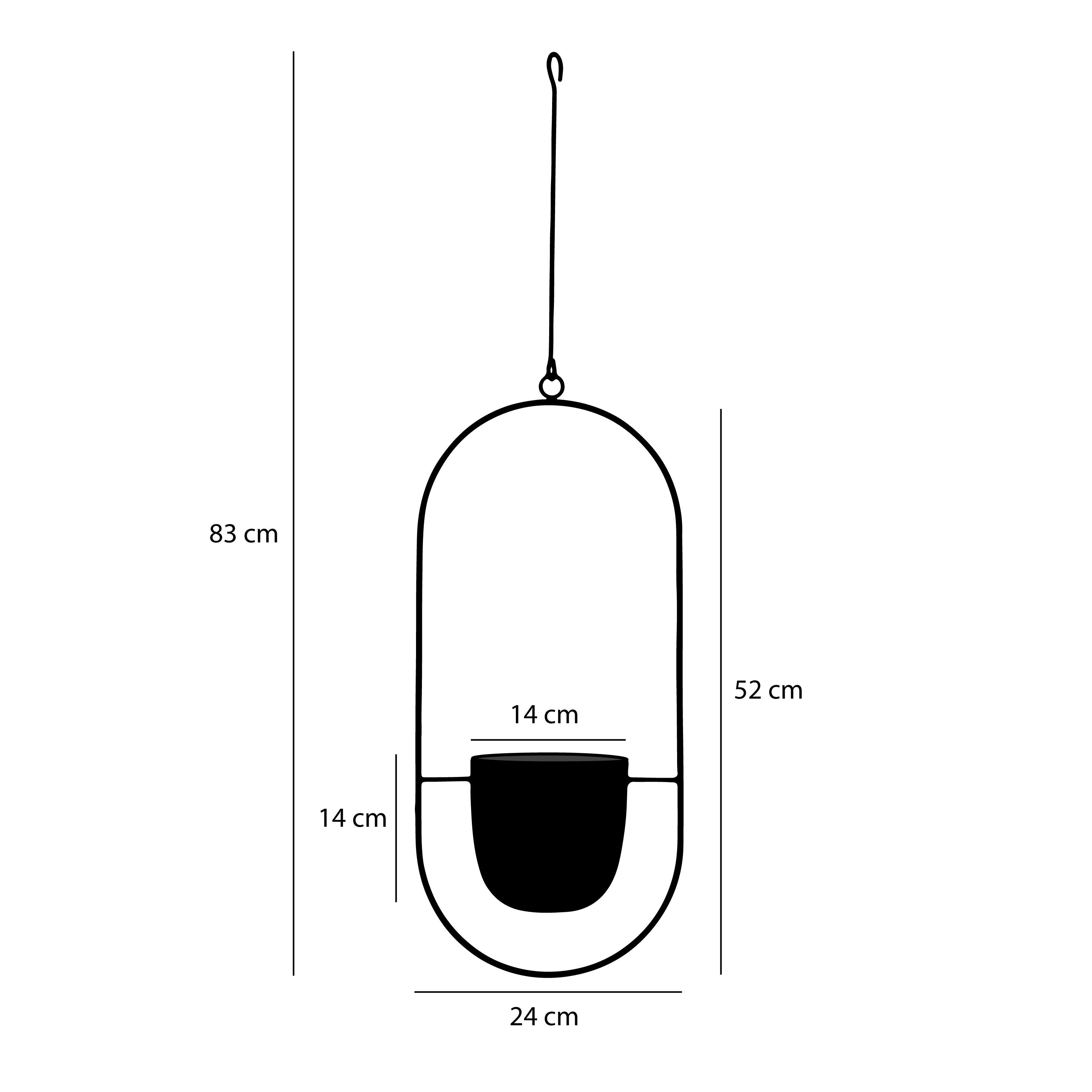 Met de Dexter hangende bloempot van Mica Decorations geef je jouw plant een ereplekje in huis. Je hangt hem namelijk aan het plafond! De pot is gemaakt van metaal en geeft jouw interieur een industriële touch. Het moderne design heeft een stoere, zwarte kleur, waardoor het groen van een plant nog mooier naar voren komt. Daar moet je wel naar kijken! De afmetingen zijn L24 x B14 x H83 cm.