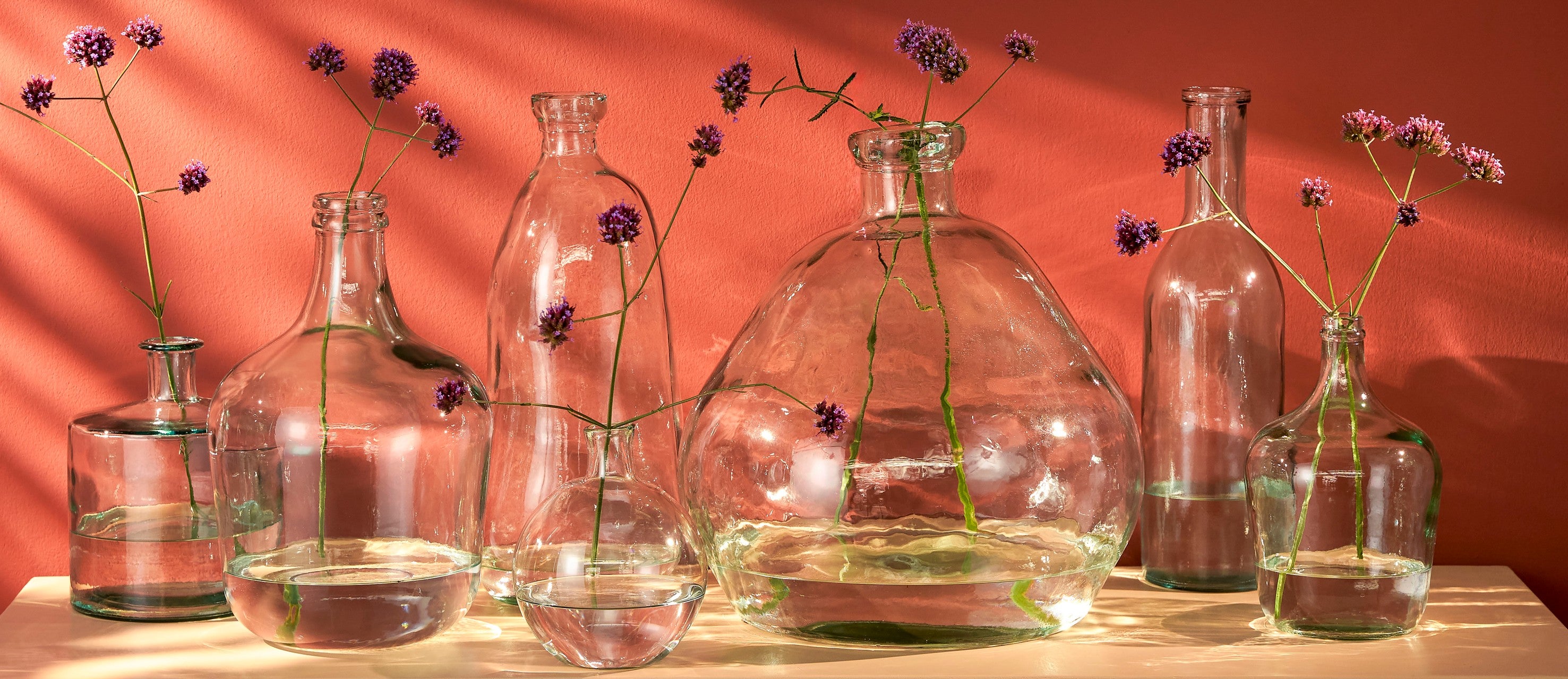- Glazen fles met een afmeting van H30 x Ø18 cm