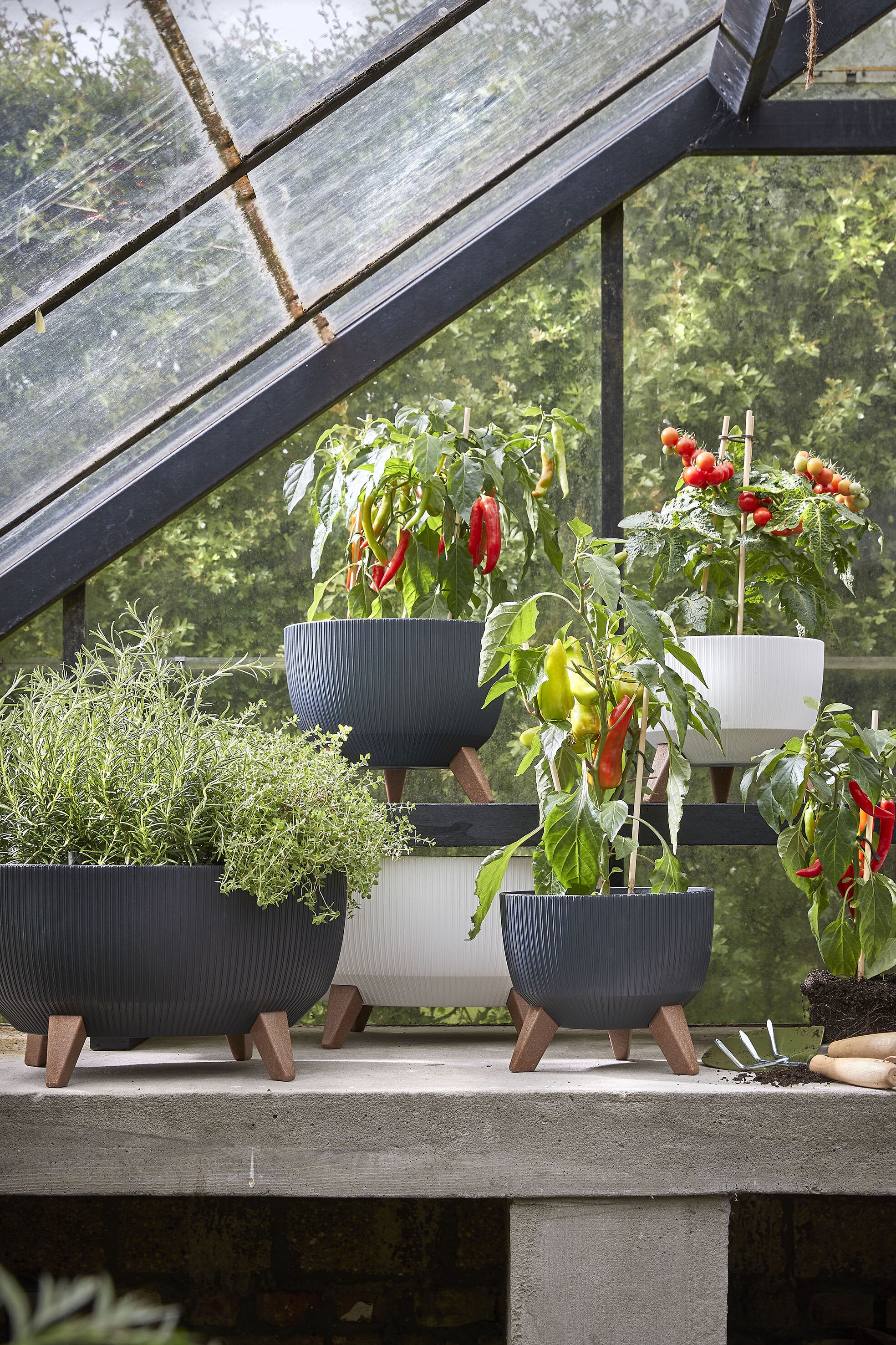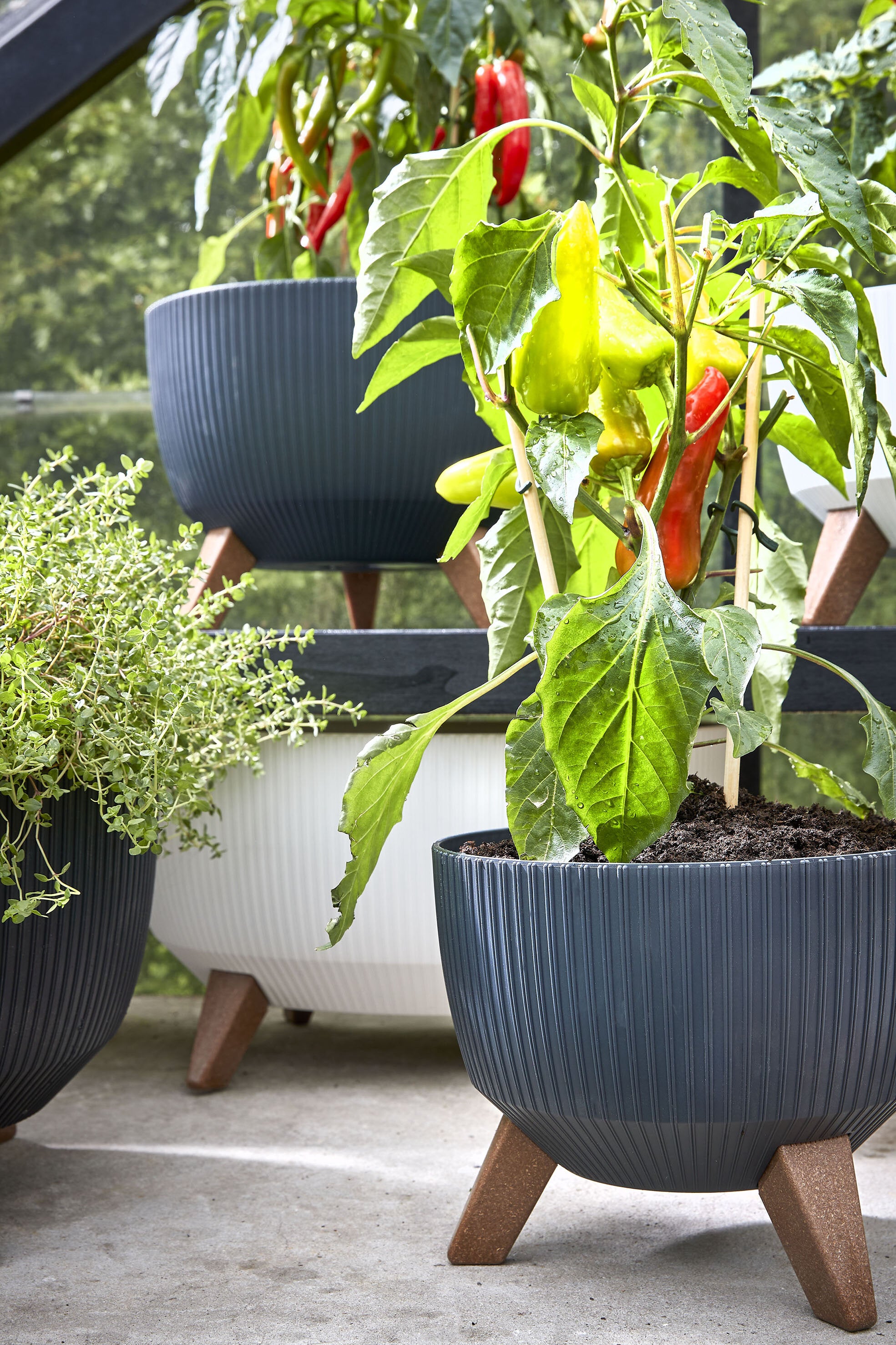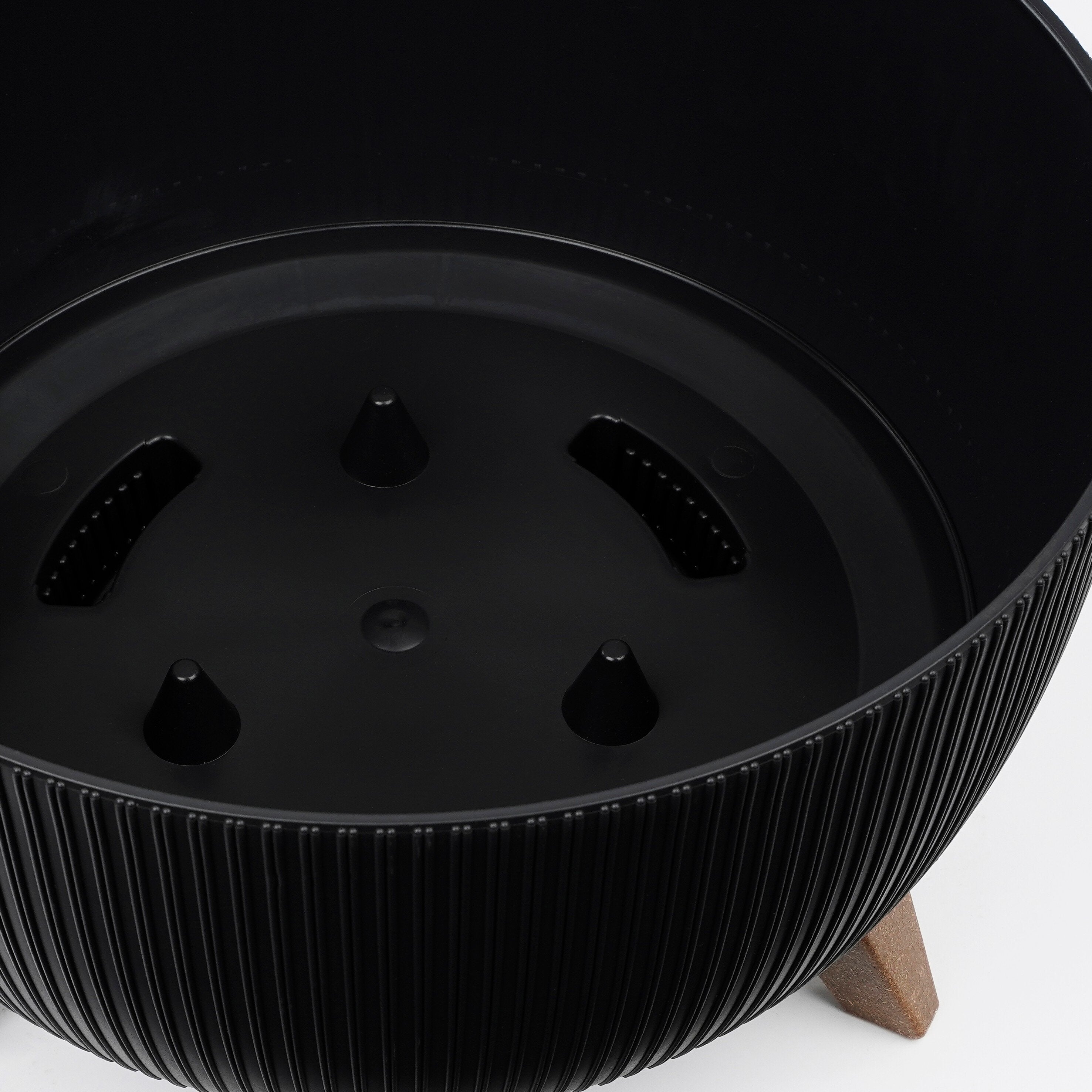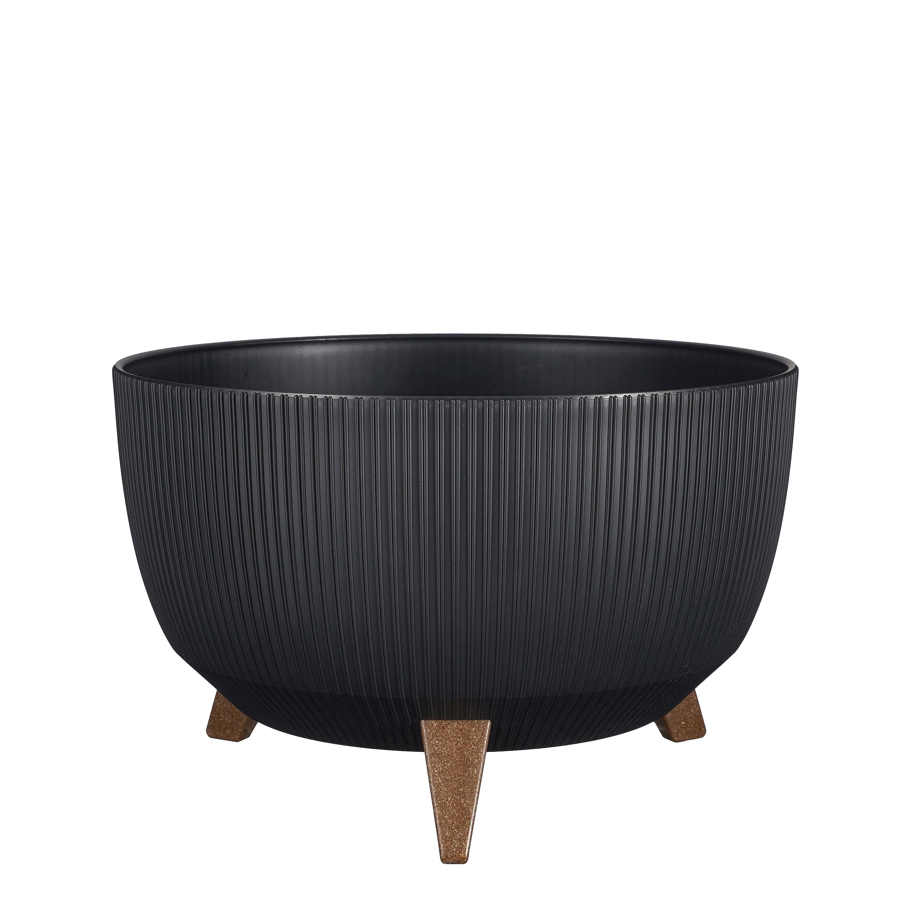 Moderne schaal op poten voor al je mooiste planten. De zwarte bloempot op pootjes is gemaakt van gerecycled plastic en is 20,5 cm hoog en heeft een diameter van 40 cm.
