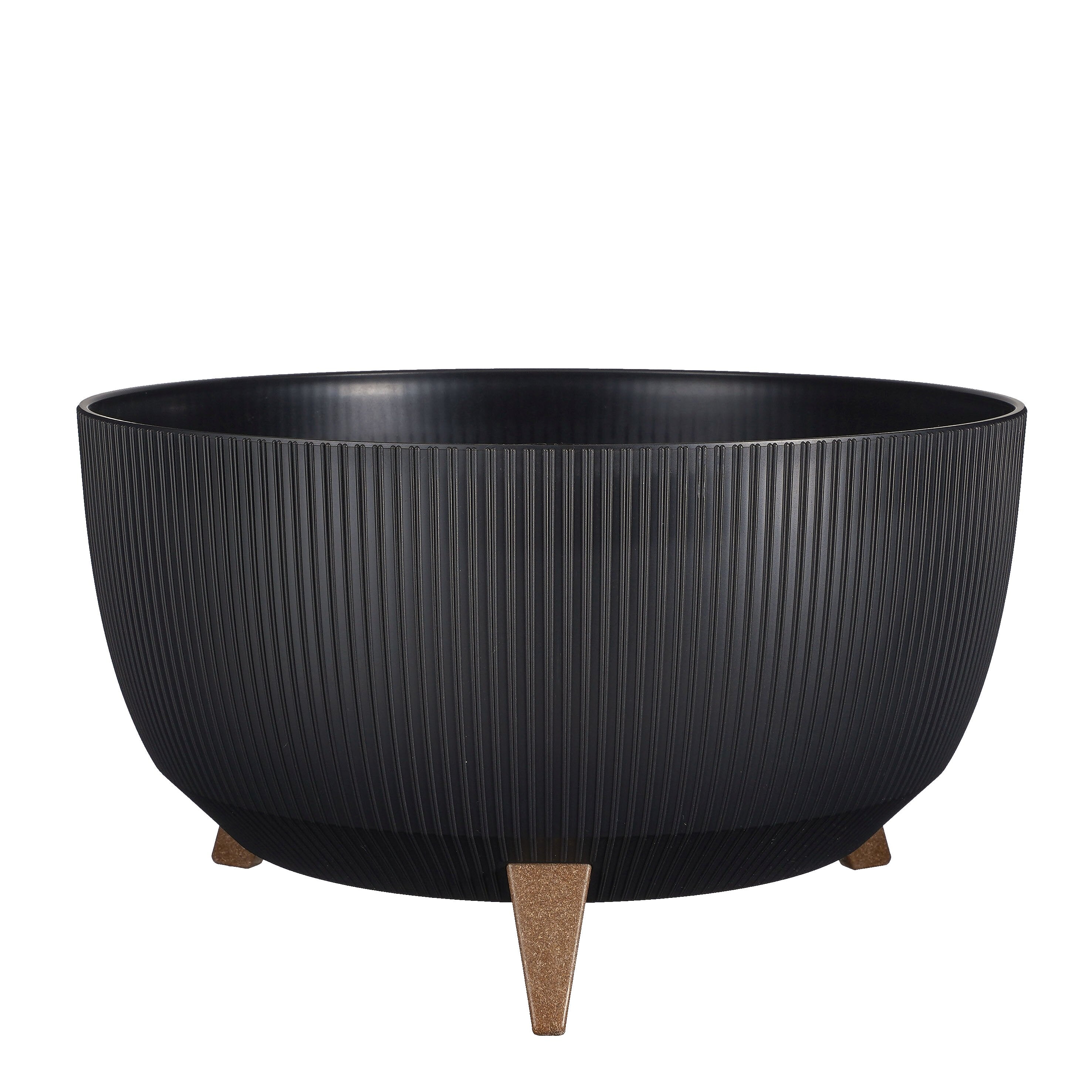 Moderne schaal op poten voor al je mooiste planten. De zwarte bloempot op pootjes is gemaakt van gerecycled plastic en is 22 cm hoog en heeft een diameter van 47 cm.