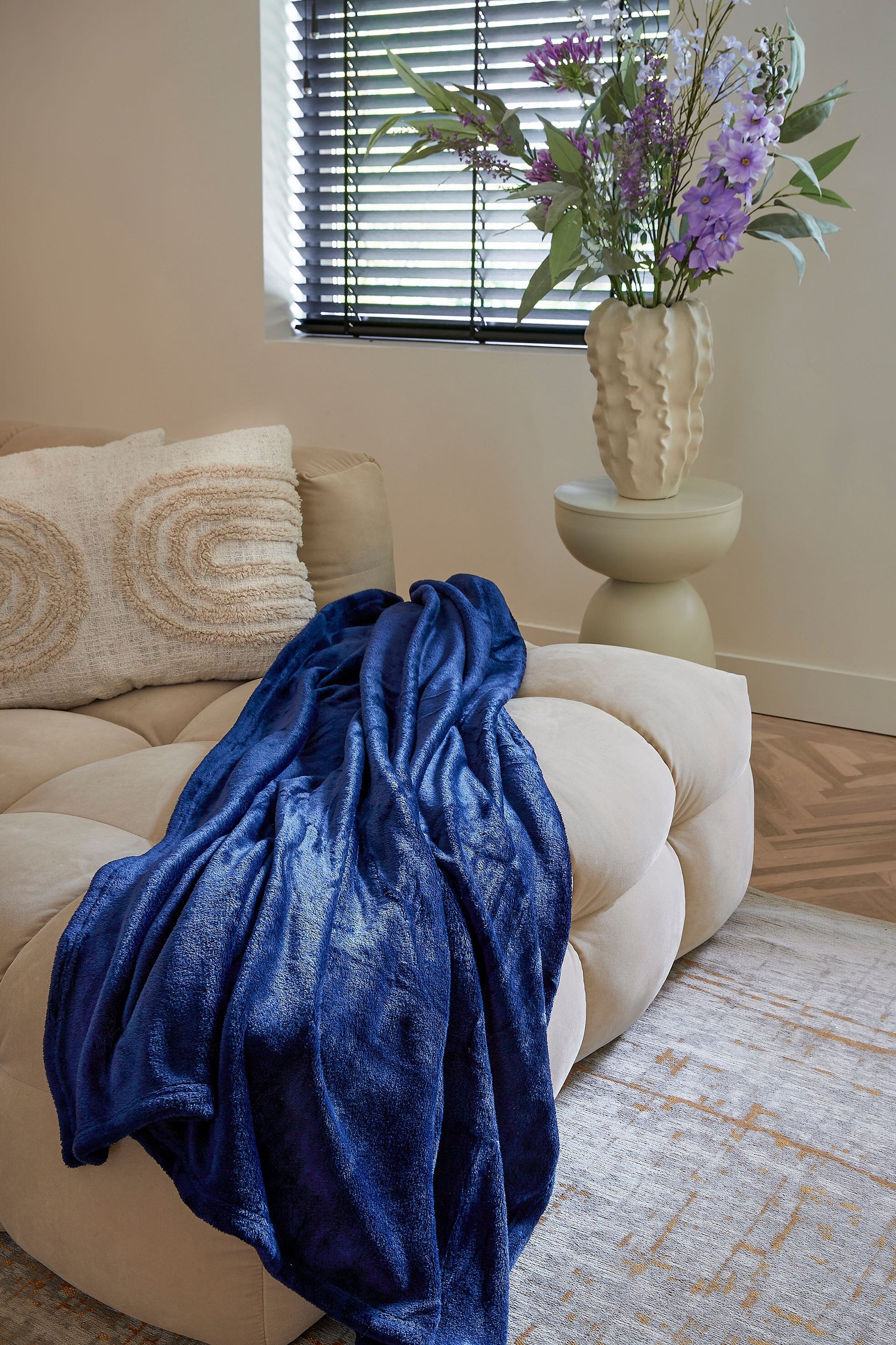 Mica Decorations Famke Fleece Plaid - 180 x 130 cm - Donkerblauw