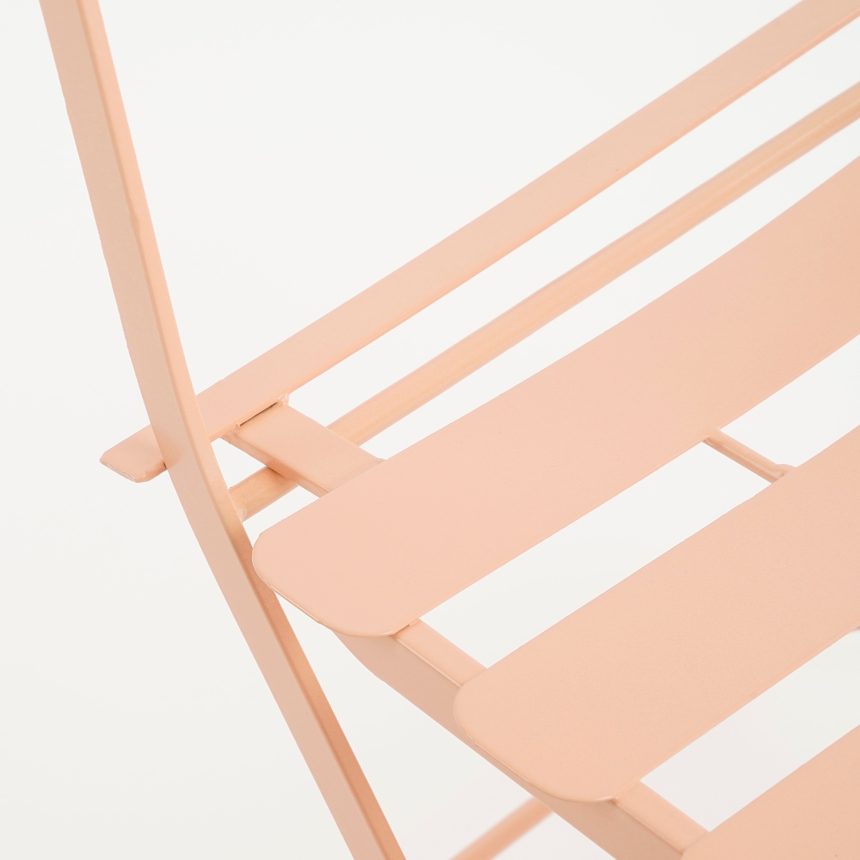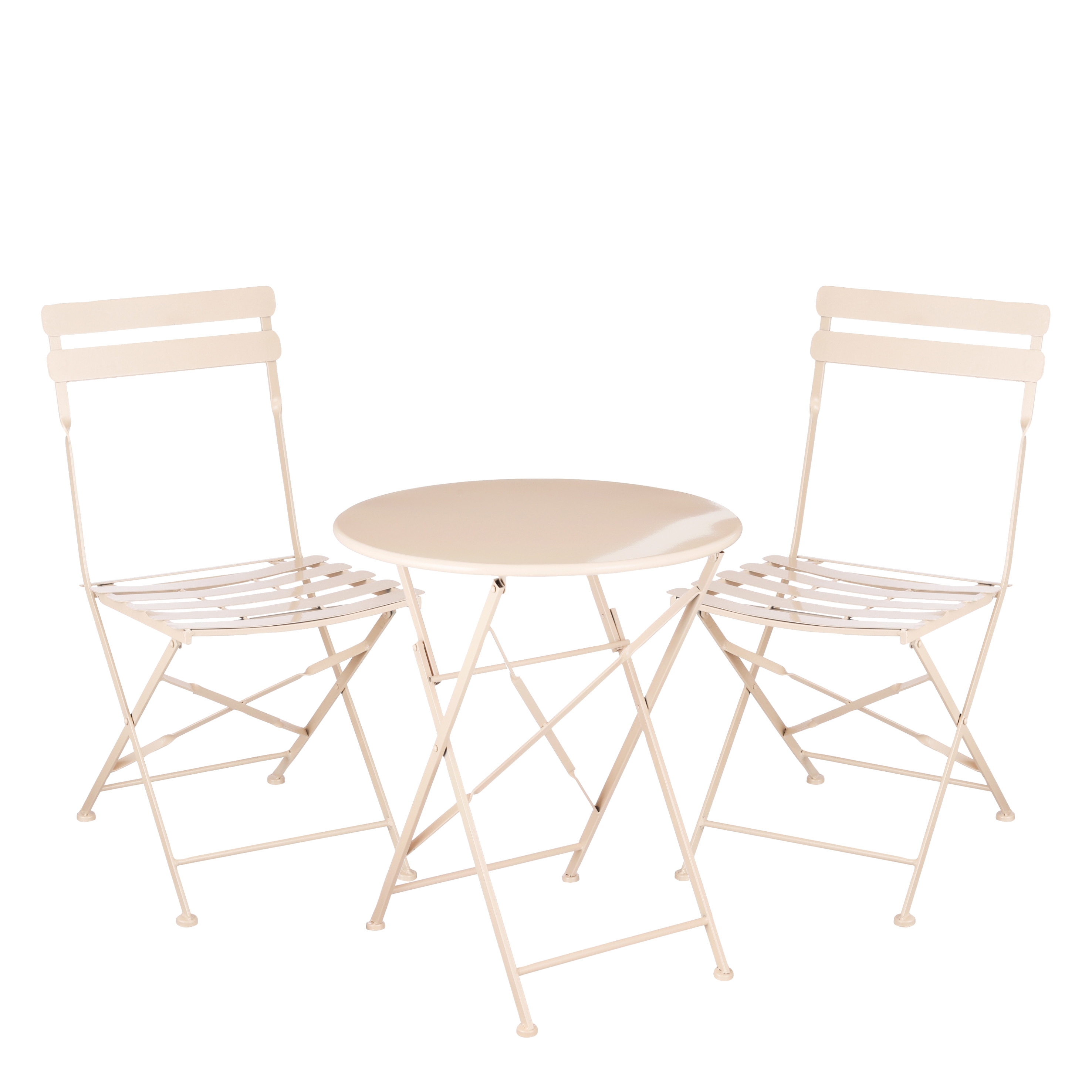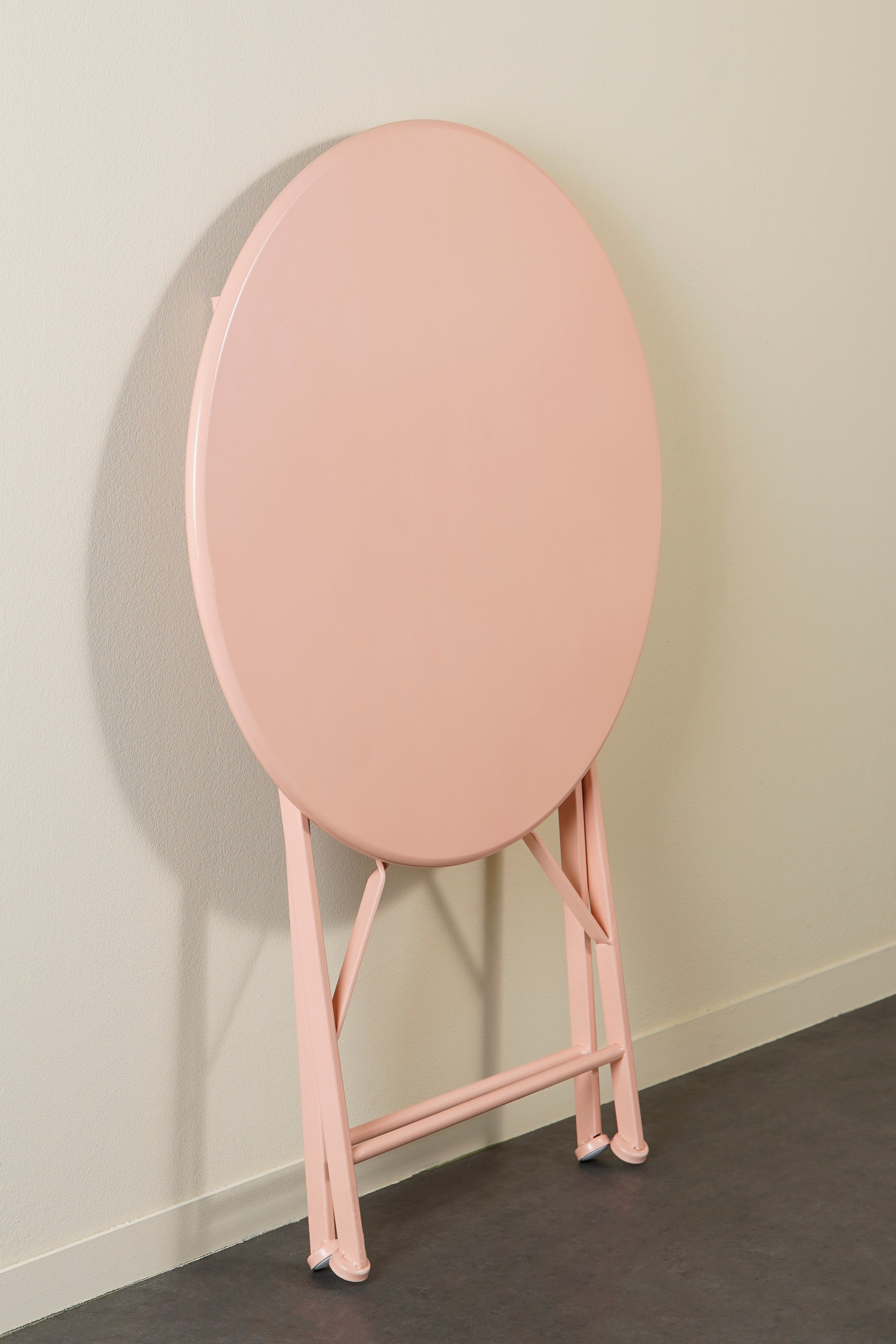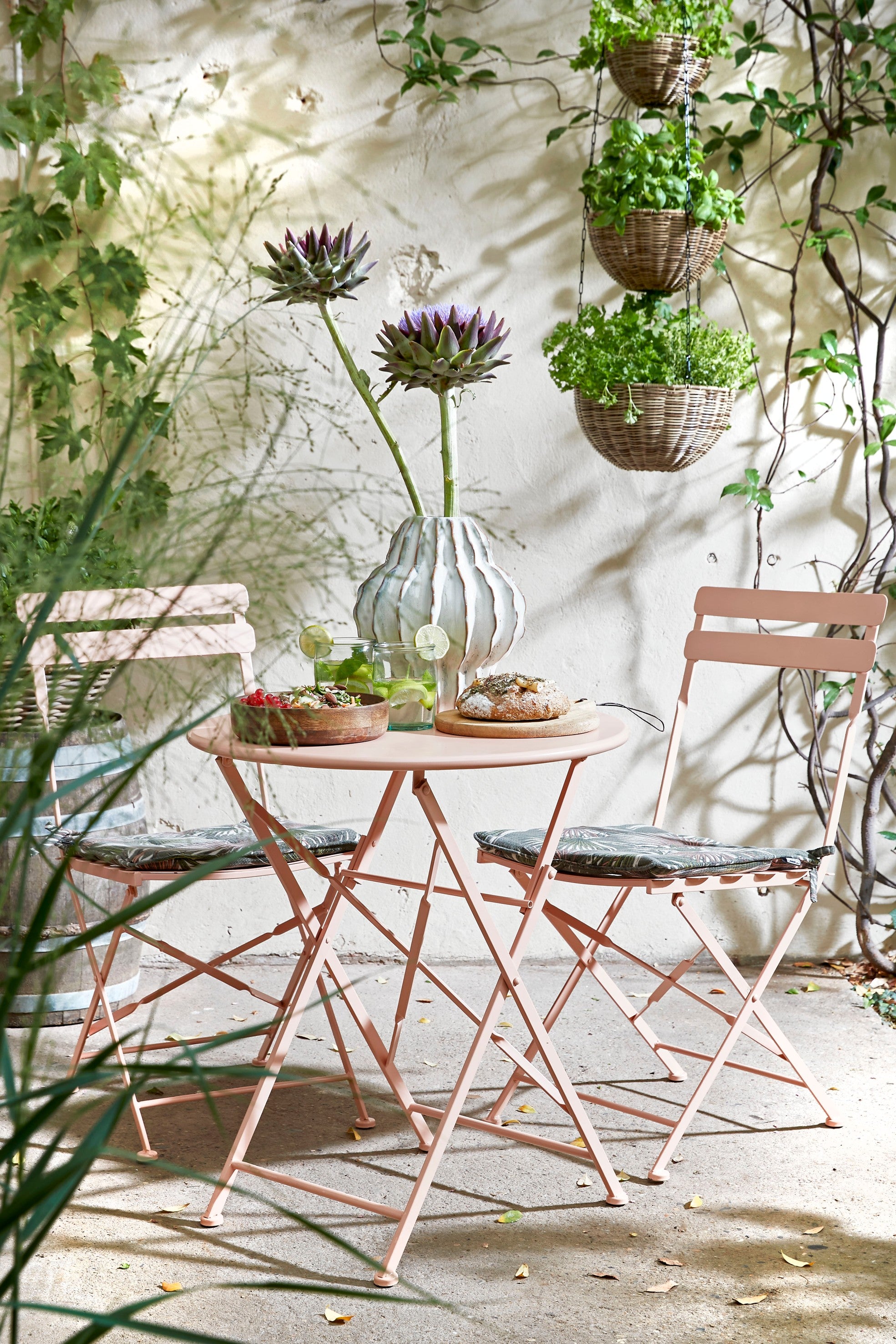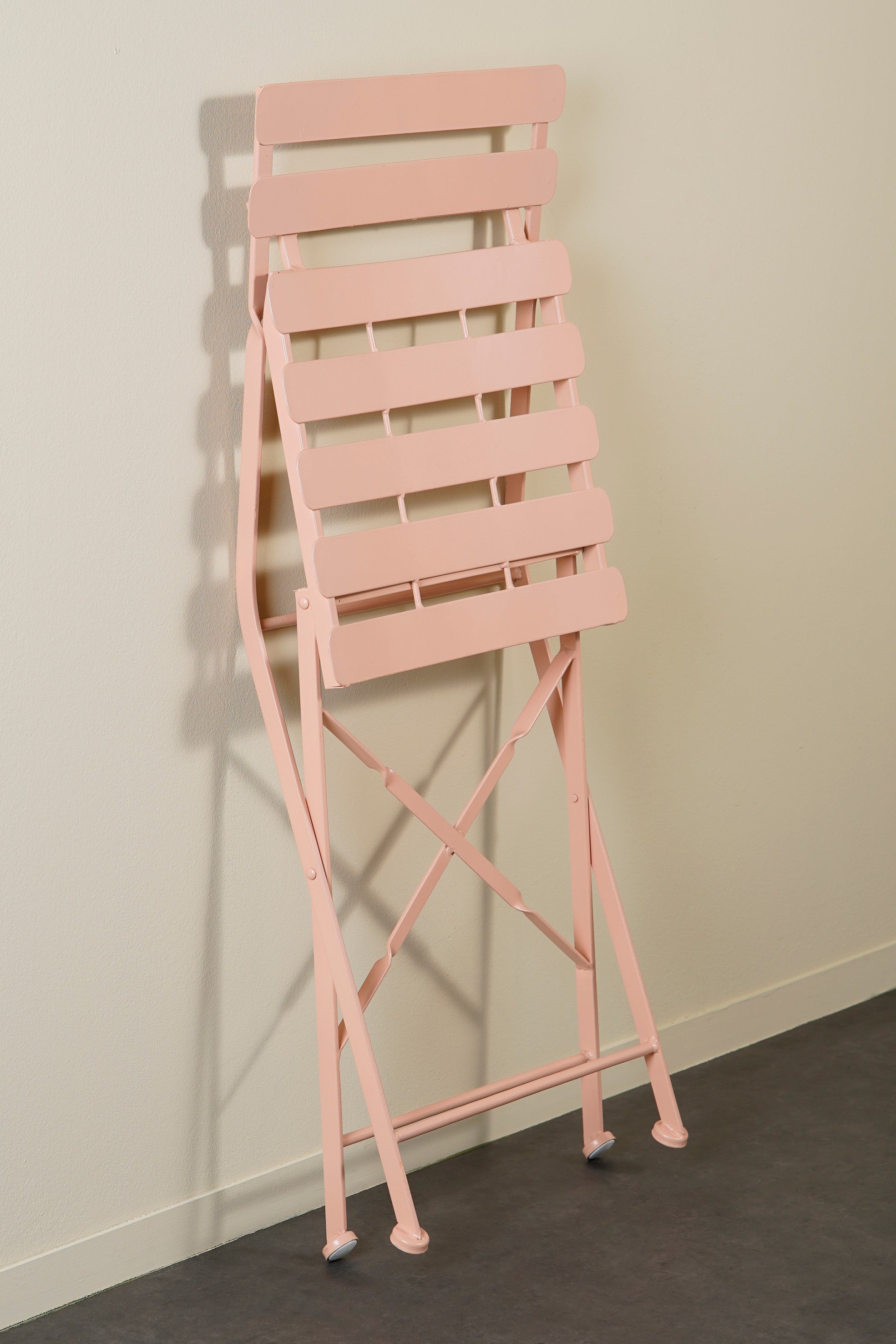 - De tuinset bestaat uit twee stoelen en tafel in een lichtroze kleur