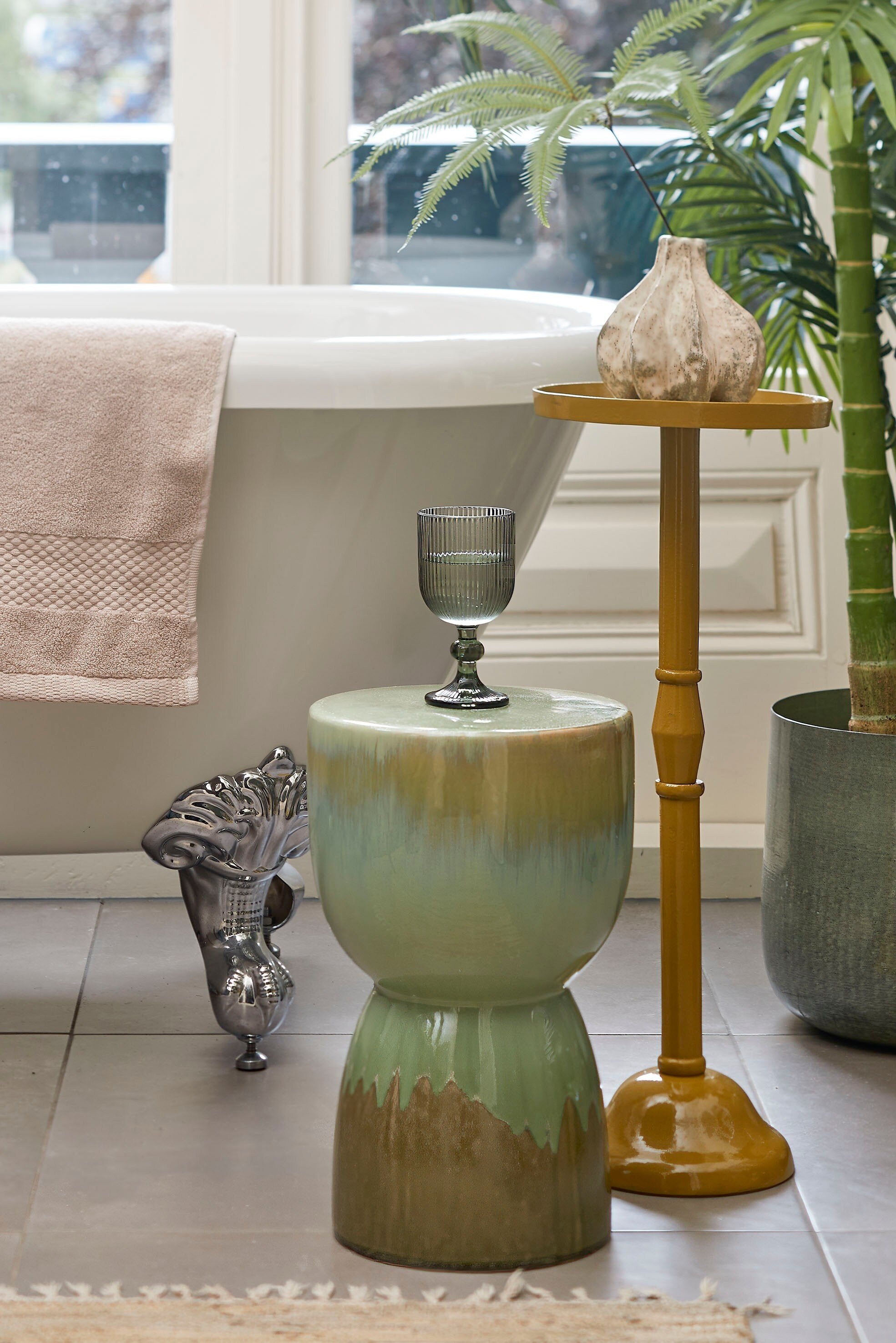Mica Decorations Lucien Bijzettafel - H42 x Ø29 cm - Keramiek - Groen