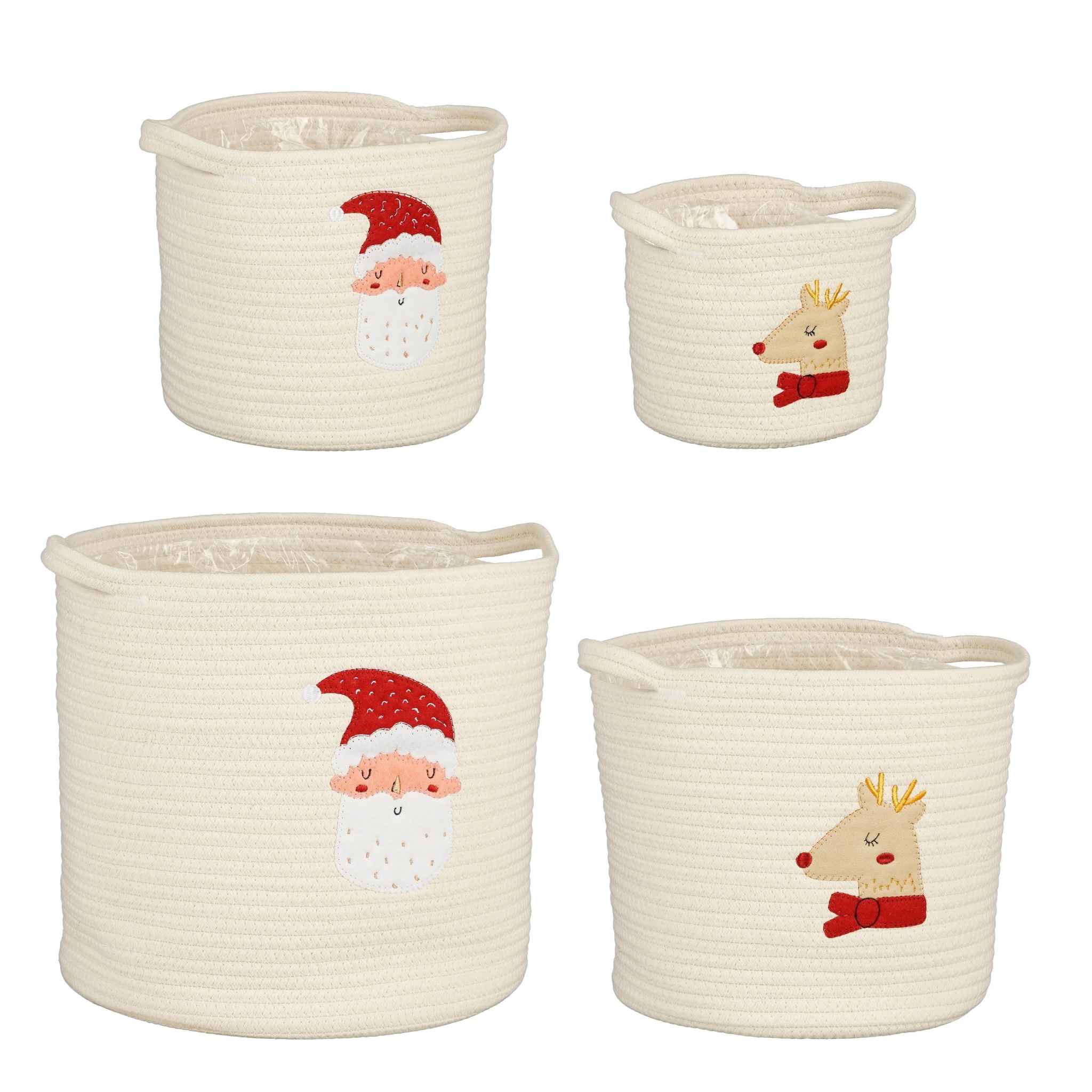 Mica Decorations Mand Santa deer - 32x32x31 cm - Polyester - Wit - Set van 4
