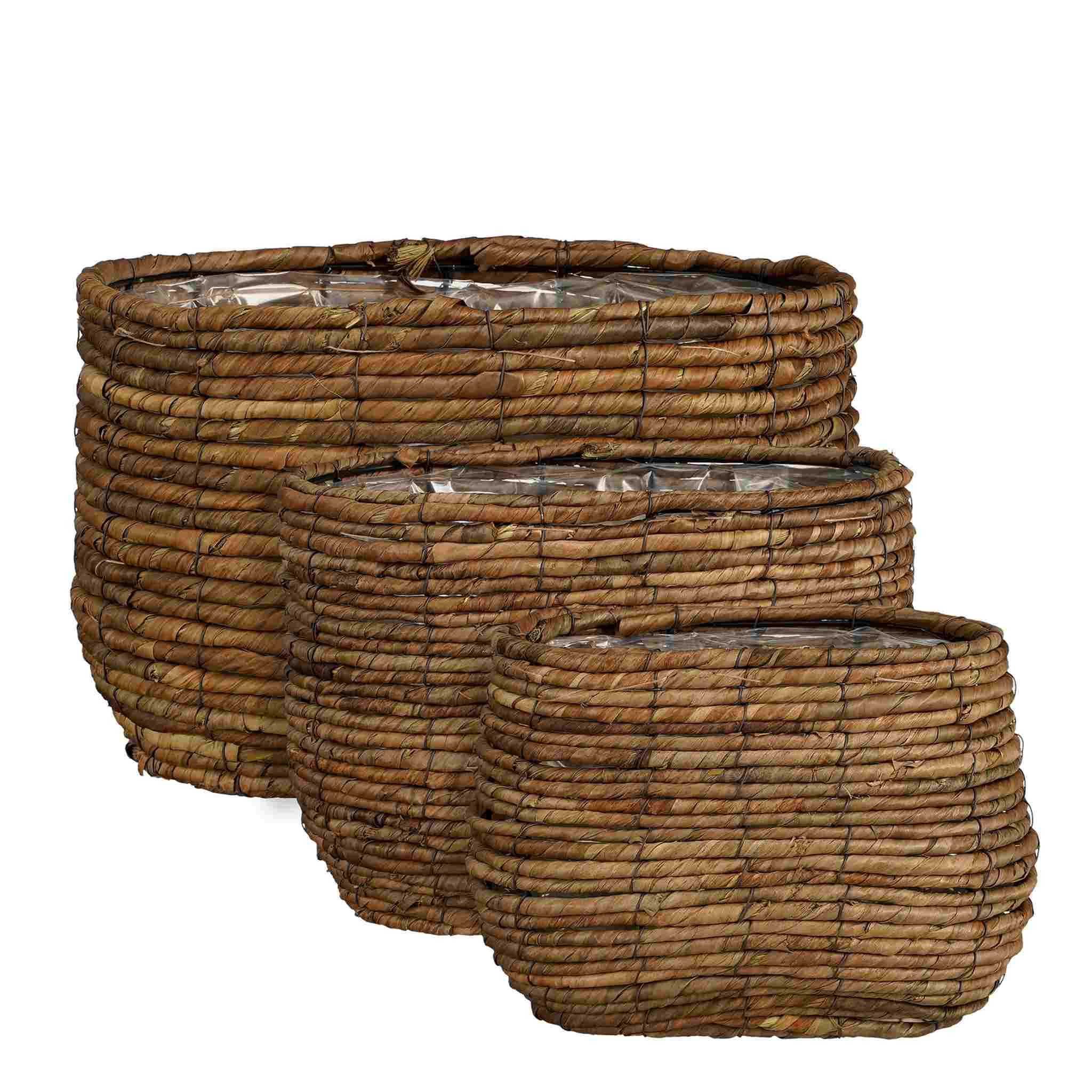 Mica Decorations Mand Santo - 39x27x25 cm - Zeegras - Bruin - Set van 3