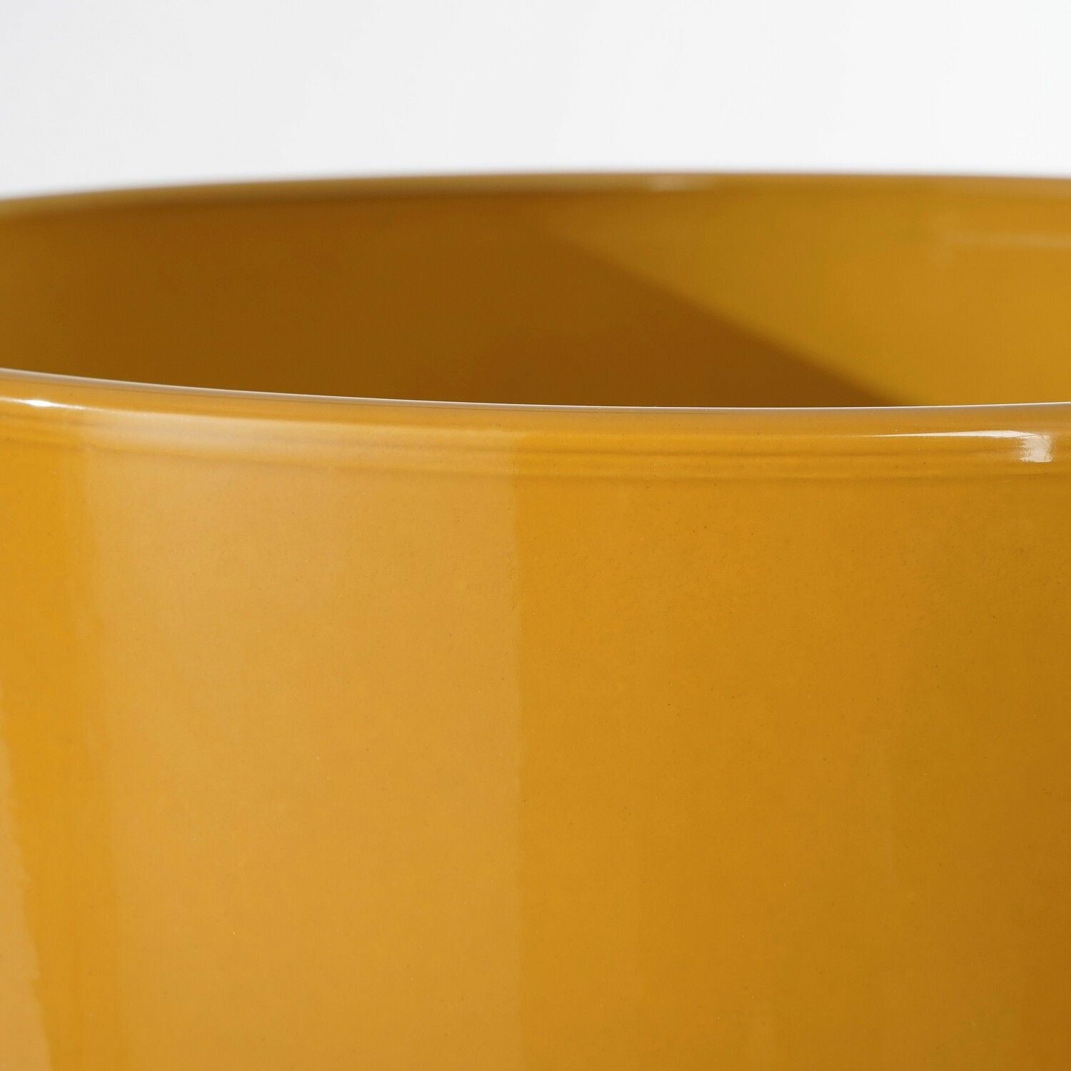 Plantenpot/bloempot van keramiek in de kleur okergeel in strakke glanzende uitvoering. Mooie bloempotten voor binnen gebruik. Serie: Tusca. De bloempot met een prachtige glans finish aan de buitenzijde is van Duits keramiek. Tip: zet een schotel onder de pot, of plaats een binnenpot/hoes om eventueel lekken tegen te gaan. Potten van gebakken steen zijn niet altijd 100% waterdicht. Afmeting: ca. D17 x H16 cm.