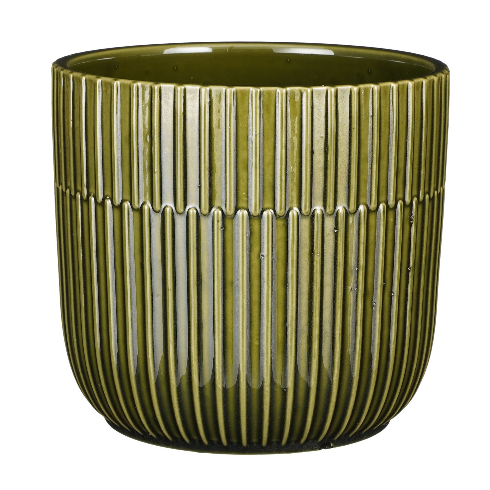 Mica Decorations - Plantenpot - groen - stripes - D17,5 x H16 cm