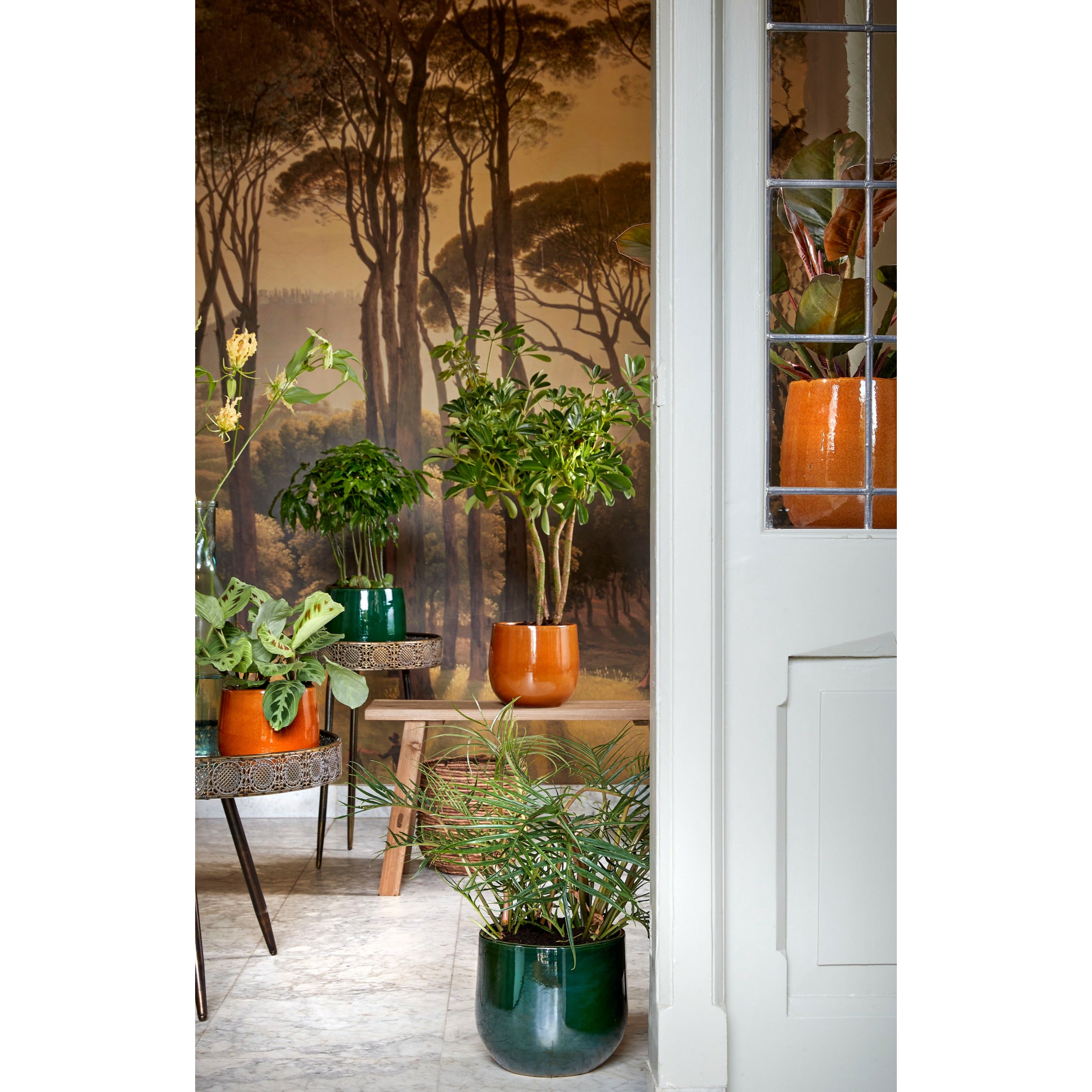 Plantenpot/bloempot van keramiek in de kleur okergeel met een speels licht gevlekt glans patroon. Diameter 21 cm en hoogte 19 cm. Stijlvolle bloempotten voor binnen gebruik. Serie: Pablo. De stijlvolle pot met een prachtige finish aan de buitenzijde is met de hand gemaakt in Portugal. Derhalve is geen pot exact hetzelfde en hebben de bloempotten een echt karakter. Materiaal: Keramiek. Tip: zet een schotel onder de pot om eventueel lekken tegen te gaan. Potten van steen zijn niet 100% waterdicht.